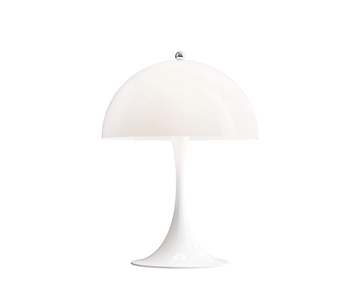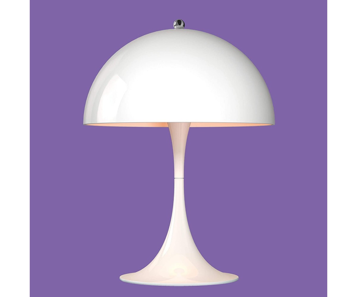 Lámpara de sobremesa procedente de Dinamarca, inspirada en un diseño de Verner Panton para Louis Poulsen. Presentamos un icono de la luz, su autor danés concebía la casa como una trama imaginativa de volúmenes, colores y texturas, donde la iluminación cumplía una función fundamental.Cuerpo en aluminio, lacado al horno terminación blanco.