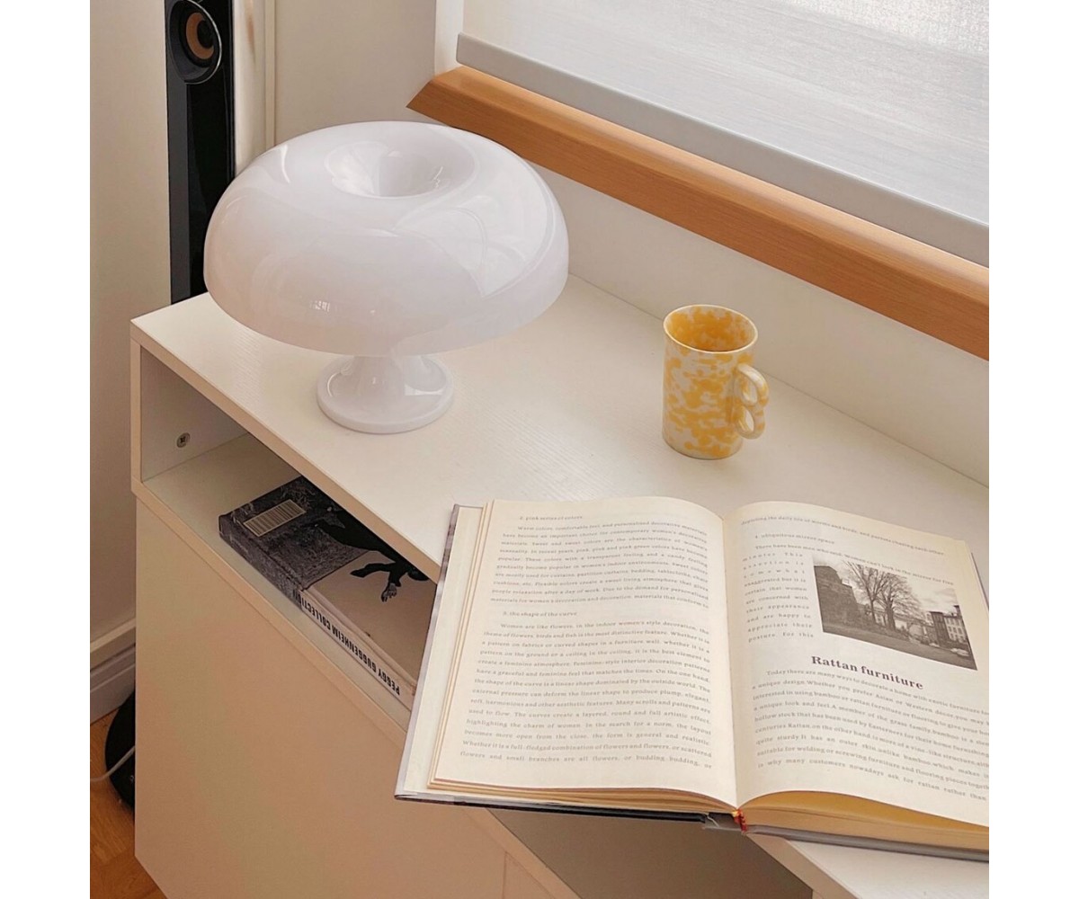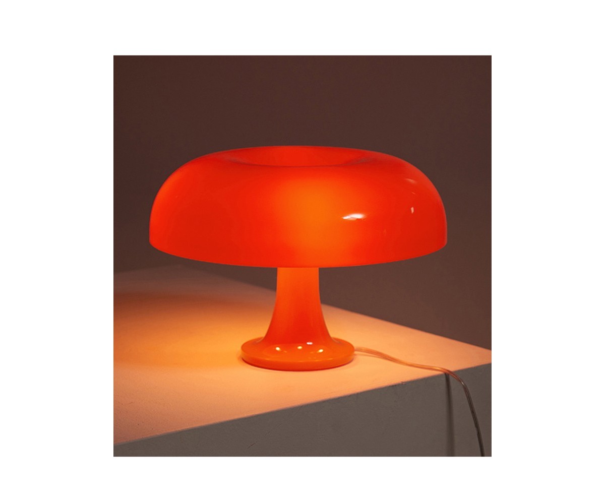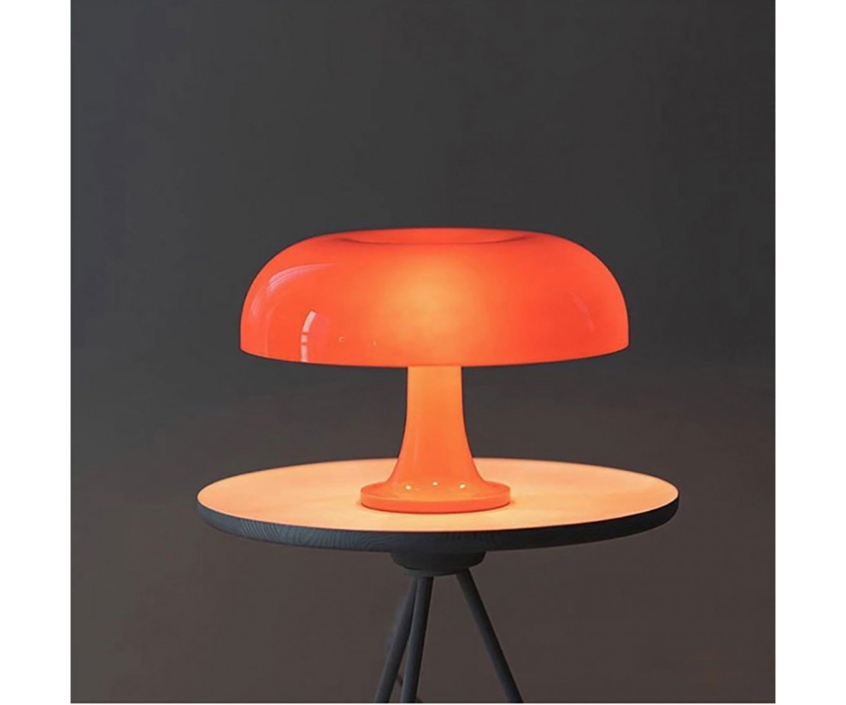 Una lámpara de sobremesa inspirada en un diseño de Giancarlo Mattioli, Gruppo Architetti, que su diseño resalta sus icónicas curvas, la cual la convierten en un verdadero
