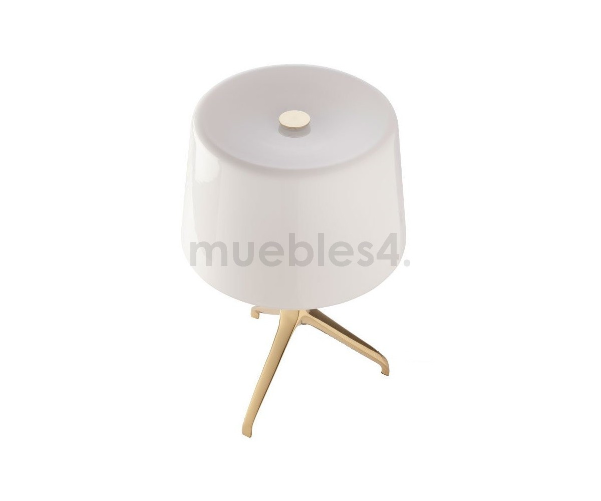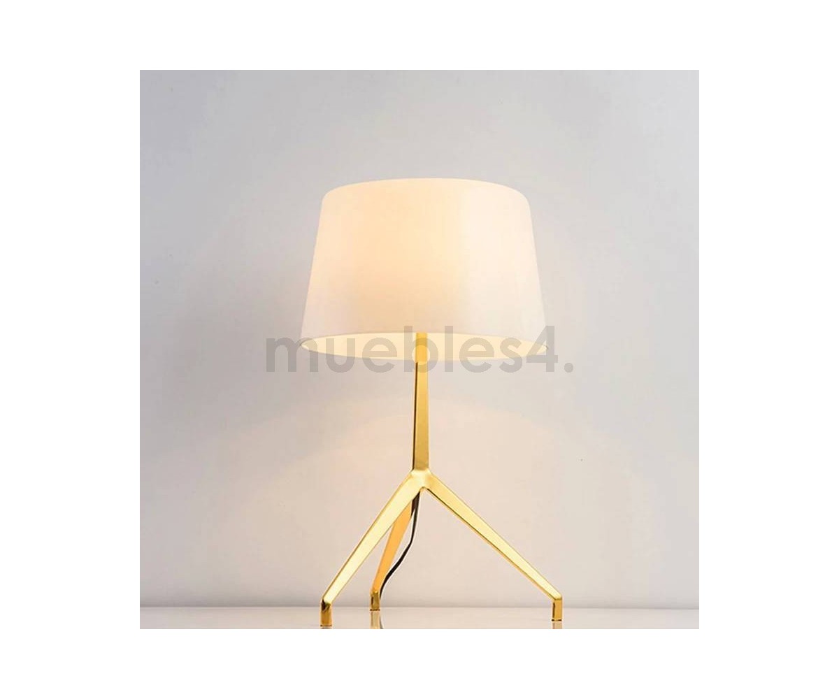 - Base en acero de tres patas, terminado en color dorado brillo.