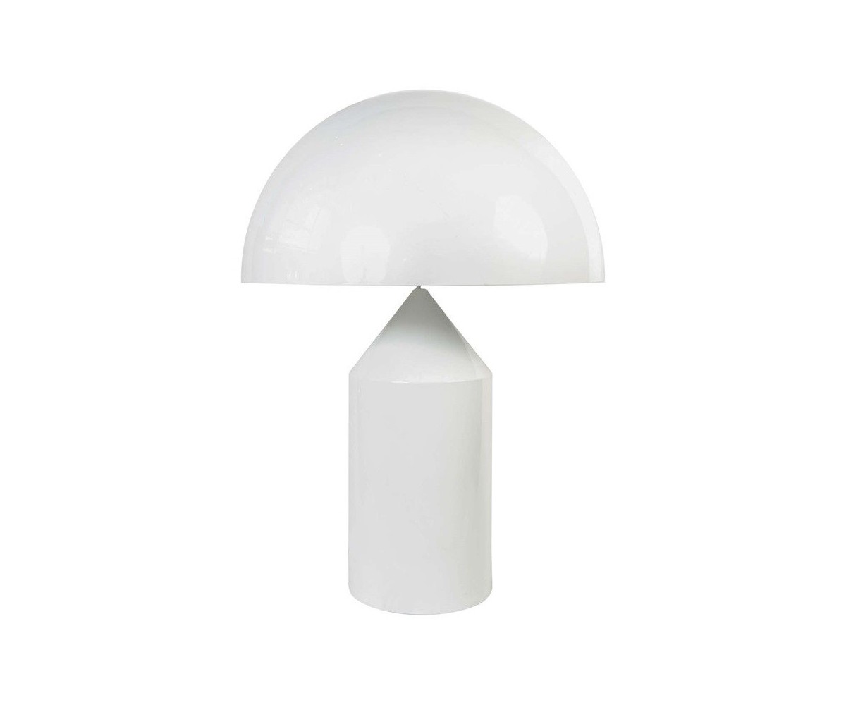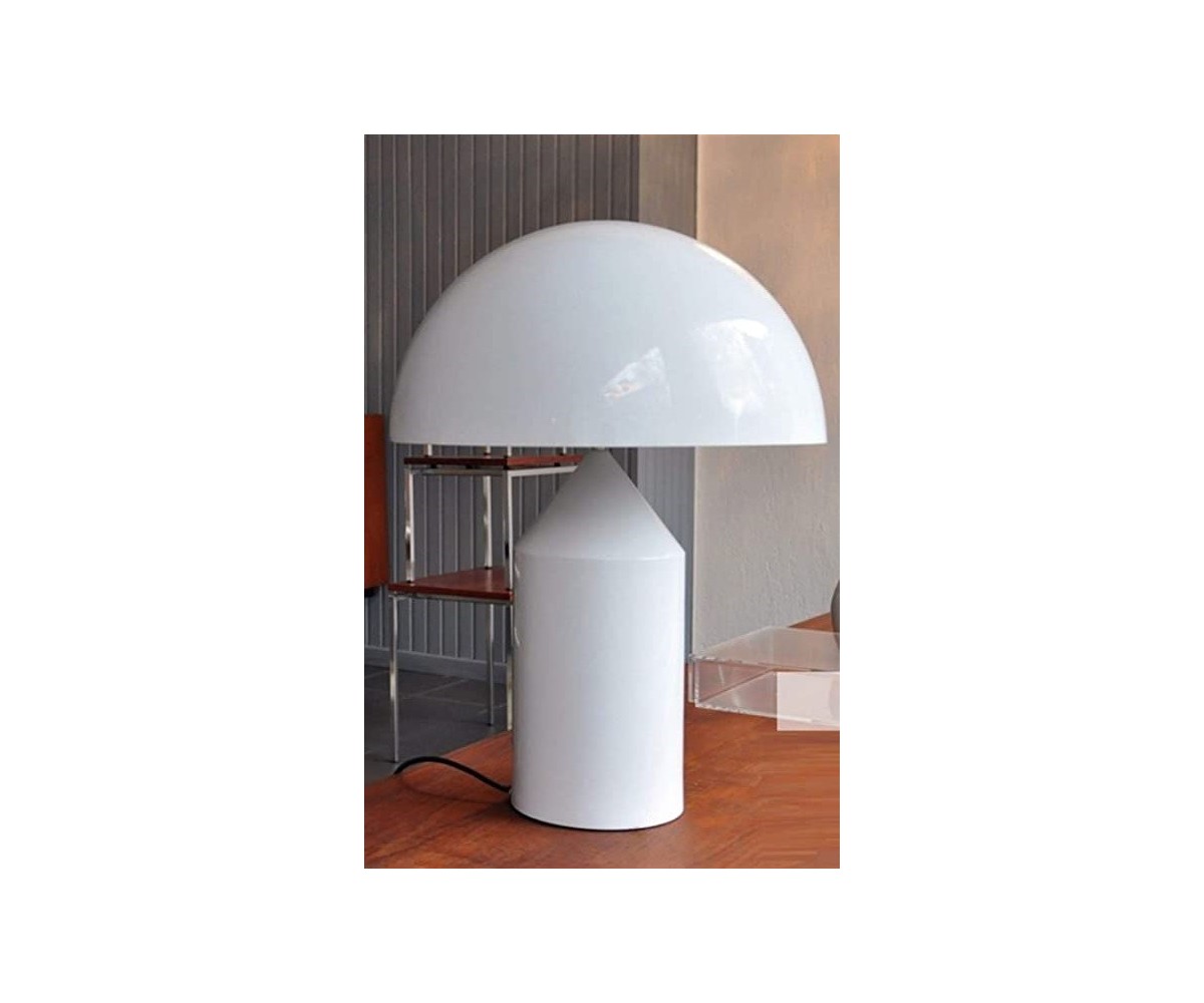 Lámpara de sobremesa inspirada en un diseño de Vico Magistretti. Se ha convertido en un icono, uno de los símbolos más conocidos del diseño italiano. Construcción geométrica de sus formas, cono en el cilindro y la semisfera. Una escultura luminosa.