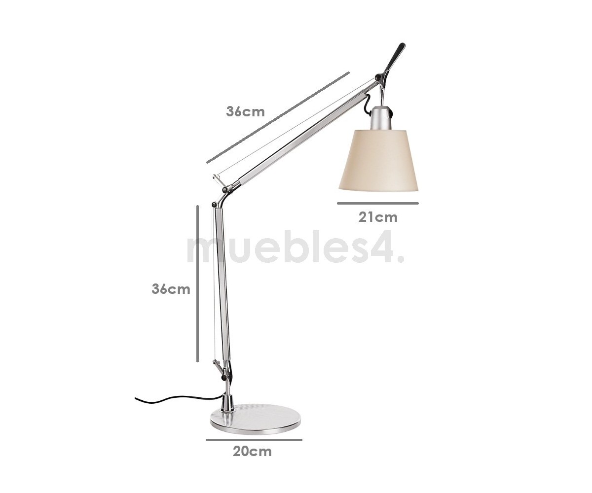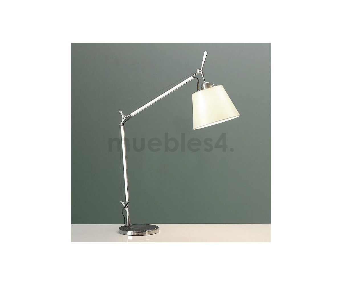 Lámpara de escritorio, inspirado en un diseño de Fassina y Lucchi para Artemide. Icono por excelencia de las lámparas de escritorio. Desde 1986, esta lámpara ilumina con elegancia los despachos más prestigiosos, las habitaciones de los hoteles más selectos o los museos más famosos y series de televisión de éxito y decora los salones más refinados.