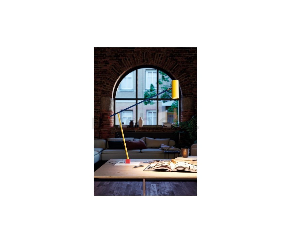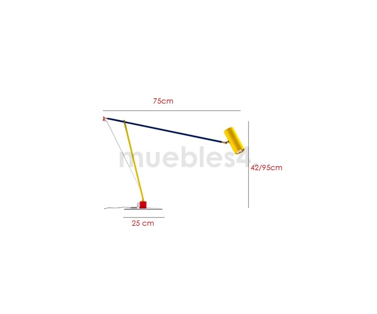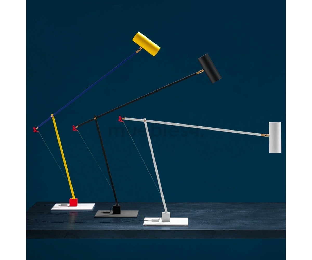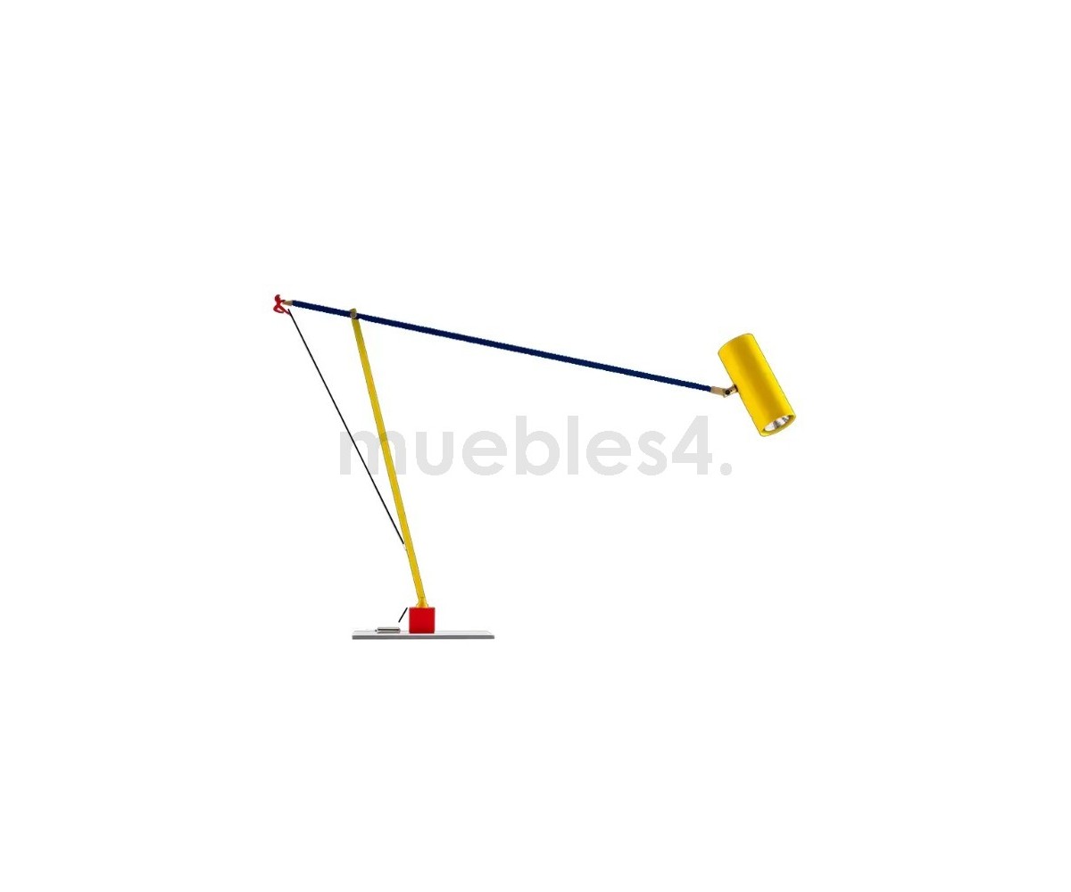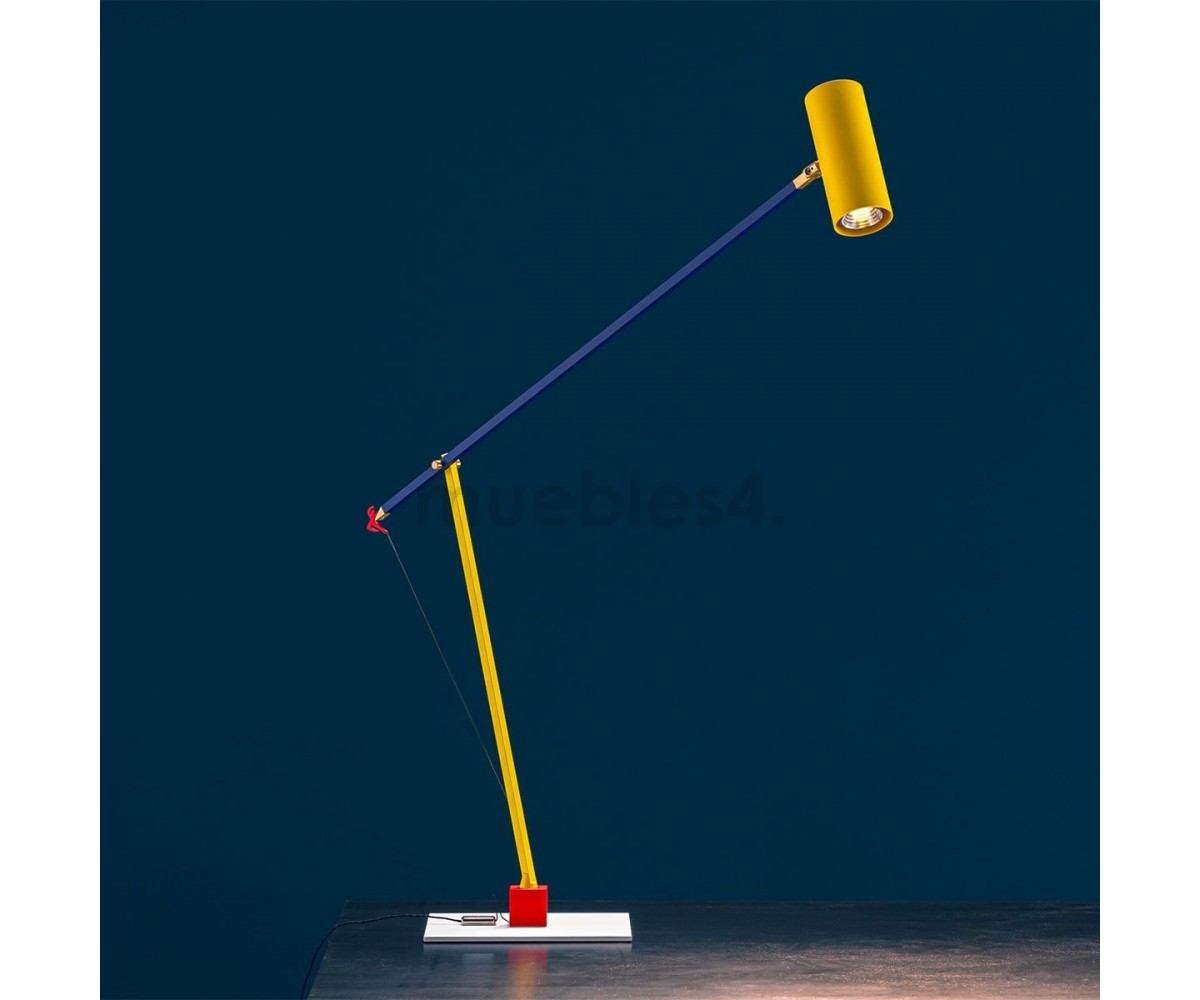 Lámpara de escritorio inspirada en un diseño de Catellani & Smith. Versión de colores, mezclando el azul, amarillo y rojo. Ettorino T fue diseñada como lámpara de escritorio, para ofrecer una iluminación correcta en la superficie de trabajo, gracias a la posibilidad de movimiento y rotación de la lámpara.