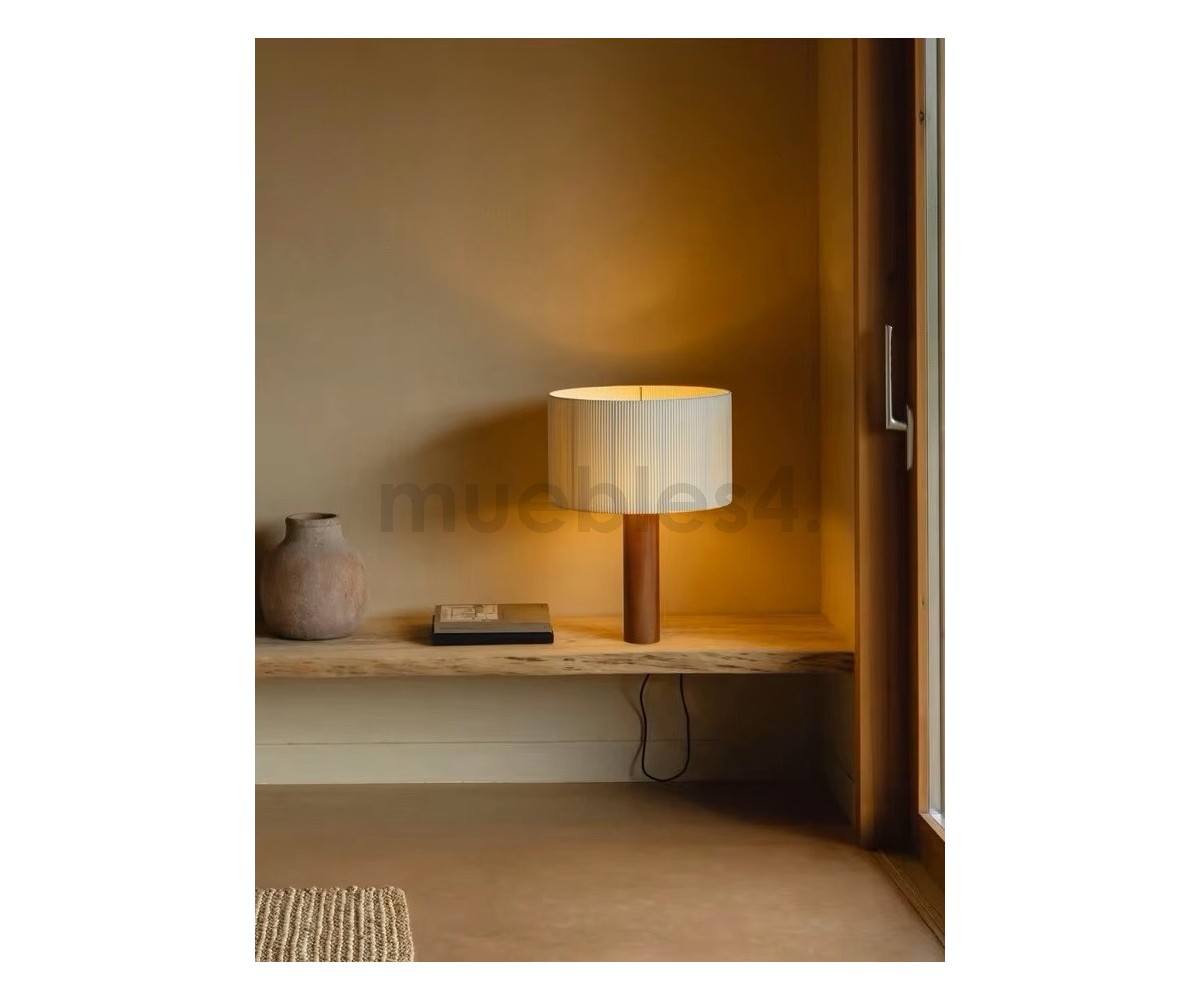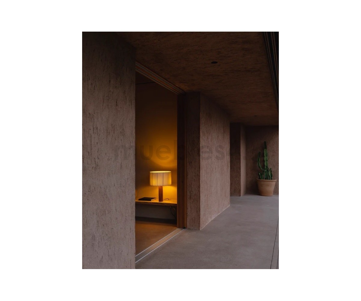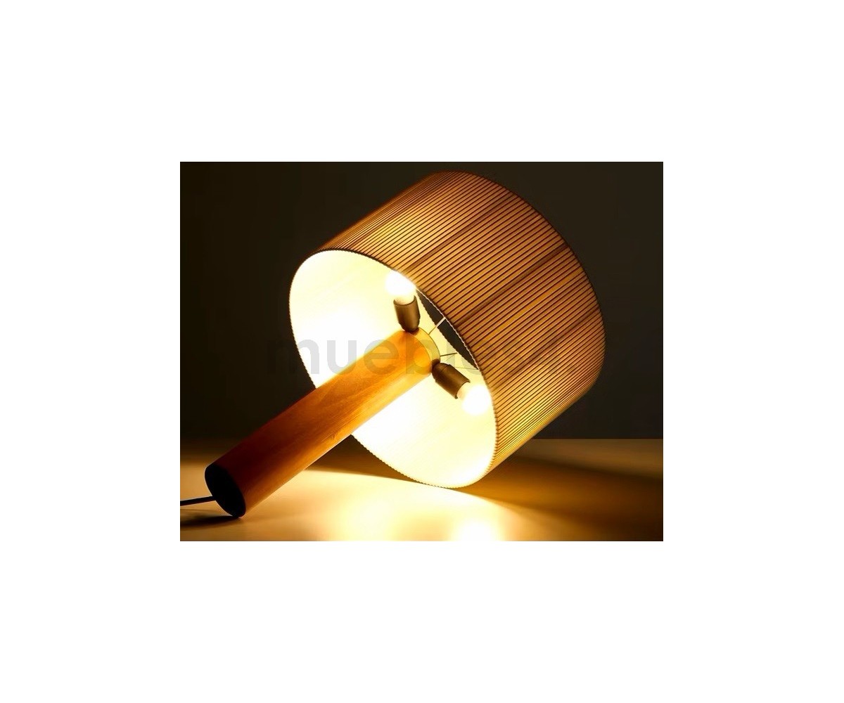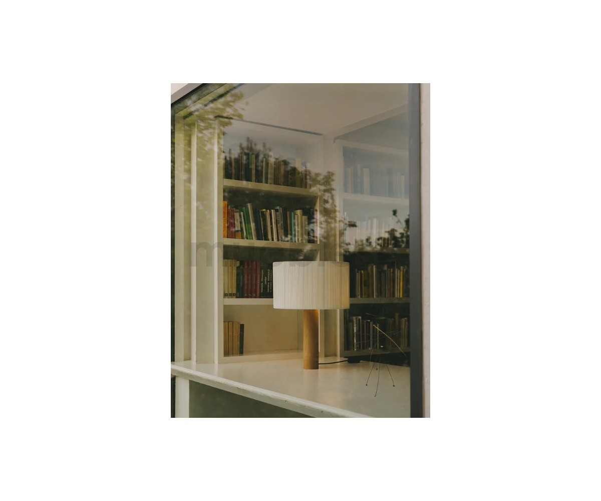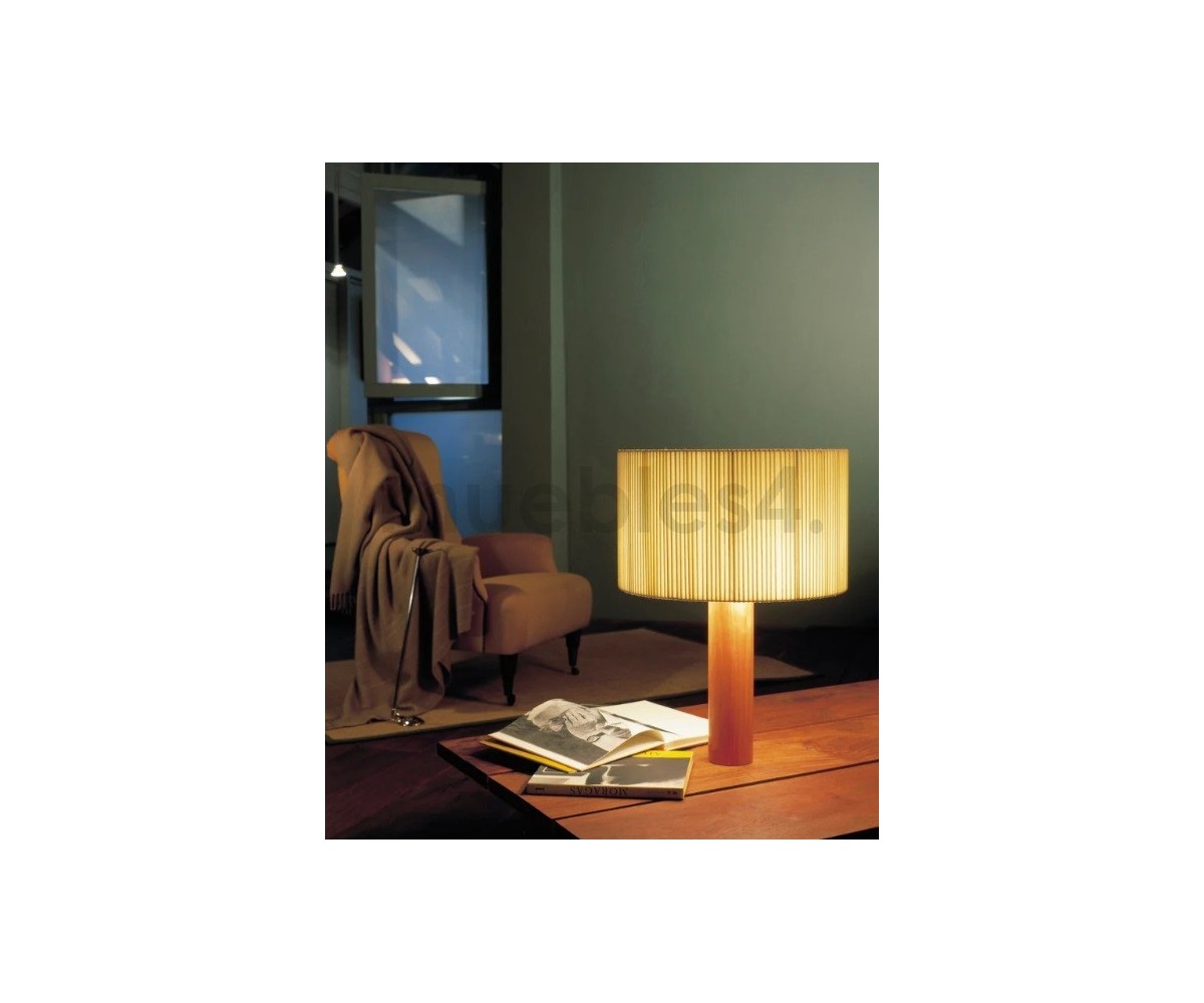 Lámpara de sobremesa inspirada en un diseño de Antoni de Moragas Gallissa. Diseñada para la propia oficina de Moragas en 1957, compuesta por una pantalla generosa de cinta, colocada sobre una base cilíndrica de madera resistente. Este ejemplar es una de las primeras reediciones realizadas por Santa&Cole.