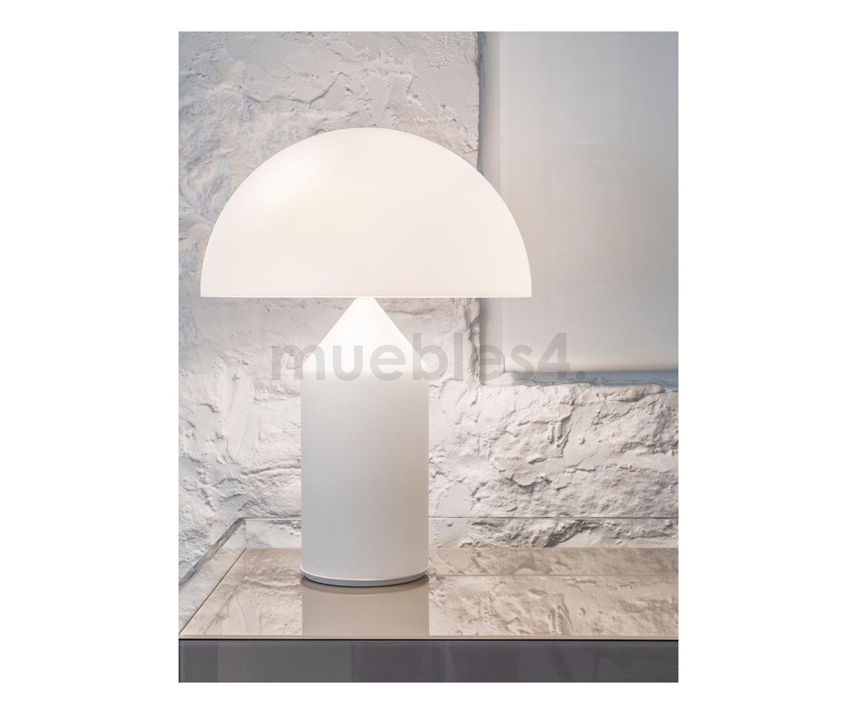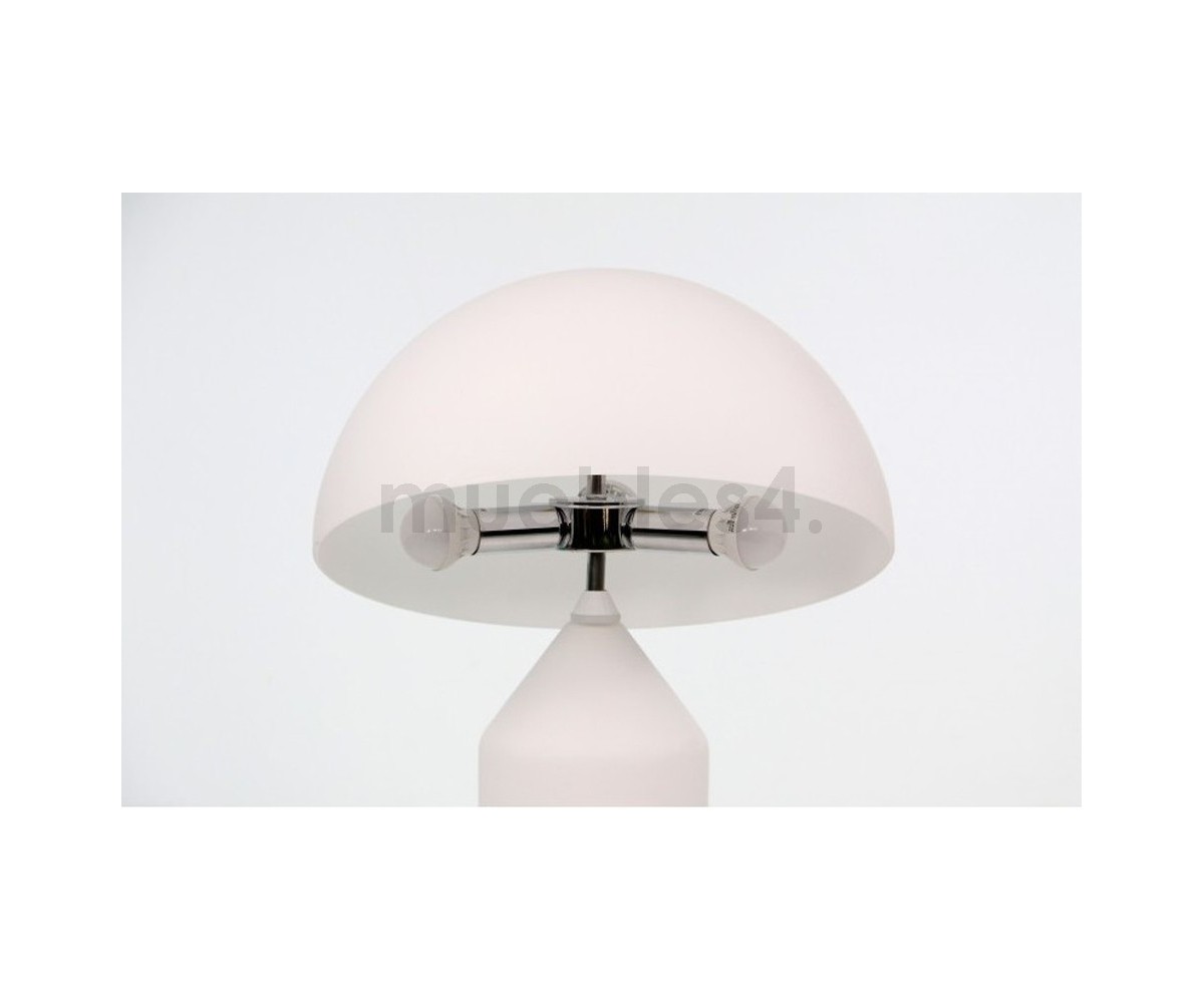 Lámpara de sobremesa inspirada en un diseño de Vico Magistretti. Se ilumina la tulipa dando una luz indirecta muy relajante y armoniosa. Fabricada en vidrio blanco mate en su totalidad. Modelo de bombilla para tulipa E14 x 2. Largo del cable 164cm. Fabricada en Italia. Réplica exacta con materiales originales de máxima calidad.
