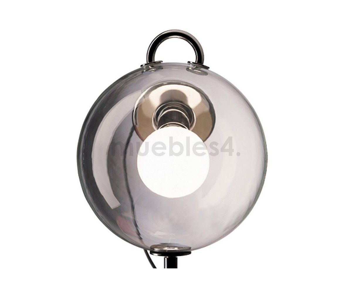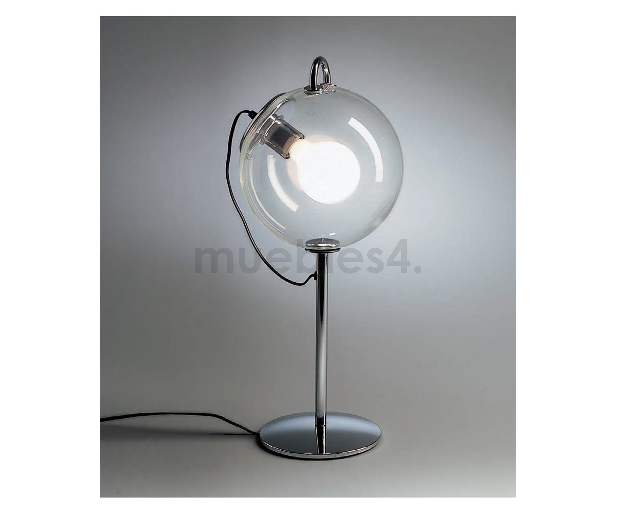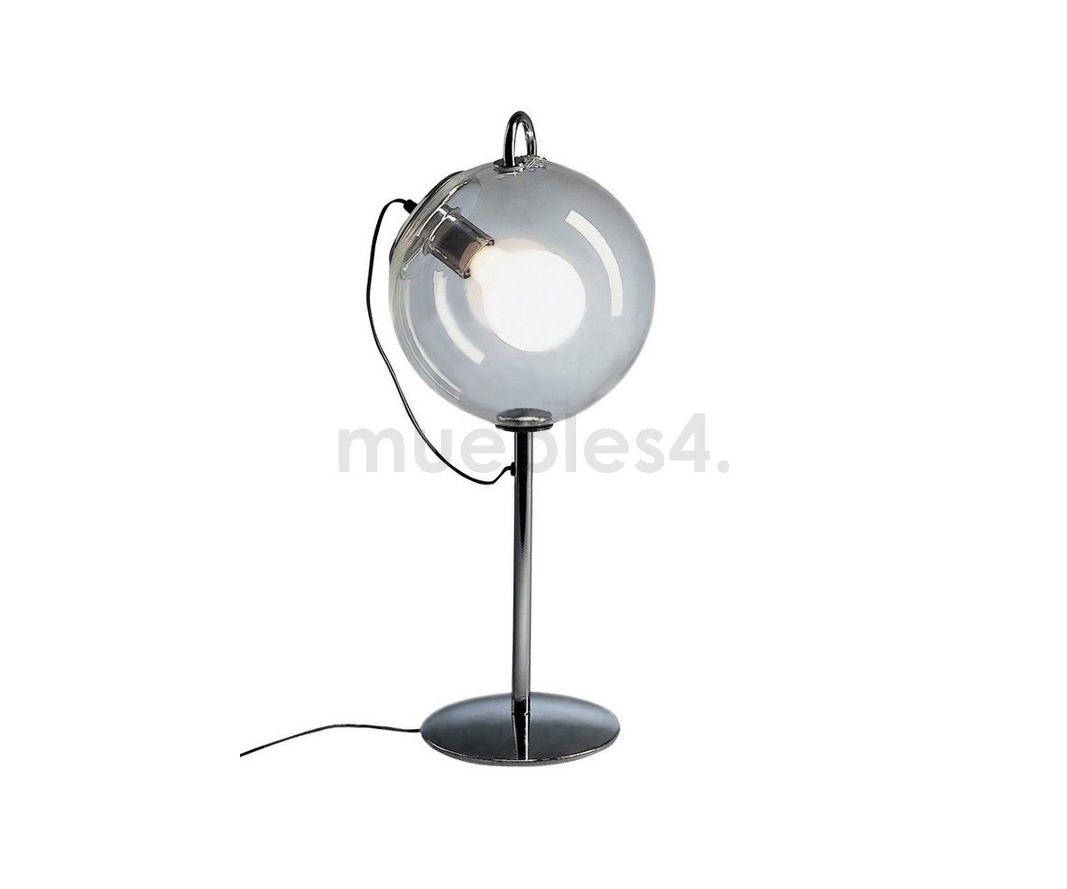 Lámpara de sobremesa, inspirada en un diseño de Ernesto Gismondi para Artemide. Base en acero cromado, globo de cristal transparente templado. También disponible en lámpara de suelo. Modelo de bombilla E27. Réplica exacta con materiales originales de máxima calidad.