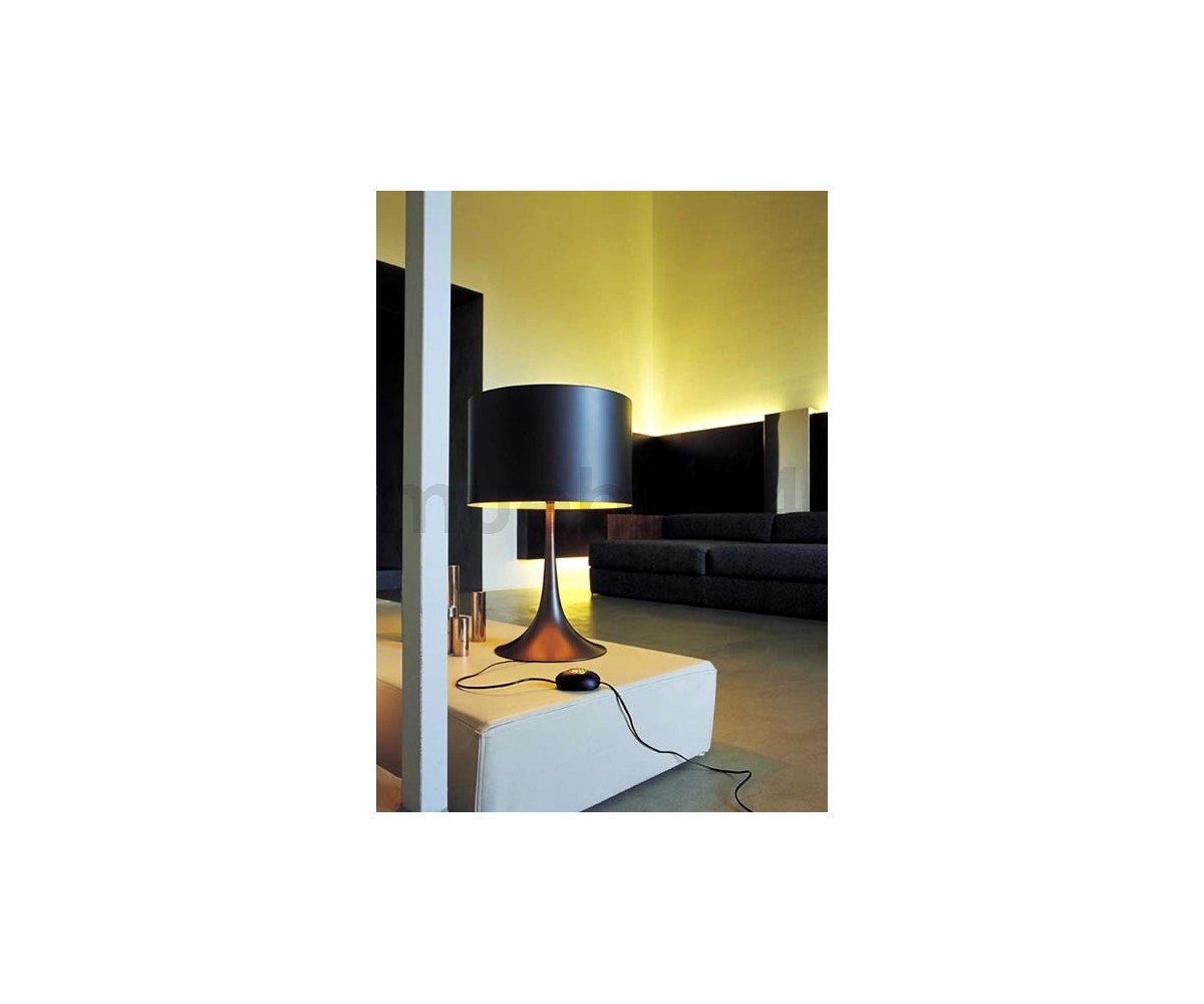 Lámpara de mesa, inspirada en un diseño de Sebastian Wrong. Base fabricada en acero lacado al horno terminación mate negro o blanco, pantalla en tejido color negro, interior pantalla blanco y en blanco, pantalla gris claro interior blanco. Bombilla E27 no incluida. Disponemos de este mismo modelo en lámpara de sobremesa. Réplica exacta con materiales originales de máxima calidad.