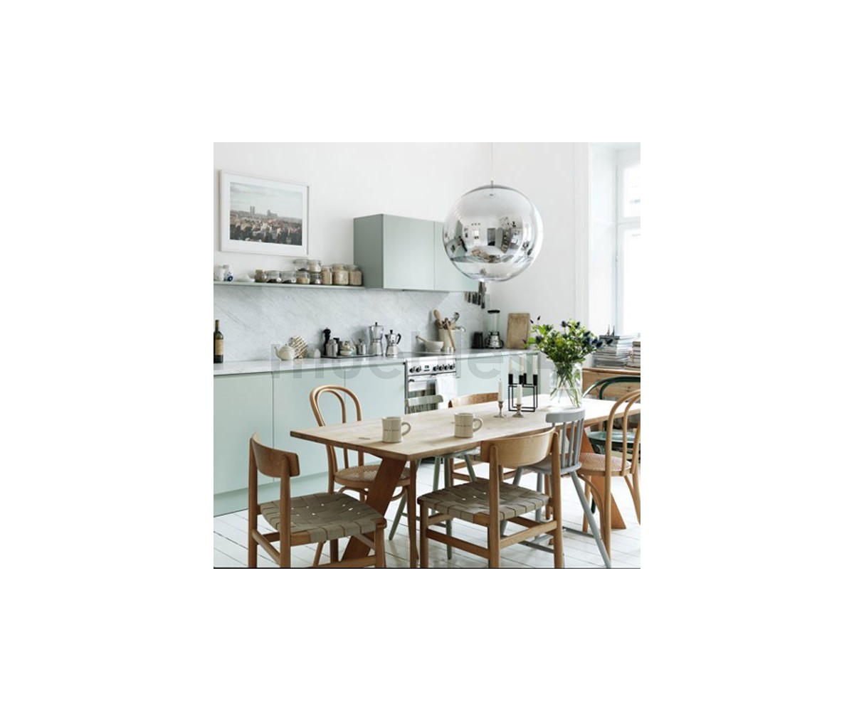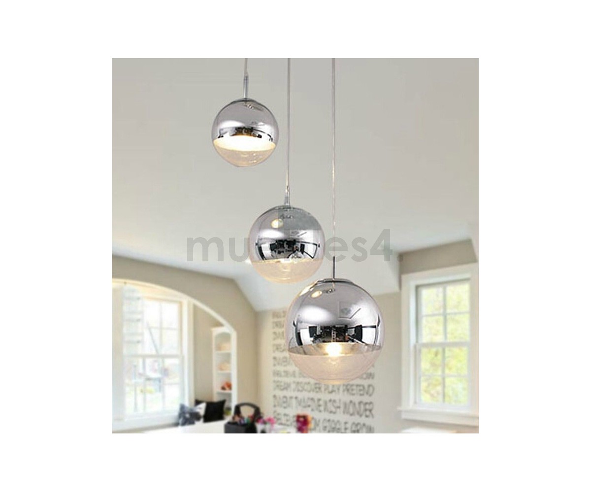 Lámpara suspendida circular, inspirada en un diseño de Tom Dixon. Fabricada en acero y cristal, terminación cromado y transparente. Modelo de bombilla E27. Réplica exacta con materiales originales de máxima calidad.