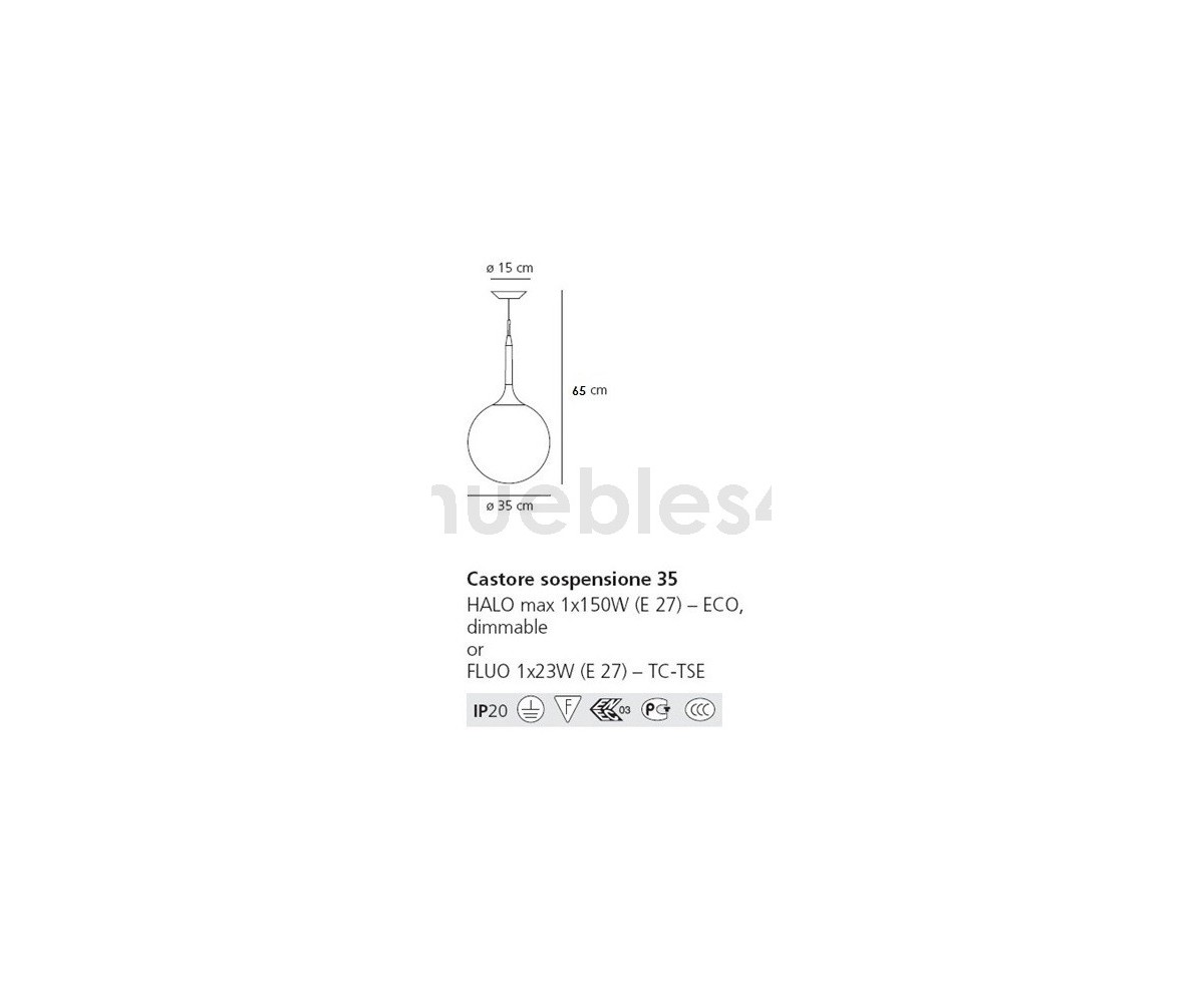 Lámpara fabricada en Italia, inspirada en un diseño de Michele de Lucchi. Fabricada en policarbonato de gran dureza y durabilidad. Existen 3 tamaños. Modelo de bombilla E27. Réplica exacta con materiales originales de máxima calidad.