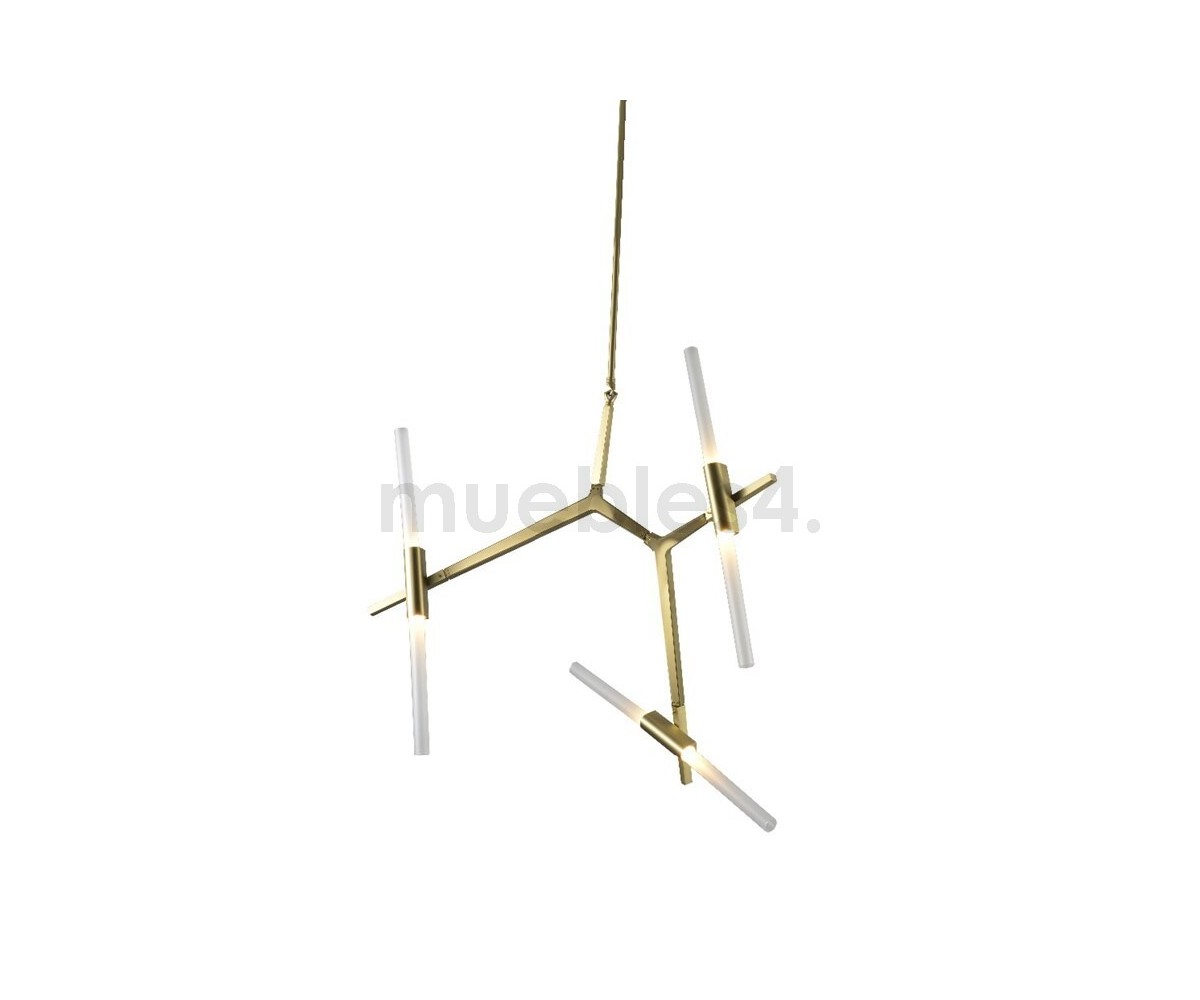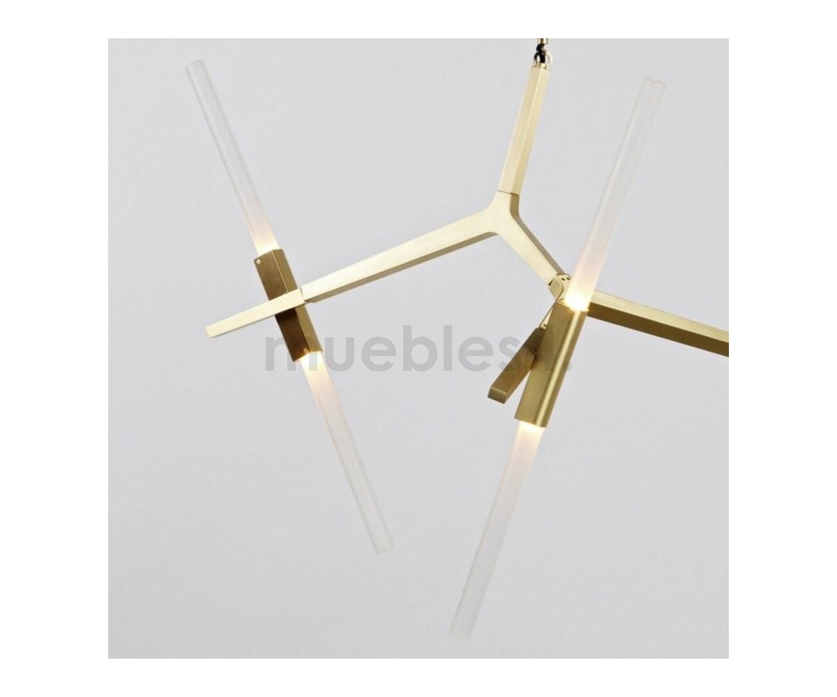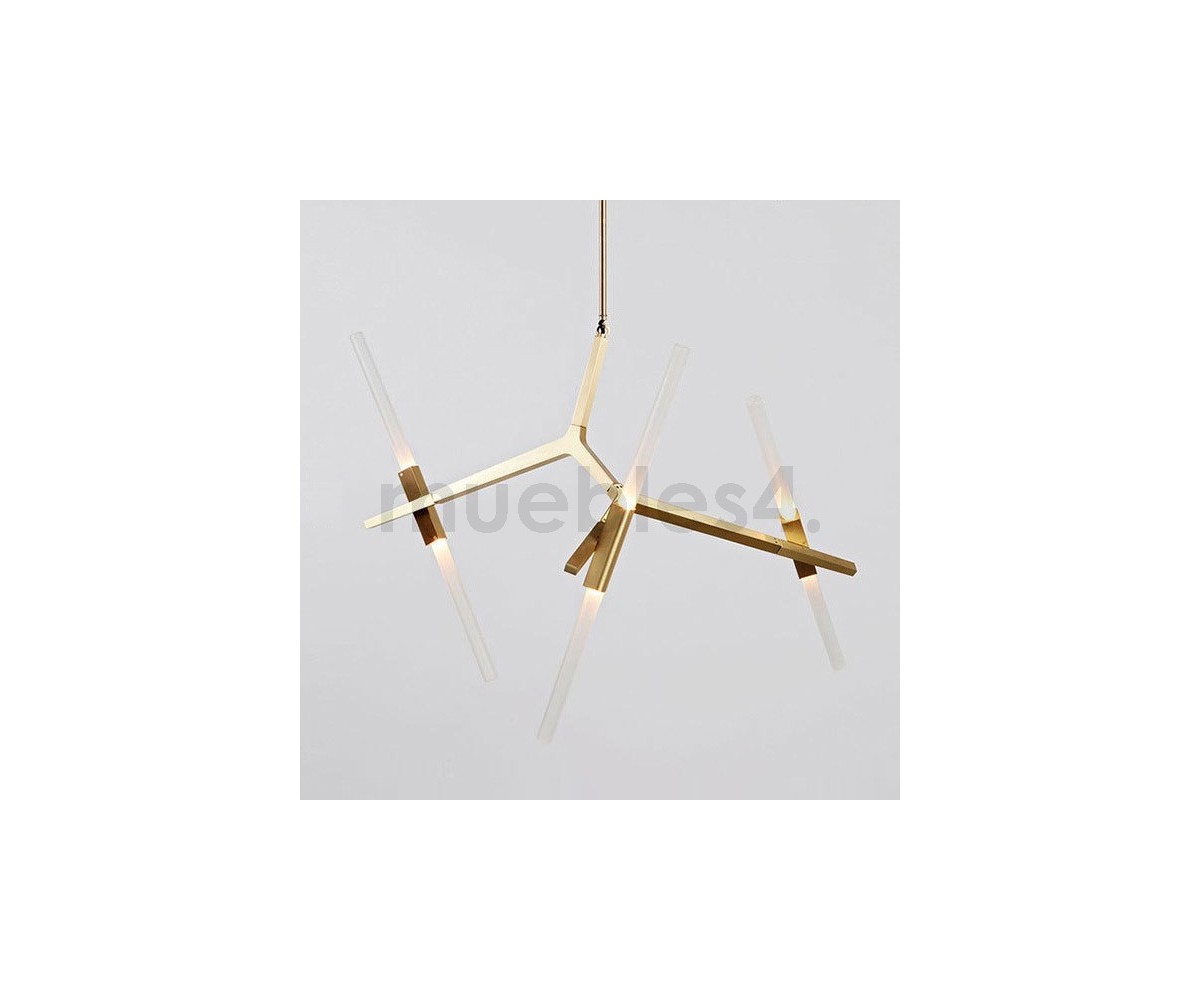 Lámpara de techo inspirada en un diseño de Lindsey Adelman. Fabricado en acero y aluminio de alta calidad dorado y tubos de vidrio. Las barras se pueden ajustar con el angulo que se desee, dentro de cada tubo de vidrio se introduce la bombilla led. Modelo de bombilla G9 no incluidas. Réplica exacta con materiales originales de máxima calidad.