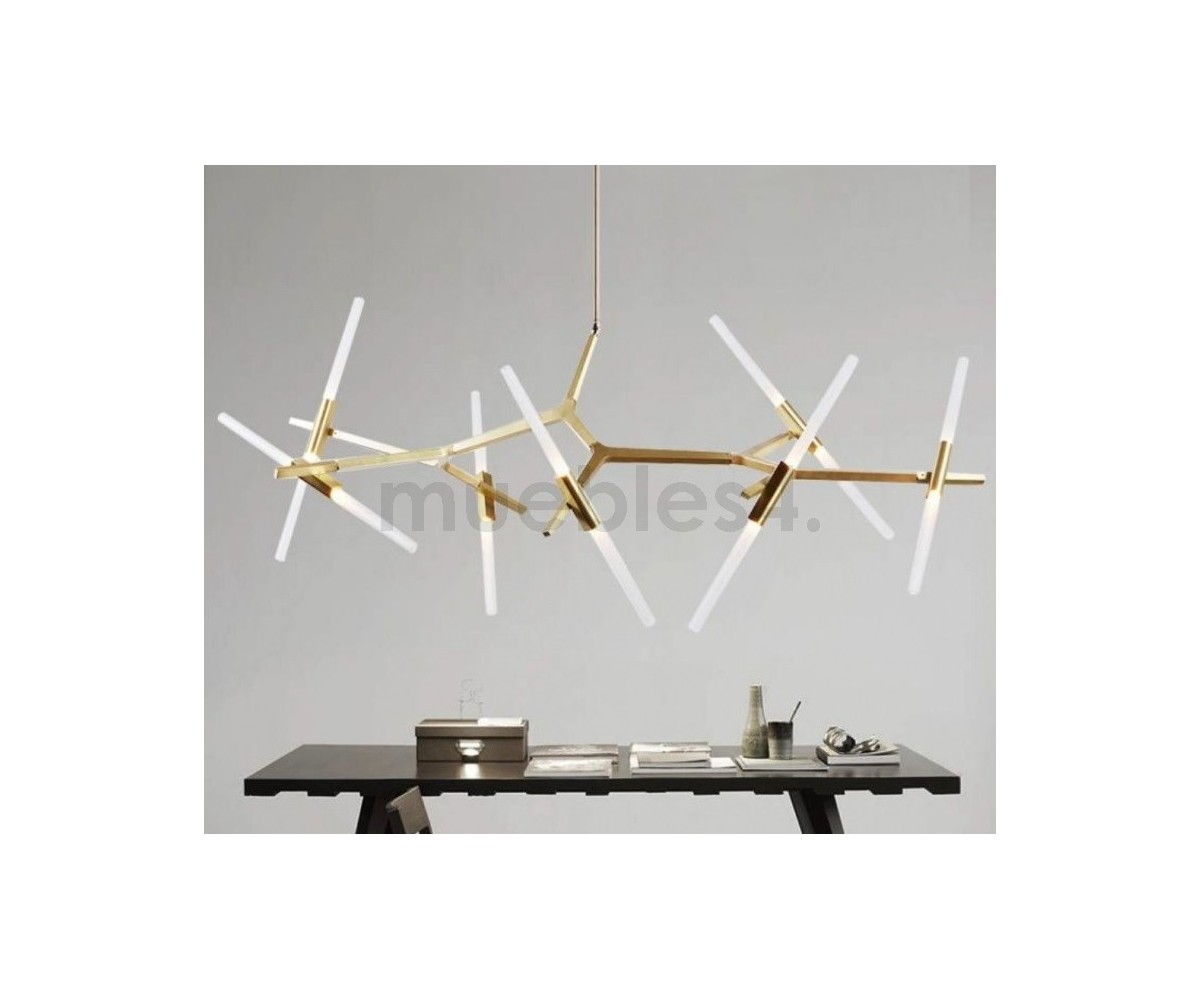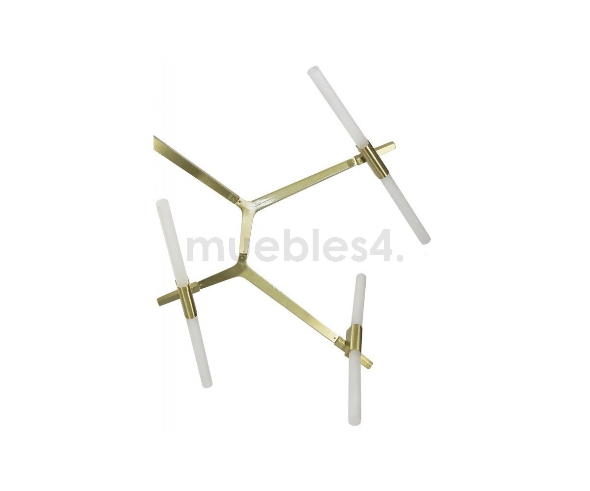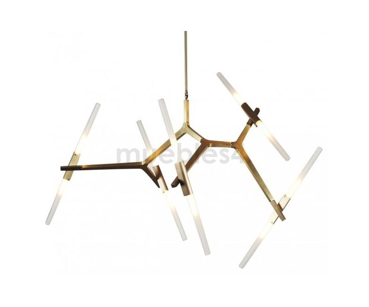 Lámpara de techo inspirada en un diseño de Lindsey Adelman. Fabricado en acero y aluminio de alta calidad dorado y tubos de vidrio. Las barras se pueden ajustar con el angulo que se desee, dentro de cada tubo de vidrio se introduce la bombilla led. Modelo de bombilla G9 no incluidas. Réplica exacta con materiales originales de máxima calidad.