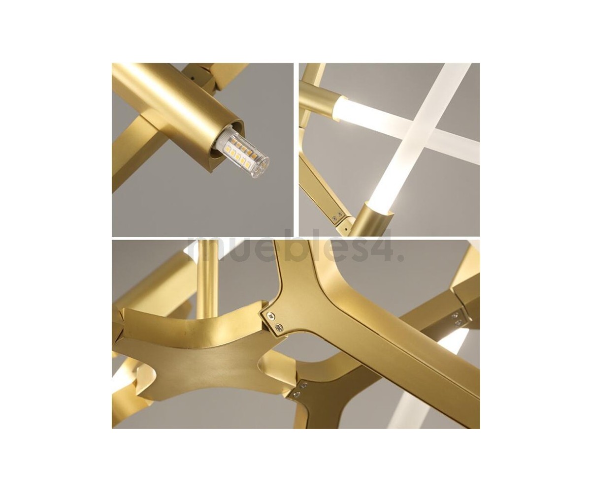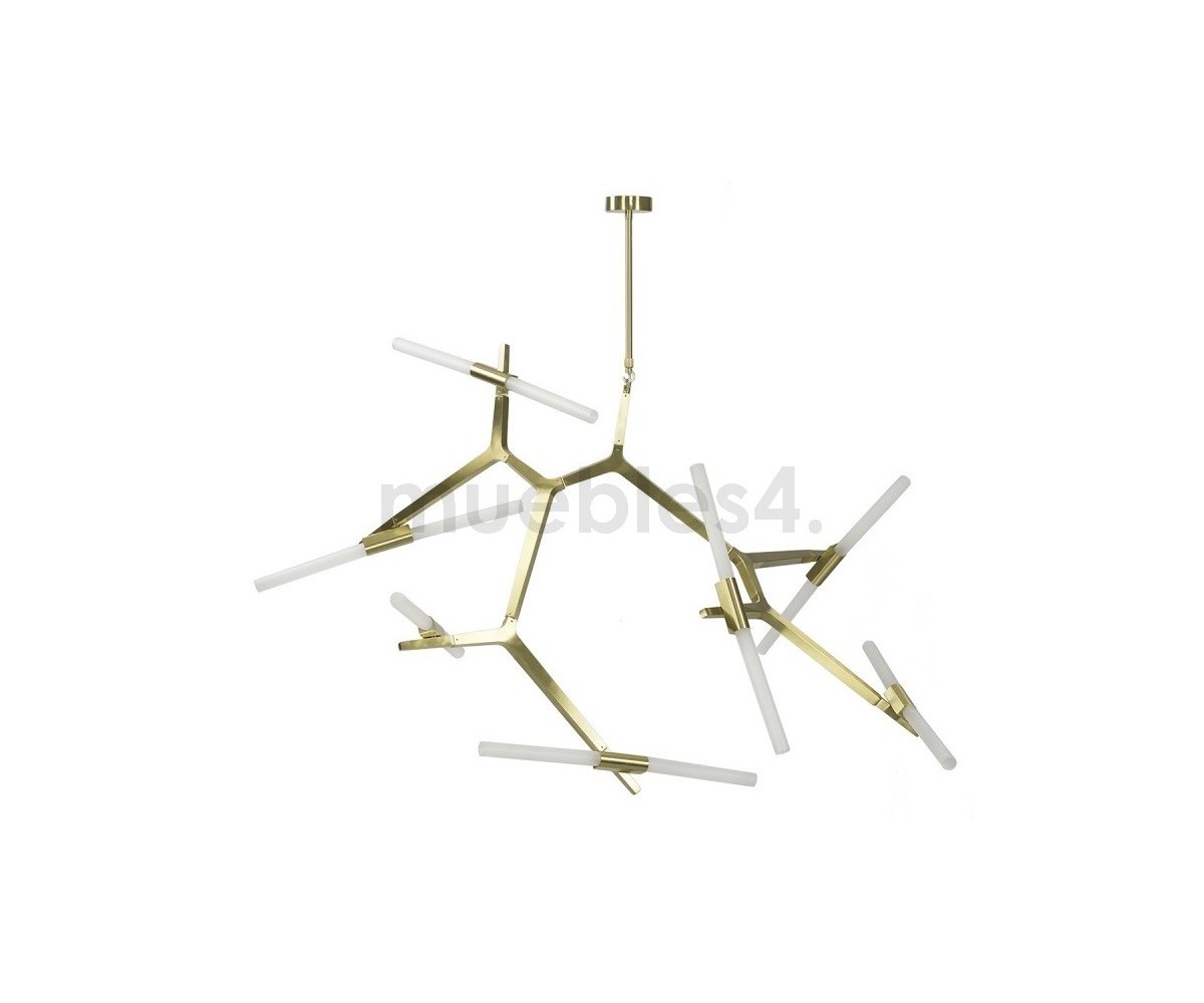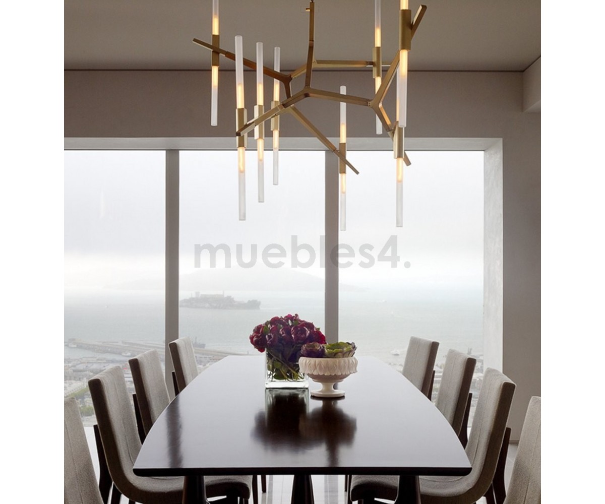 Lámpara de techo inspirada en un diseño de Lindsey Adelman. Fabricado en acero y aluminio de alta calidad dorado y tubos de vidrio. Las barras se pueden ajustar con el angulo que se desee, dentro de cada tubo de vidrio se introduce la bombilla led. Modelo de bombilla G9 no incluidas. Réplica exacta con materiales originales de máxima calidad.