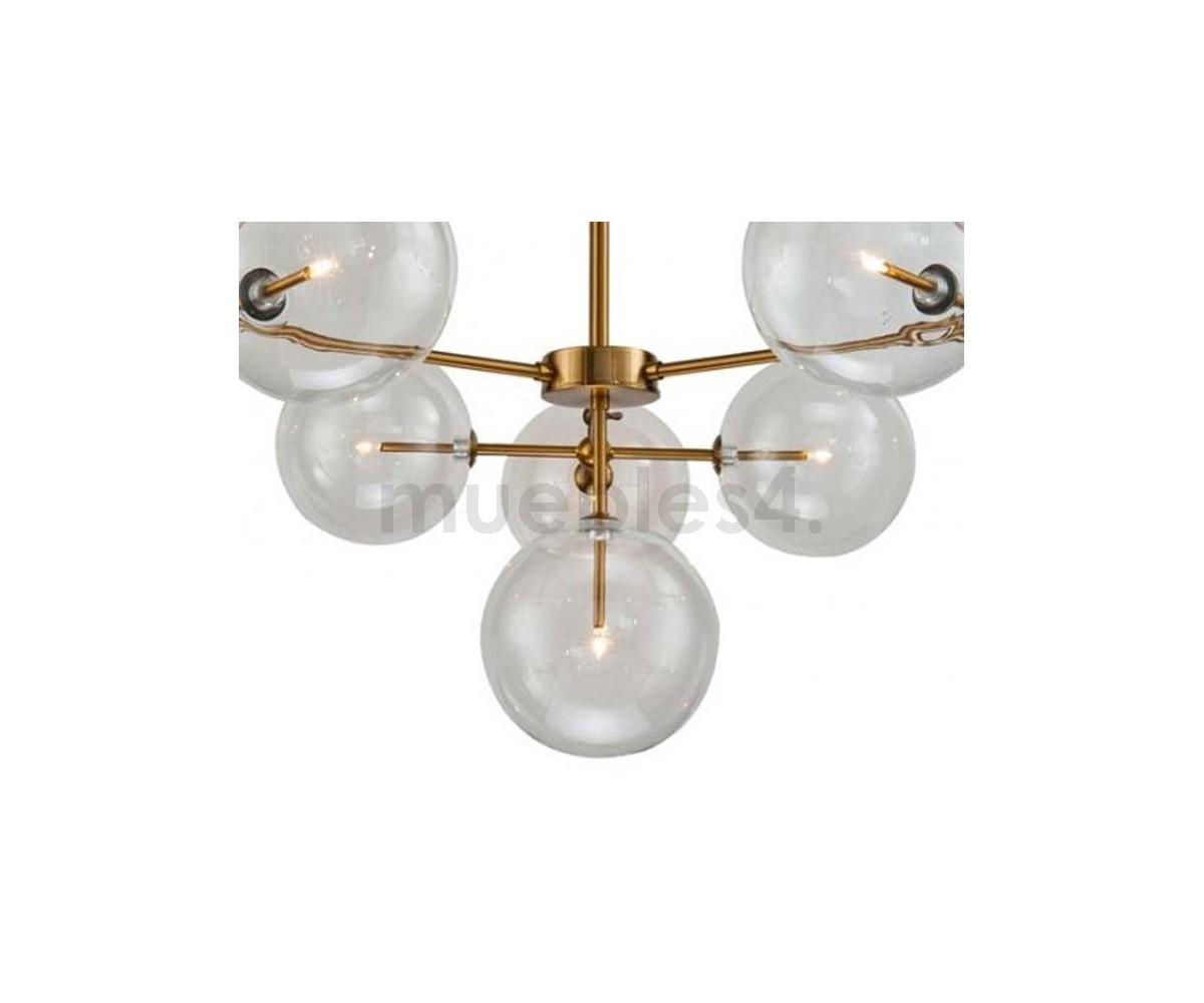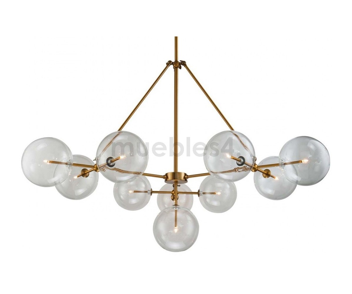 Lámpara inspirada en un diseño de Jason Miller para Roll & Hill. Se compone de tres brazos de forma tubular en acero envejecido con tres tulipas cada uno en cristal templado y un brazo inferior con una tulipa. Réplica exacta con materiales originales de máxima calidad.