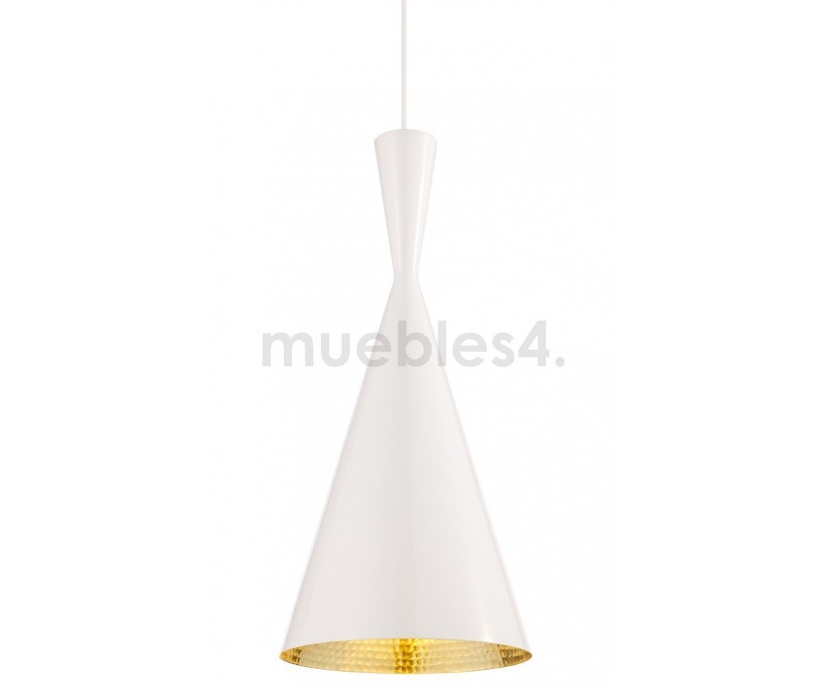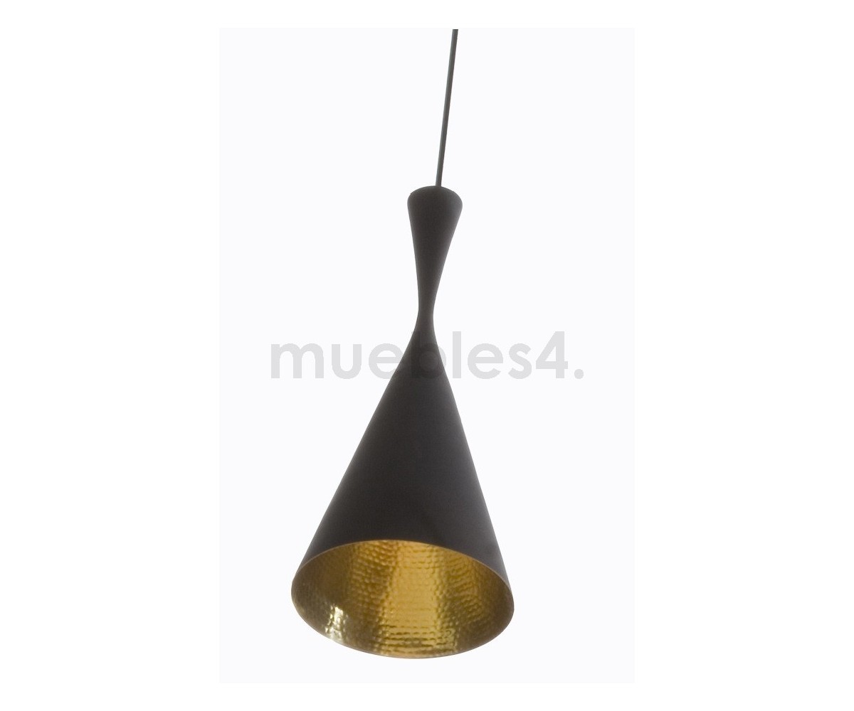 Lámpara suspendida inspirada en un diseño de Tom Dixon. Realizada en ACERO lacado al horno con pintura de epoxi de alta resistencia, color exterior negro o blanco, color interior oro/dorado con grabado en relieve de escamas. Longitud de cable 120cm aprox. Casquillo para bombilla E27, máximo 60w. Votaje Alta tensión 220V/230V. No incluye bombilla. Réplica exacta con materiales originales de máxima calidad.