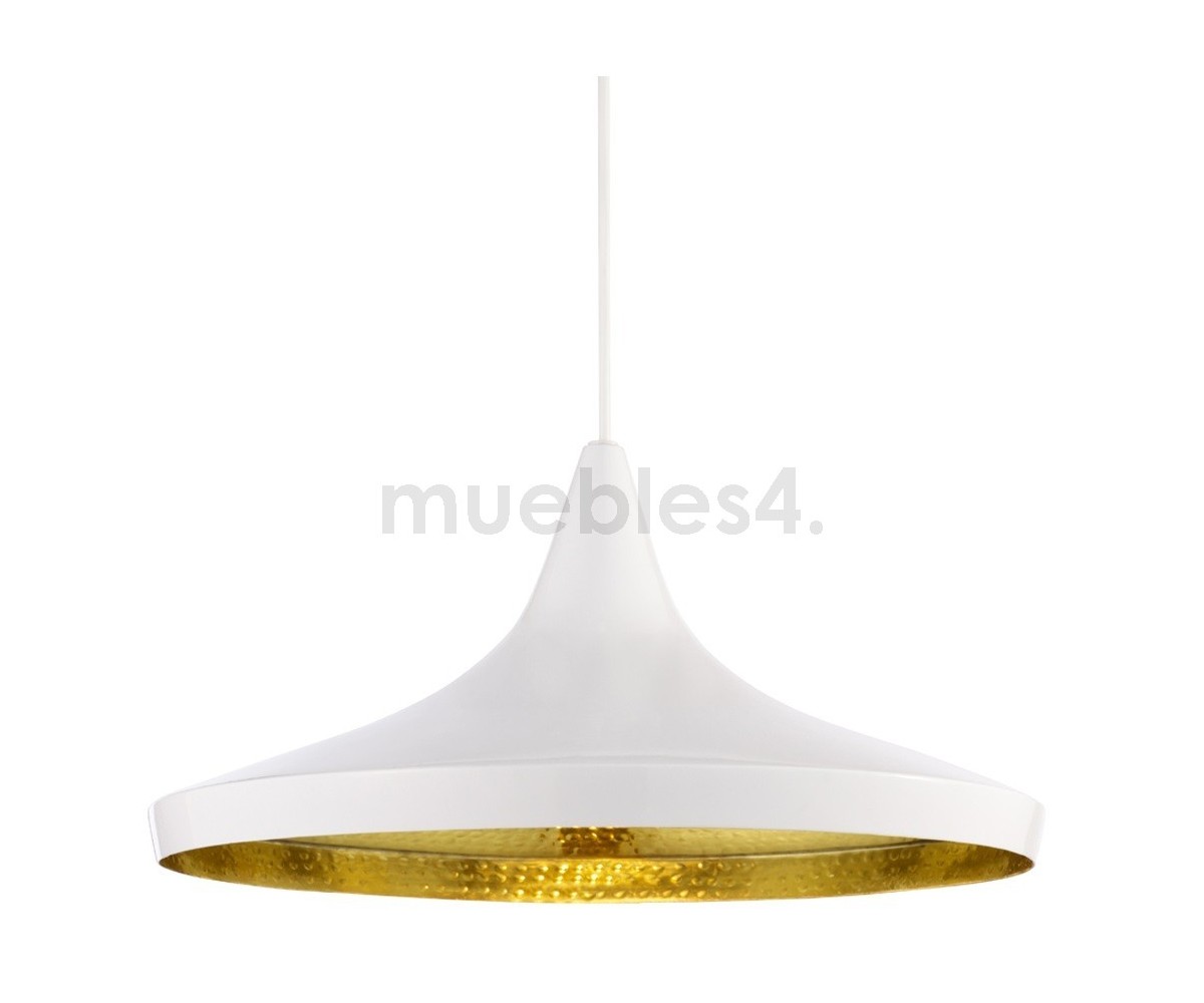 Lámpara suspendida inspirada en un diseño de Tom Dixon. Realizada en ACERO lacado al horno con pintura de epoxi de alta resistencia, color exterior negro o blanco, color interior oro/dorado con grabado en relieve de escamas. Longitud de cable 120cm aprox. Casquillo para bombilla E27, máximo 60w. Votaje Alta tensión 220V/230V. No incluye bombilla. Réplica exacta con materiales originales de máxima calidad.