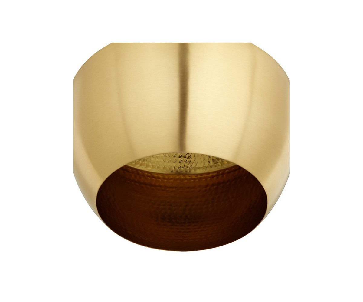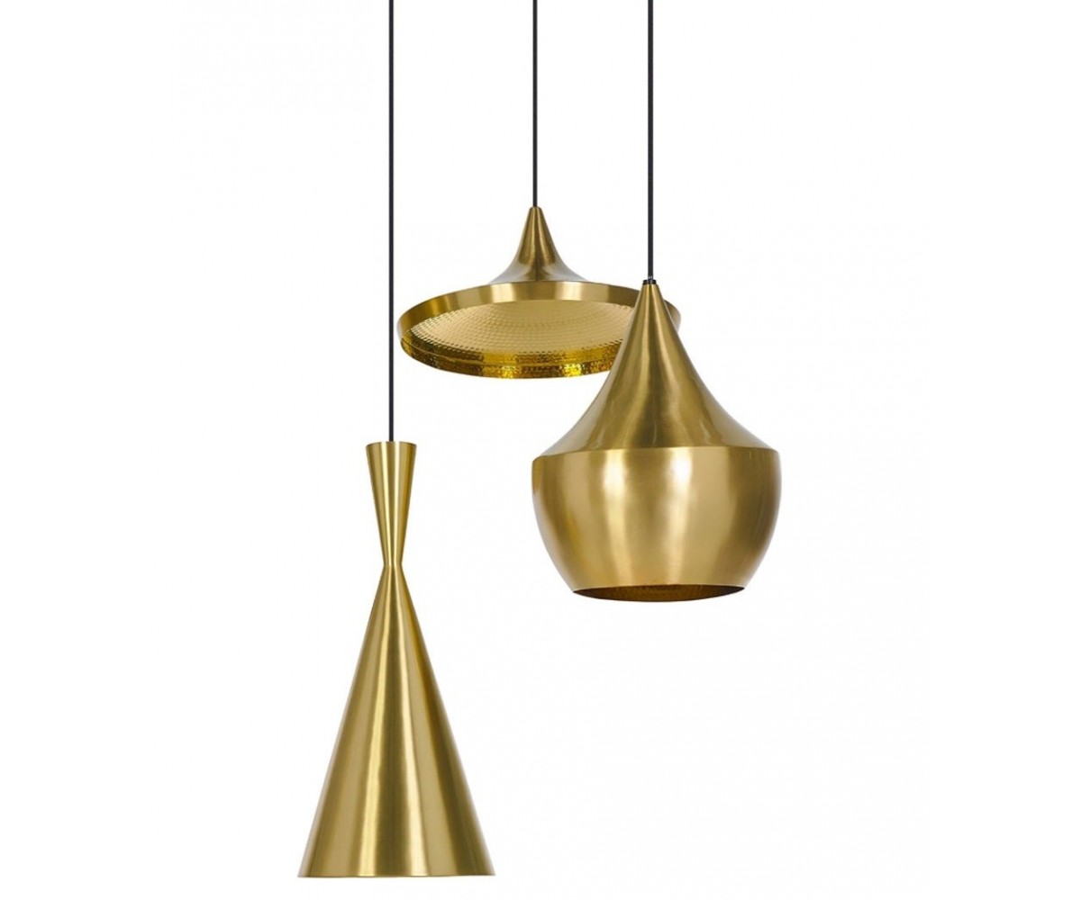 Lámpara suspendida inspirada en un diseño de Tom Dixon. Realizada en aluminio lacado al horno con pintura de epoxi de alta resistencia, color exterior dorado, color interior oro/dorado con grabado en relieve de escamas. Longitud de cable 120cm aprox. Modelo de bombilla E27 máximo 60w. Réplica exacta con materiales originales de máxima calidad.