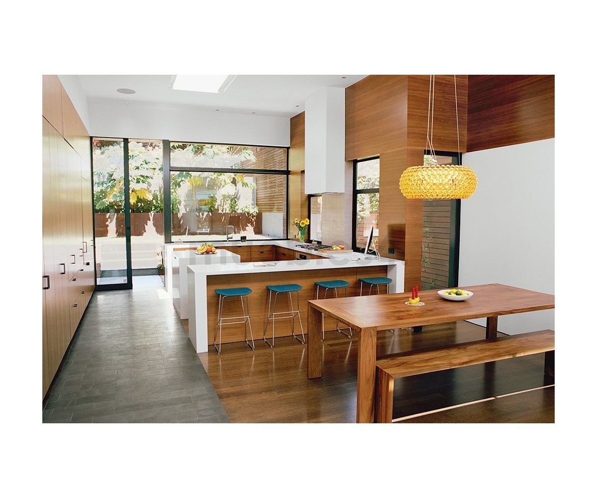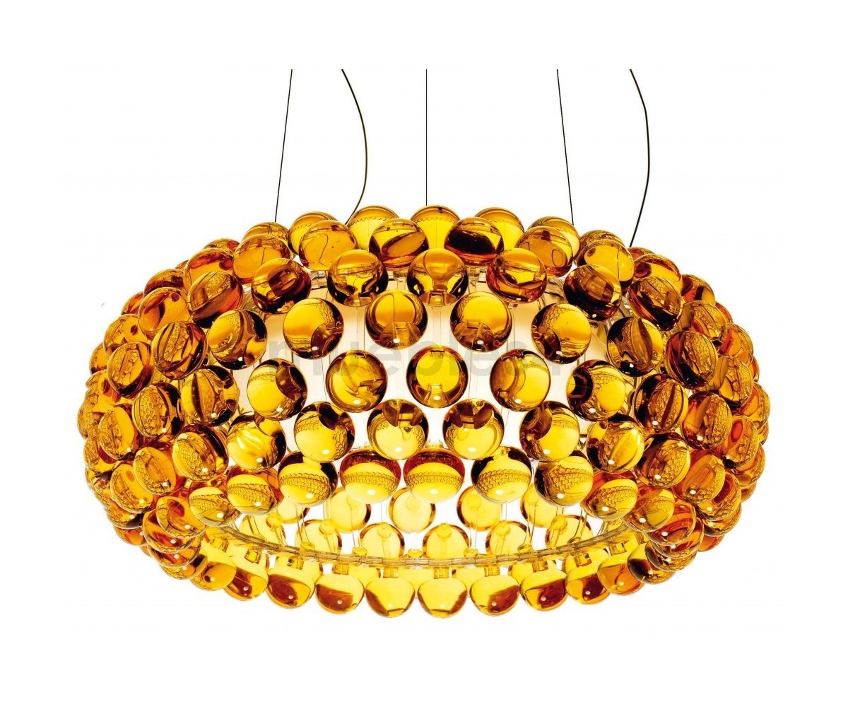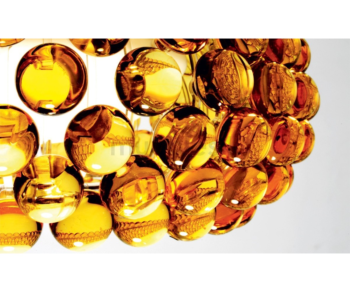 Lámpara suspendida circular, inspirada en un diseño de Patricia Urquiola y Eliana Gerotto. Realizada con esferas de metracrilato - acrílic circular terminación dorado/ambar. Modelo de bombilla E27. Se entrega desmontada. Réplica exacta con materiales originales de máxima calidad.