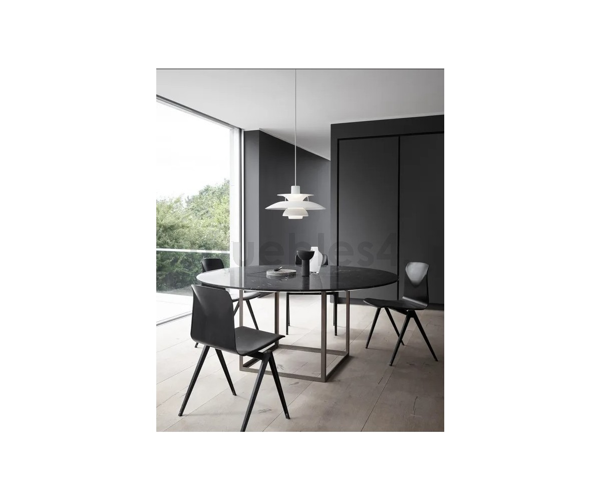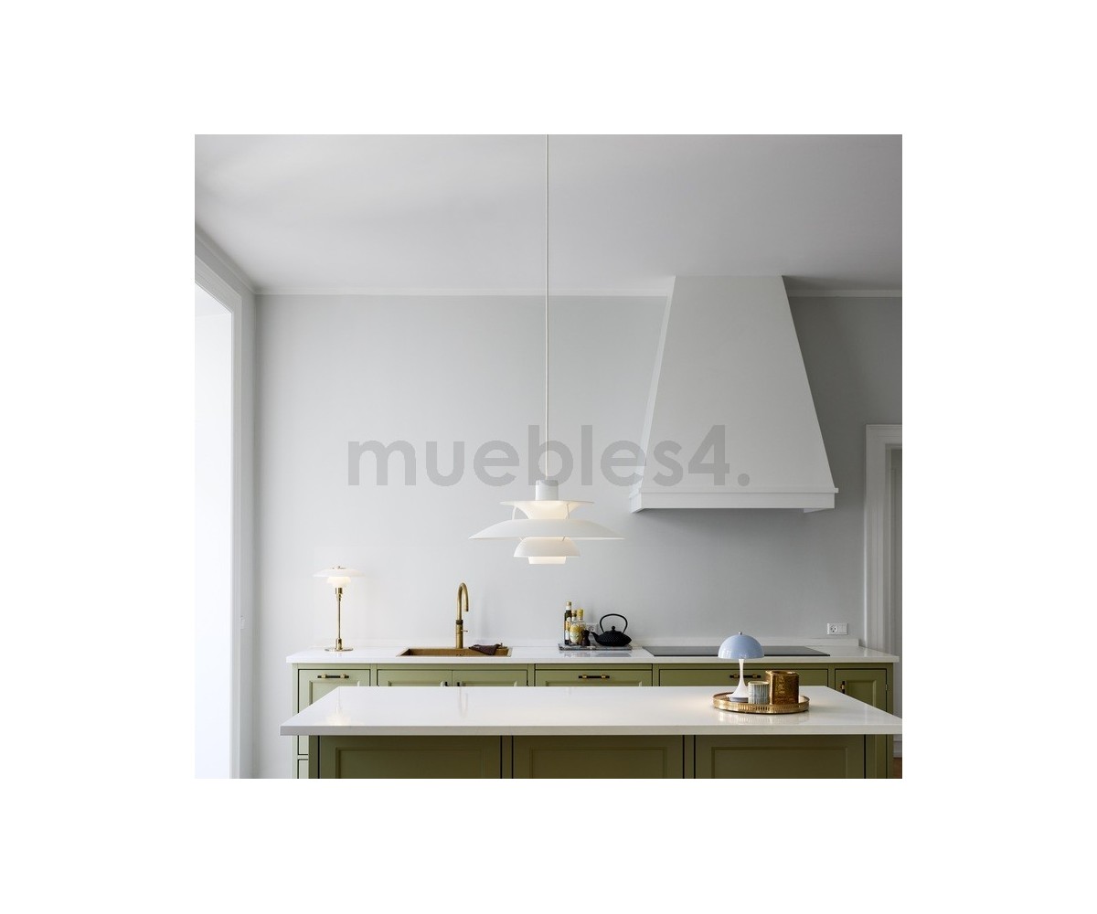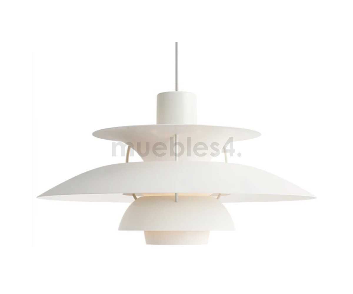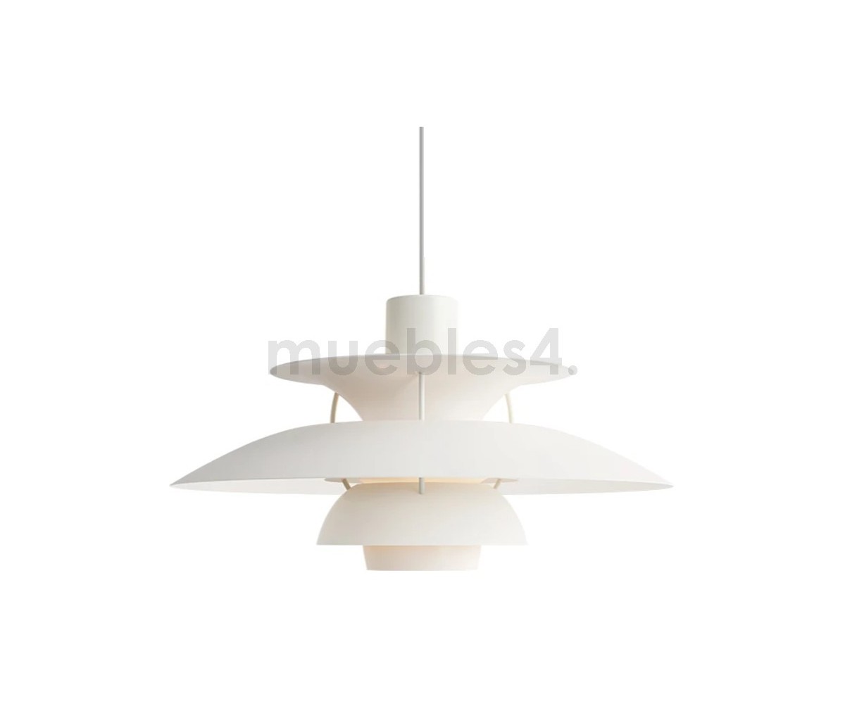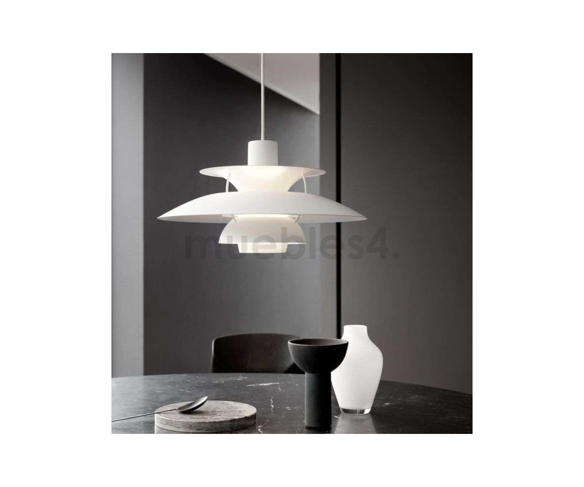 Lámpara suspendida inspirada en un diseño de Poul Henningsen. La luminaria proporciona una iluminación 100% sin deslumbramiento. La palabra monocromo en el nombre del colgante se refiere a que tanto la parte superior de las pantallas como los soportes son de un solo color.