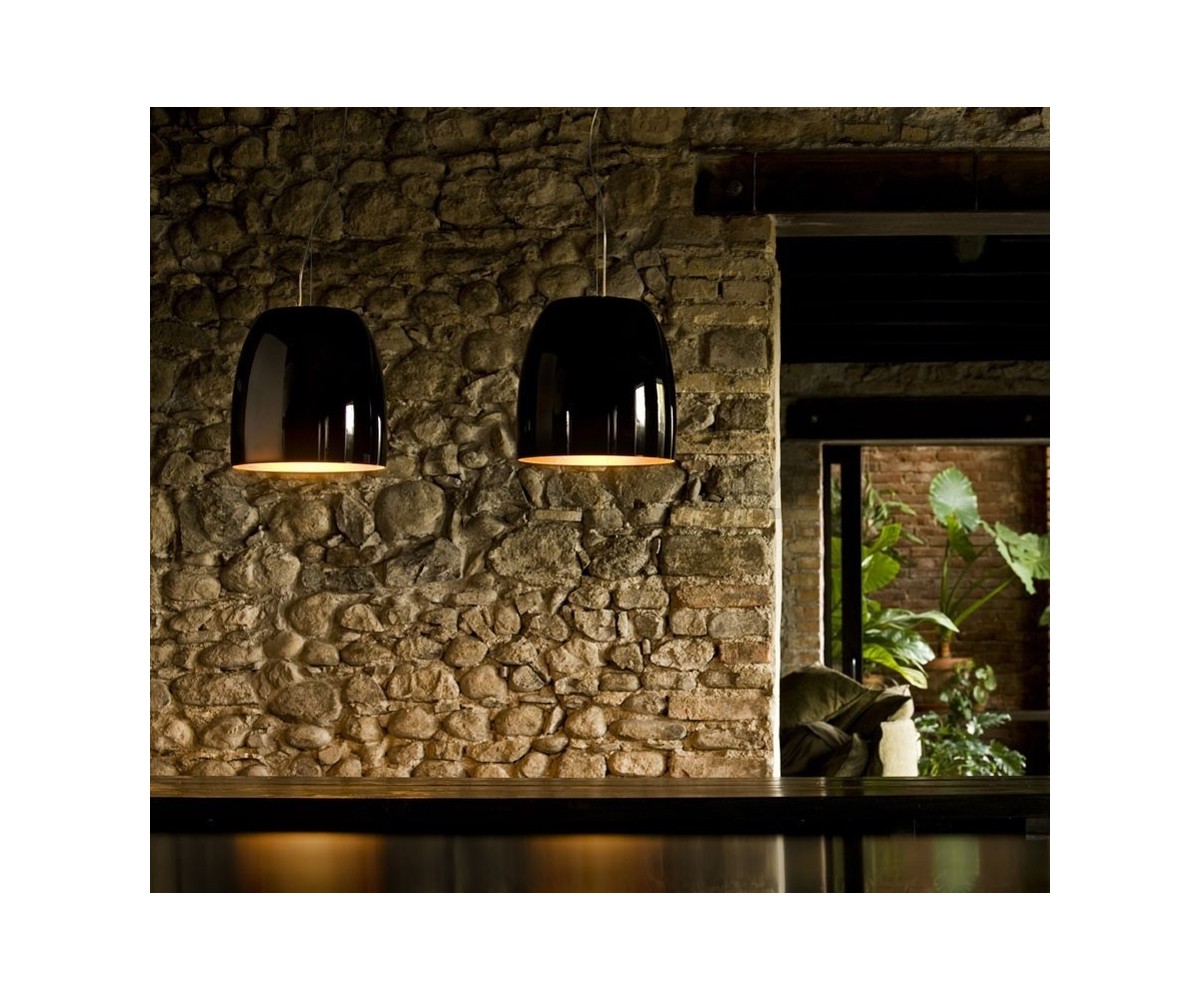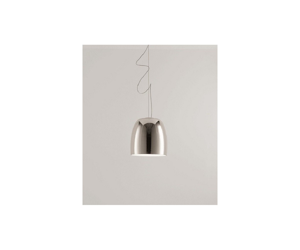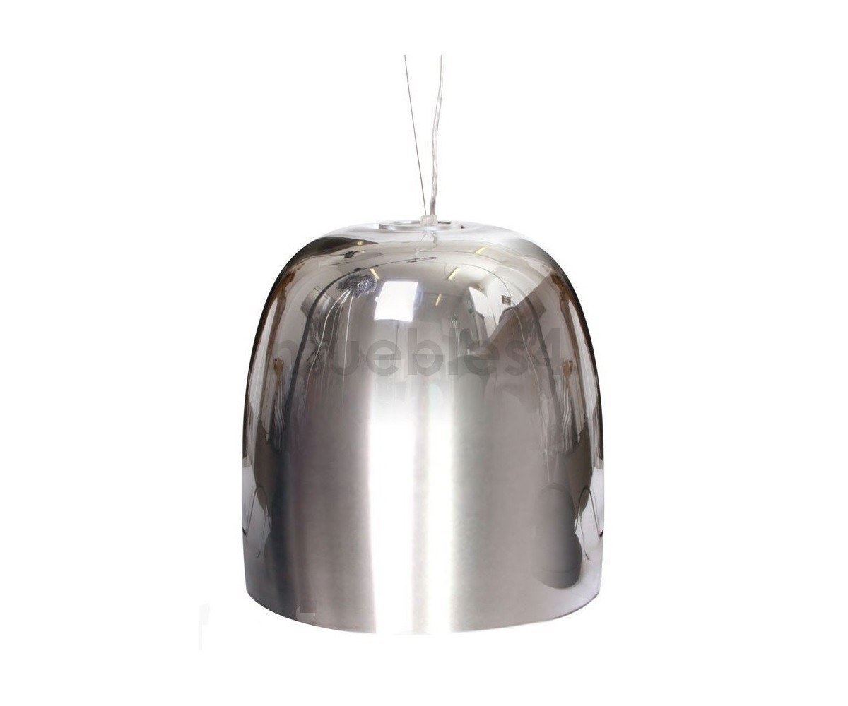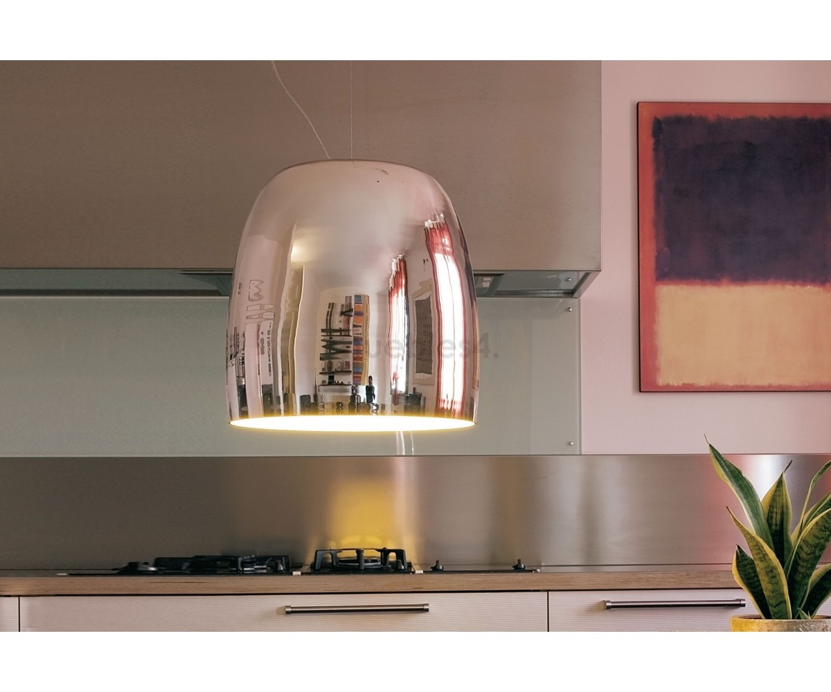 Lámpara suspendida, inspirada en un diseño Mario Mengotti y Sergio Prandina. Faricada en acero cromado y cristal. Modelo de bombilla E27. Réplica exacta con materiales originales de máxima calidad.