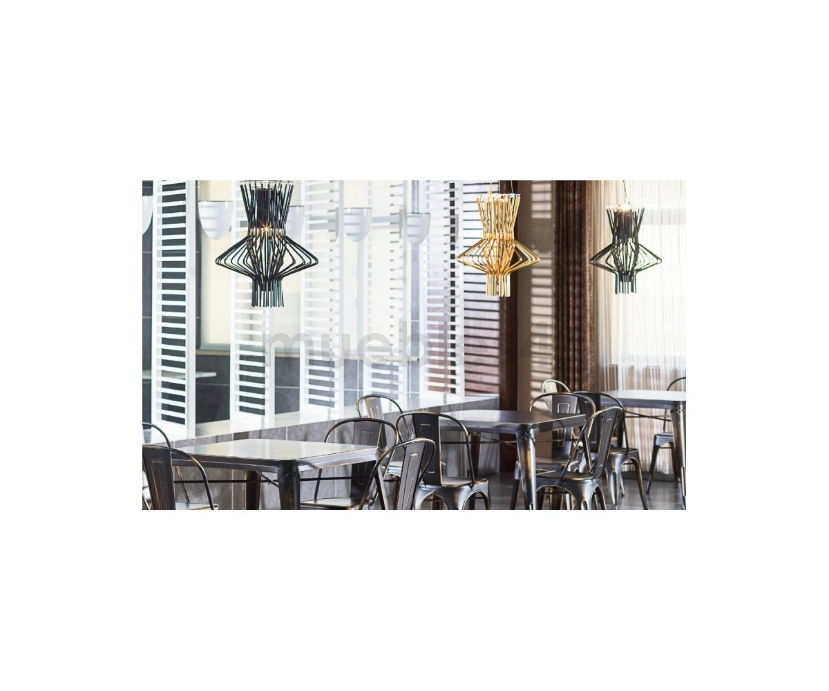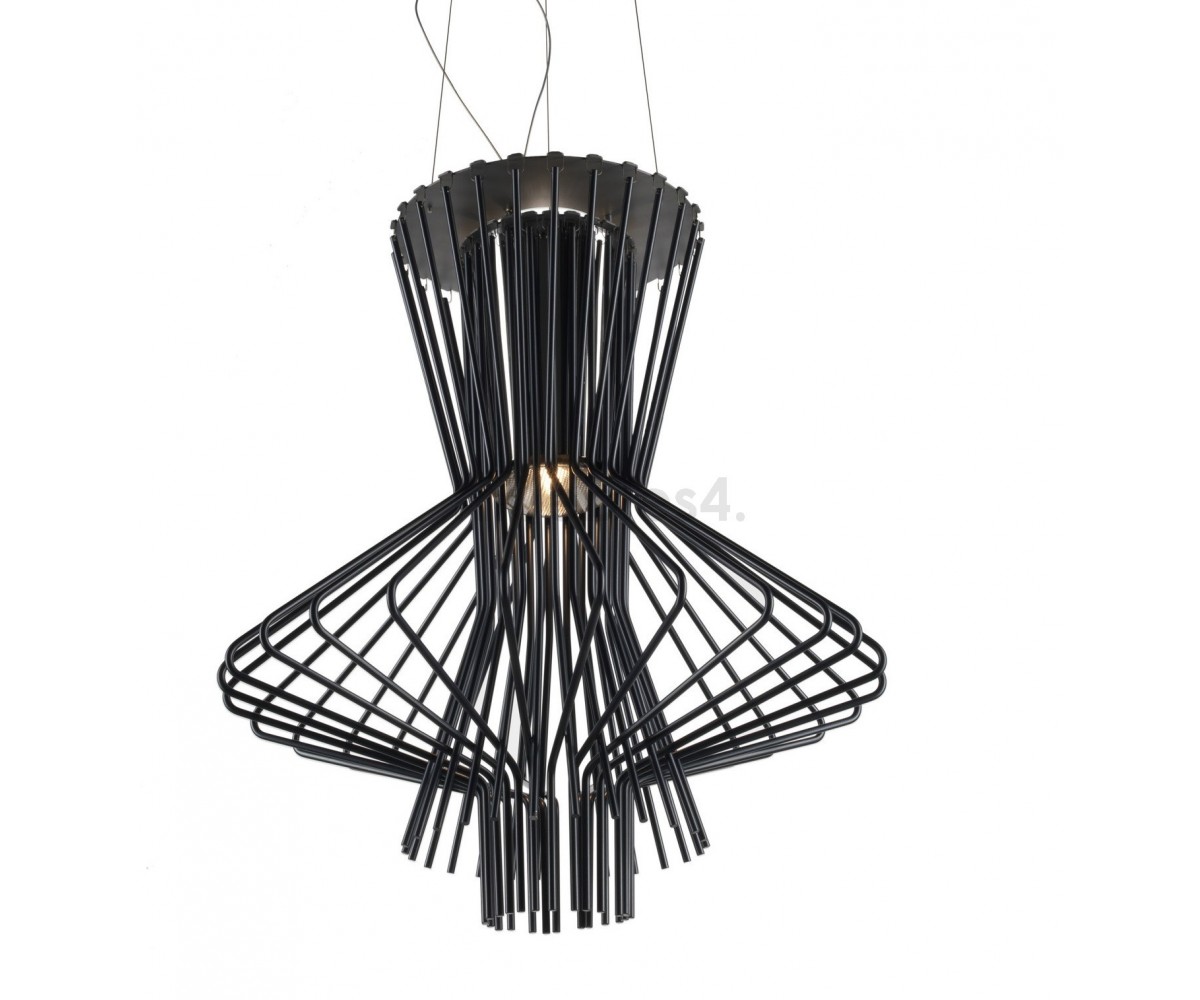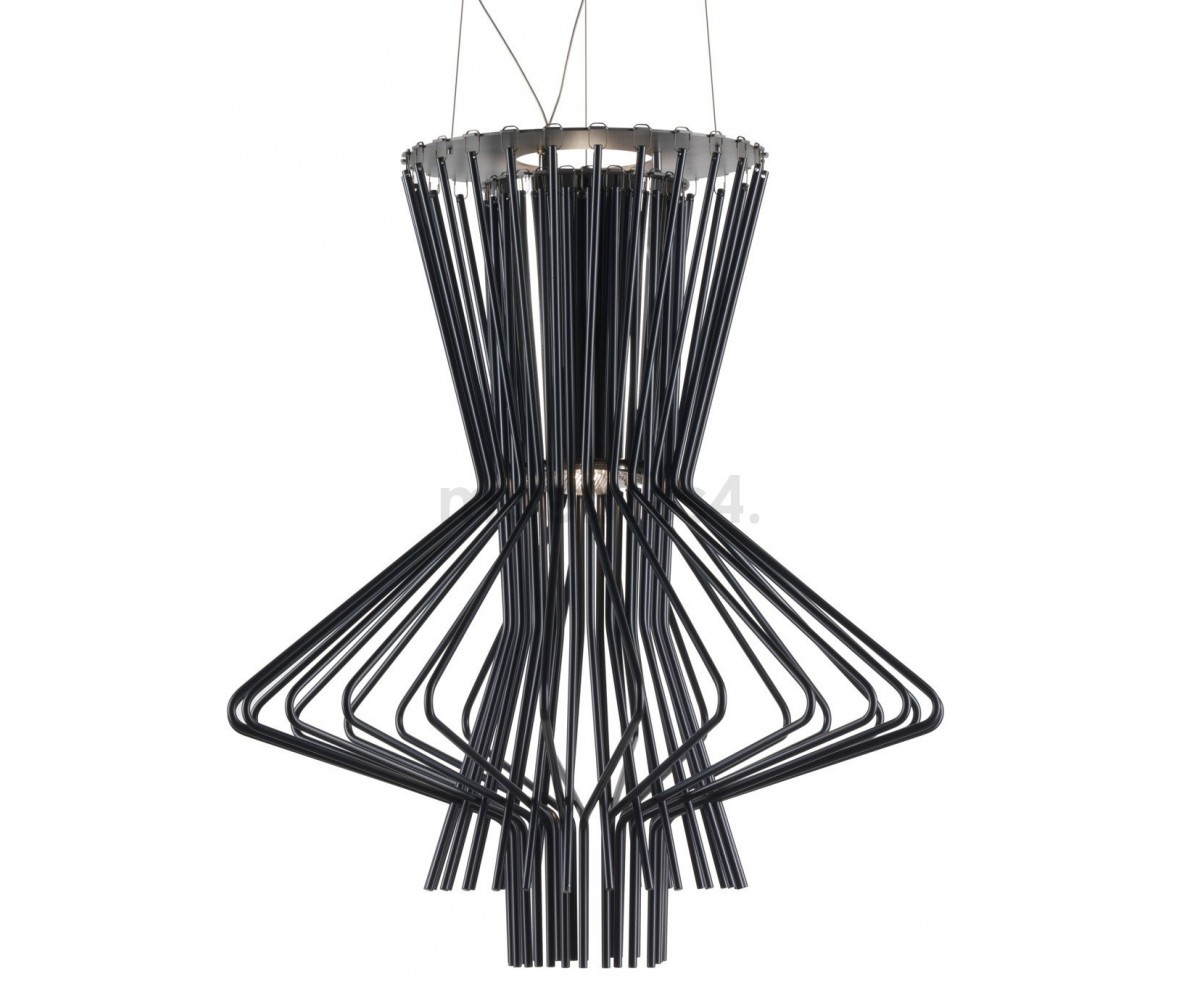 Lámpara suspendida, inspirada por los diseñadores Atelier Oi para Forcarini. Realizada en aluminio color negro. Modelo de bombilla E27. Medida máxima con cable 150cm. Réplica exacta con materiales originales de máxima calidad.