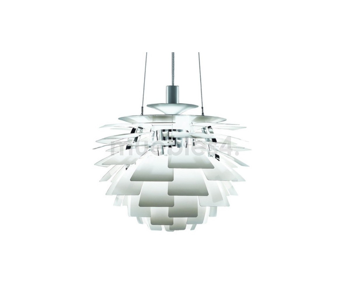Lámpara suspendida, inspirada en un diseño de Poul Henningsen. Fabricada mediante laminas de aluminio color plata o blanco. Elaborada en aluminio y acero. Modelo de bombilla E27. Réplica exacta con materiales originales de máxima calidad.