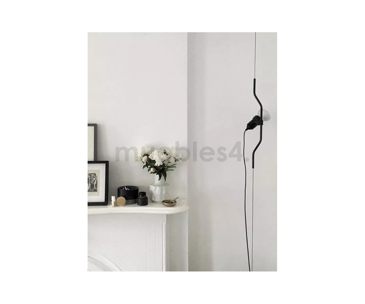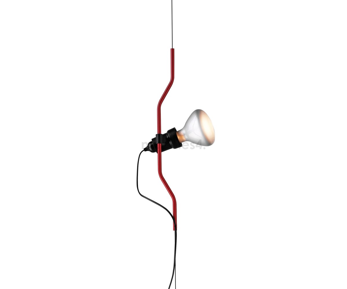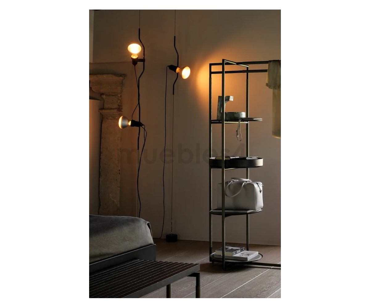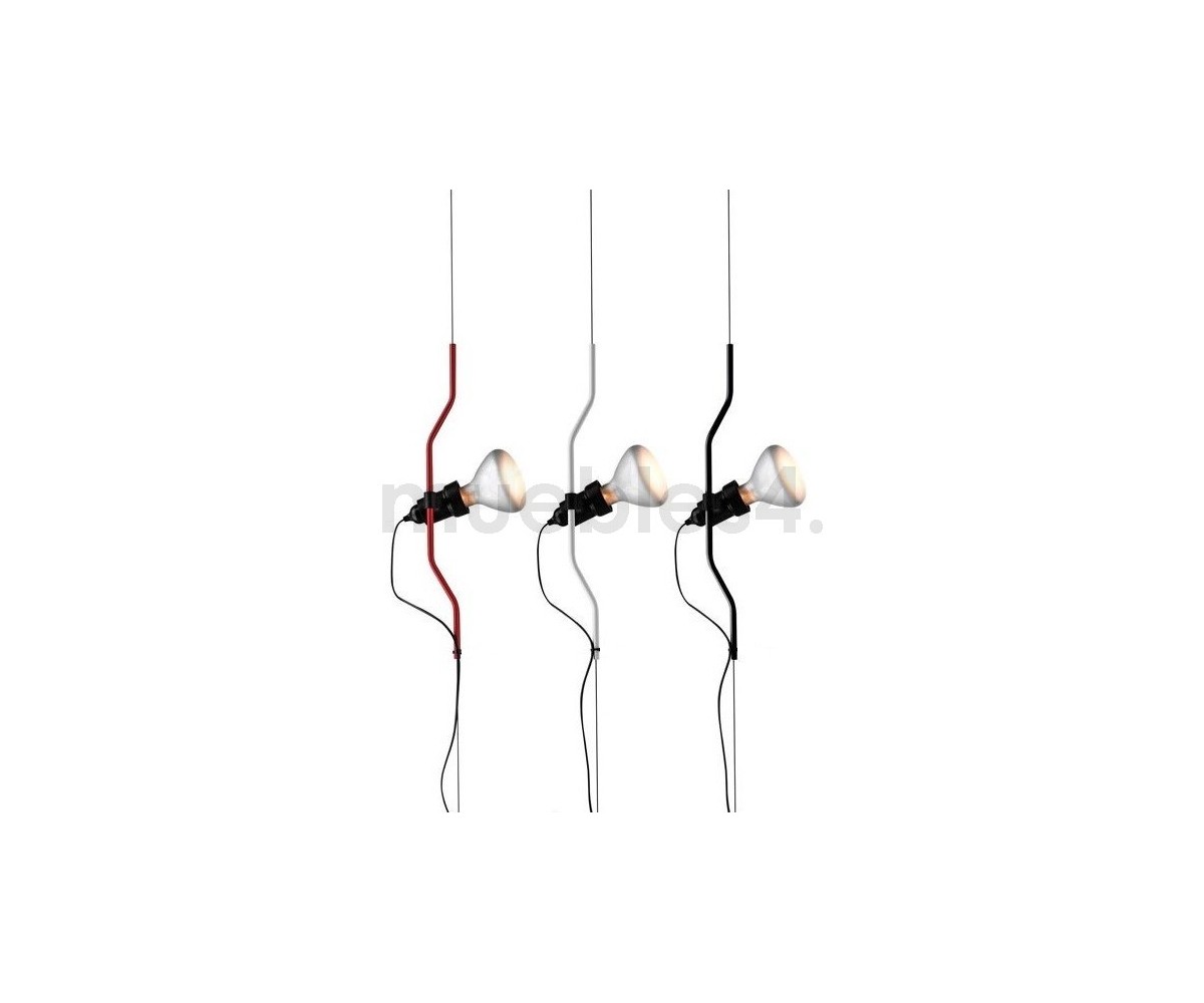 Lámpara suspendida, inspirada en un diseño de Achille Castiglioni y Pio Manzú. Lámpara de techo a suelo que esconde una ingeniosa técnica que nos permite subir o bajar fácilmente el punto de luz y enfocar el casquillo hacia dónde queramos. El movimiento vertical del cuerpo de luz se obtiene mediante el deslizamiento de un tubo en acero perfilado.