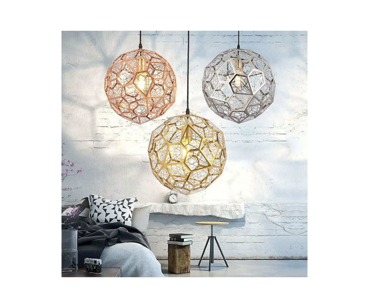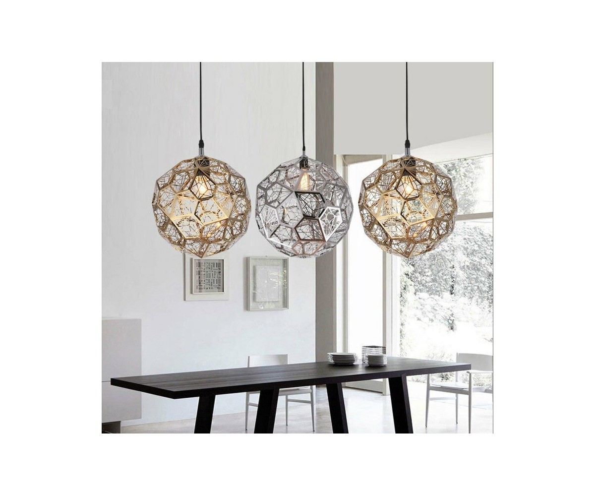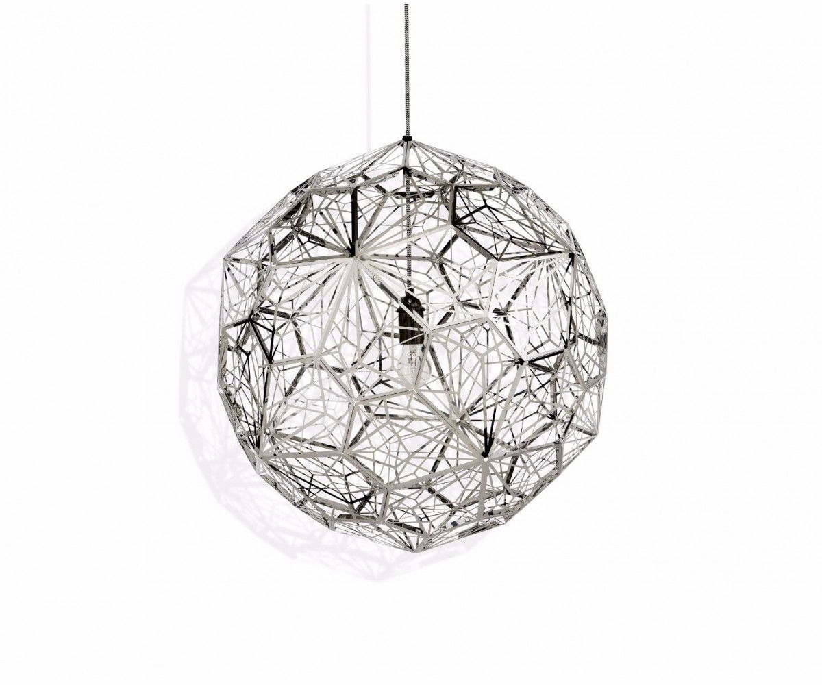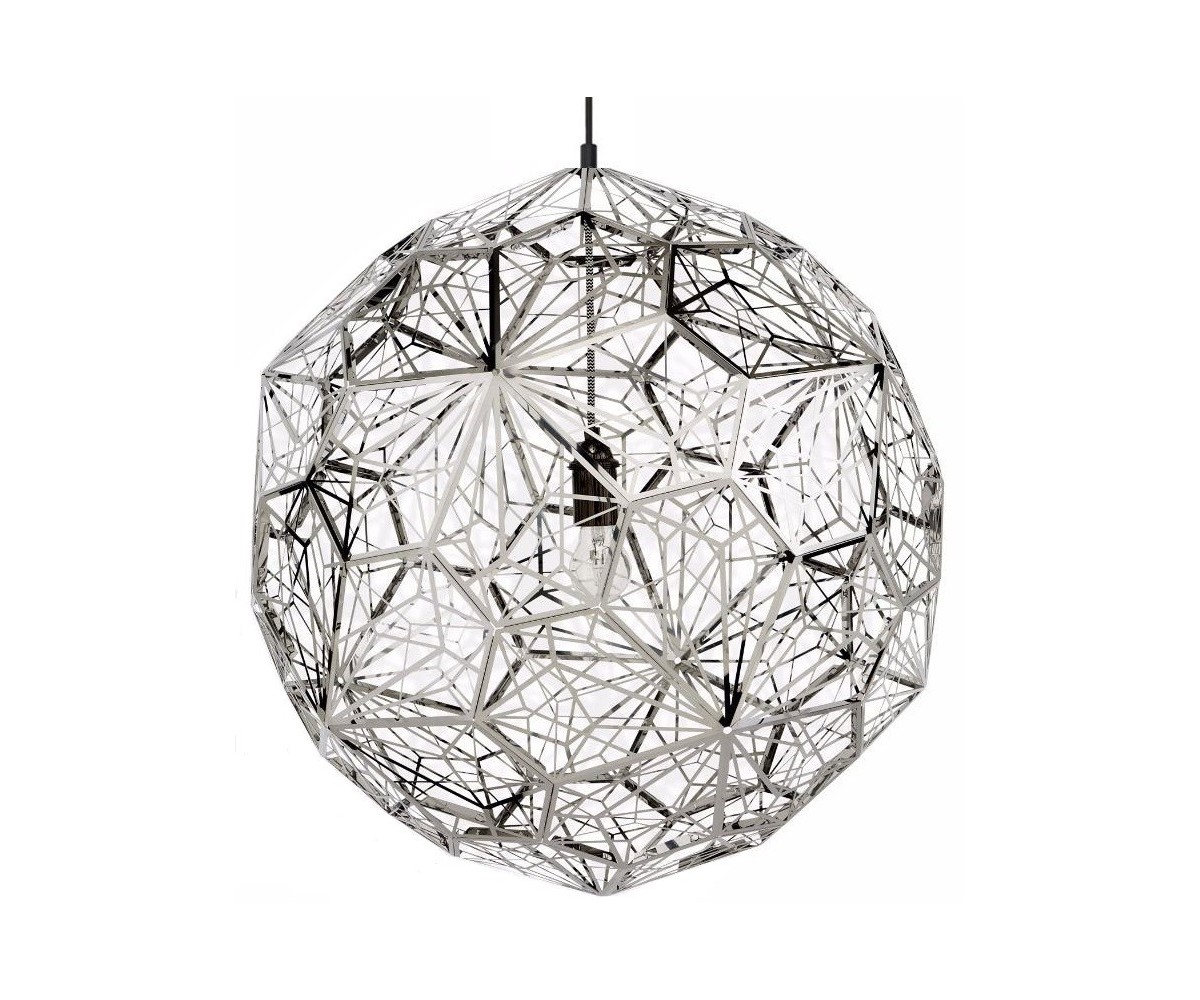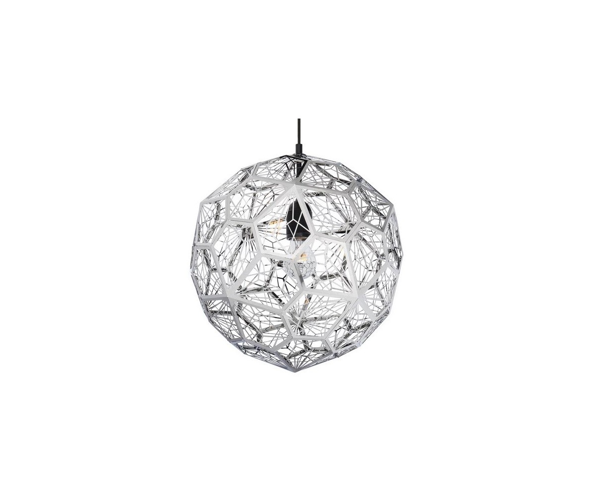 Lámpara de techo inspirada en un diseño de Tom Dixon. Fabricada de forma pentagonal que se repite 60 veces, forma circular creando una escultura de acero pulido de máxima calidad con terminación plata. Támbien disponible en terminación dorado oro. Réplica exacta con materiales originales de máxima calidad.