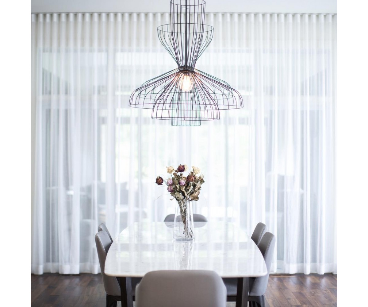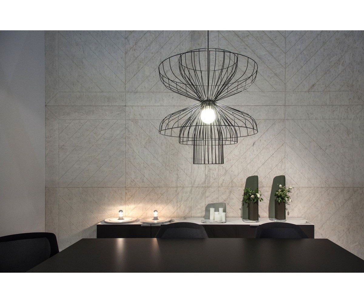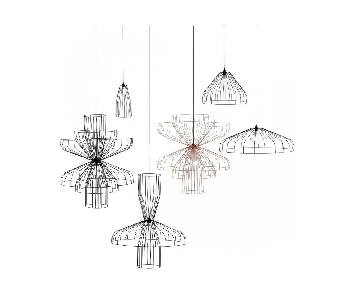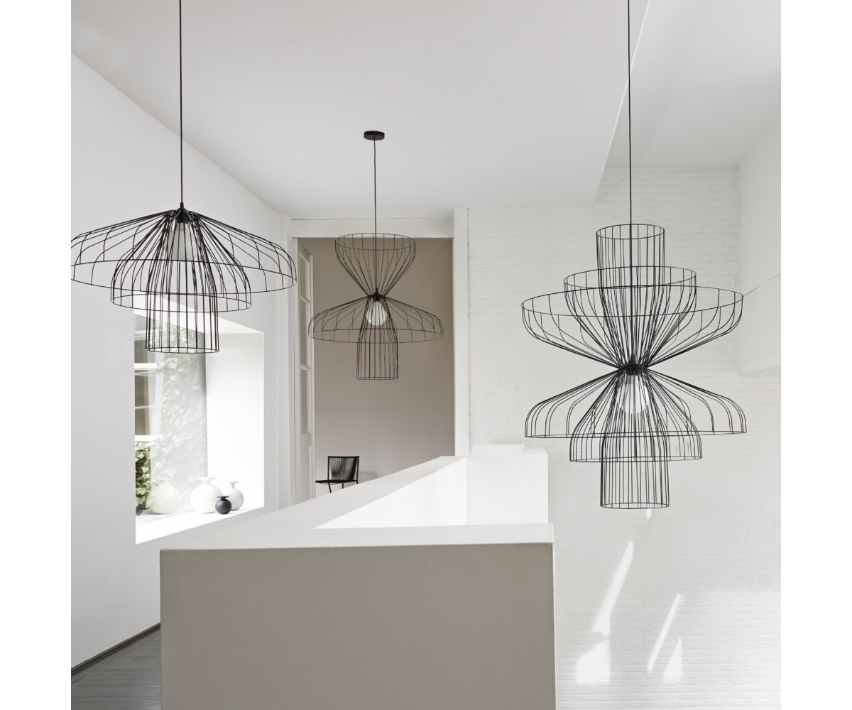 Lámpara de techo inspirada en un diseño de Nathan Yong para Ligne Roset. De estilo Art Deco fabricada en alambre de acero TRIPLE LACADO color negro. Réplica exacta con materiales originales de máxima calidad.