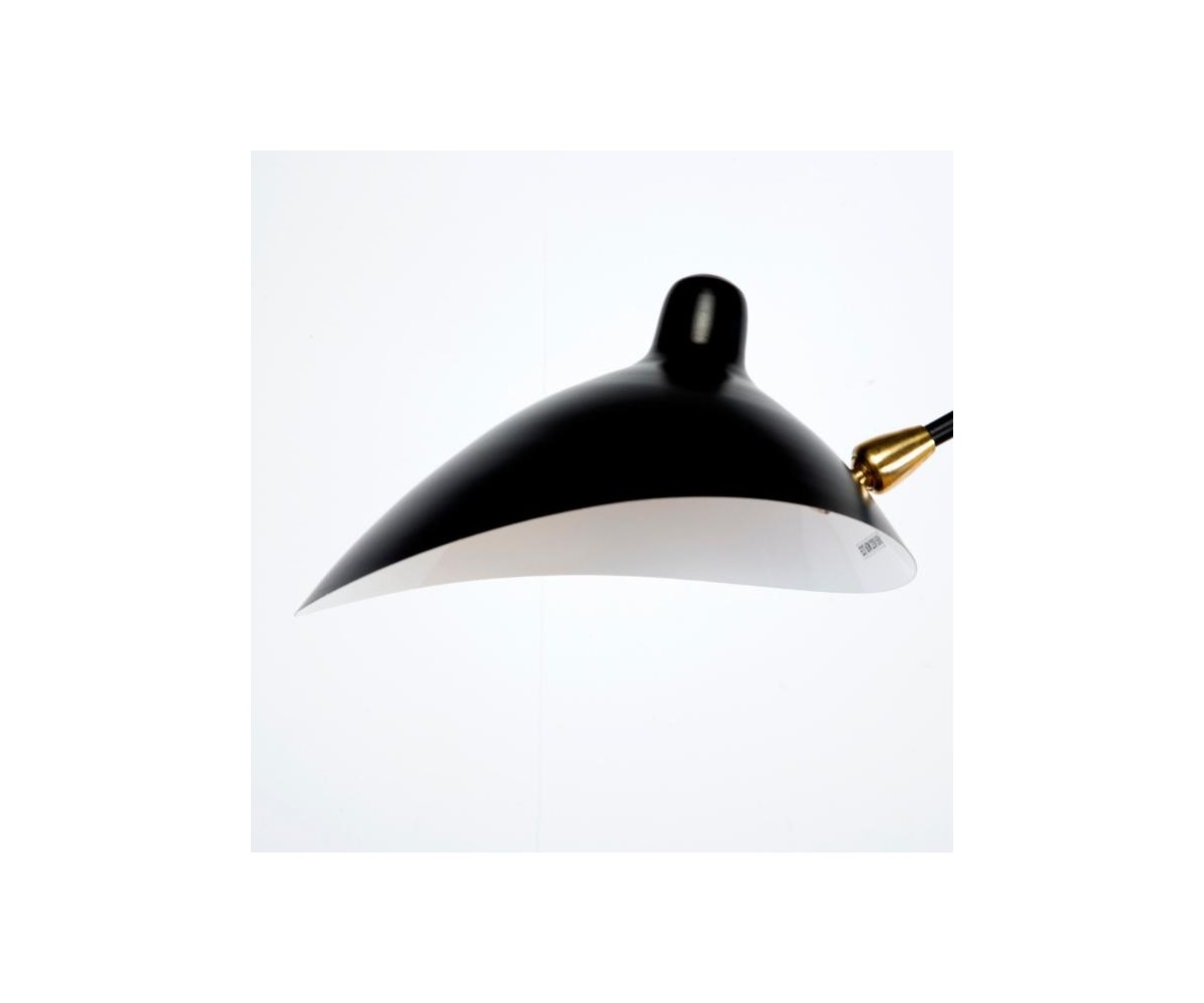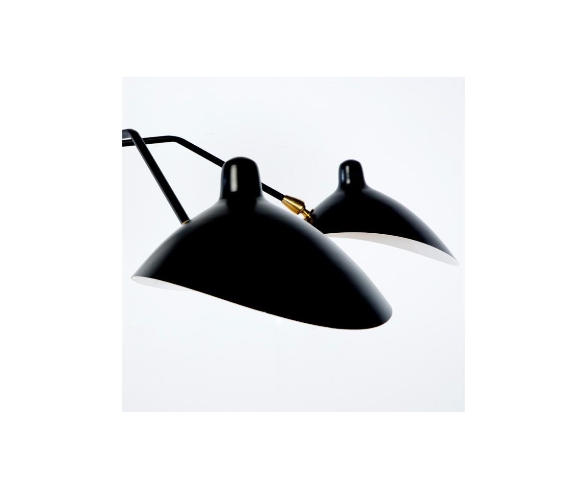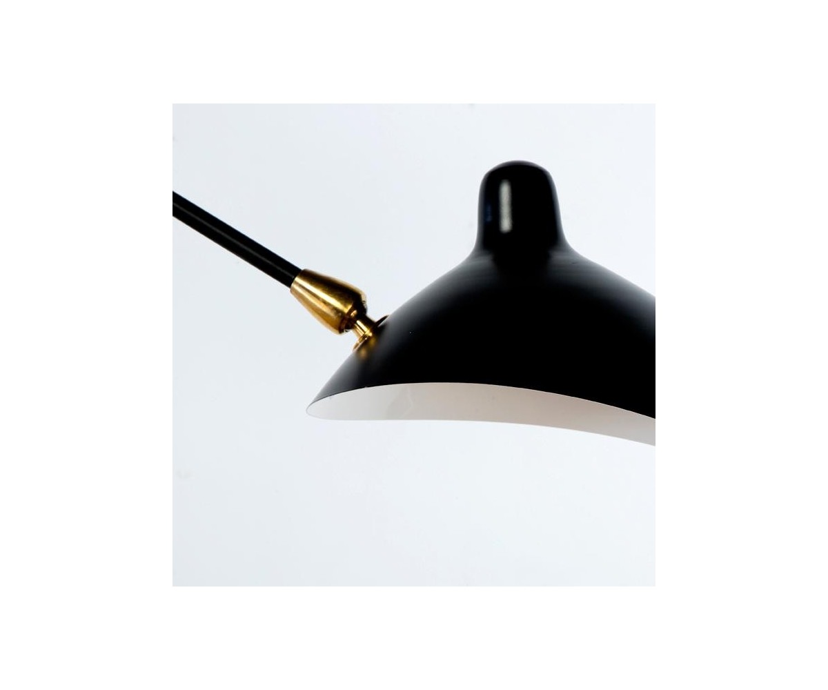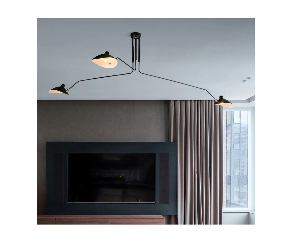 Lámpara de techo inspirada en un diseño de Serge Mouille. Fabricada en acero y cobre, TRIPLE LACADO en color negro. Difusor orientable. Modelo de bombilla E27. Medidas Brazos: 1- 134cm. 2- 110cm. 3- 85cm. Réplica exacta con materiales originales de máxima calidad.