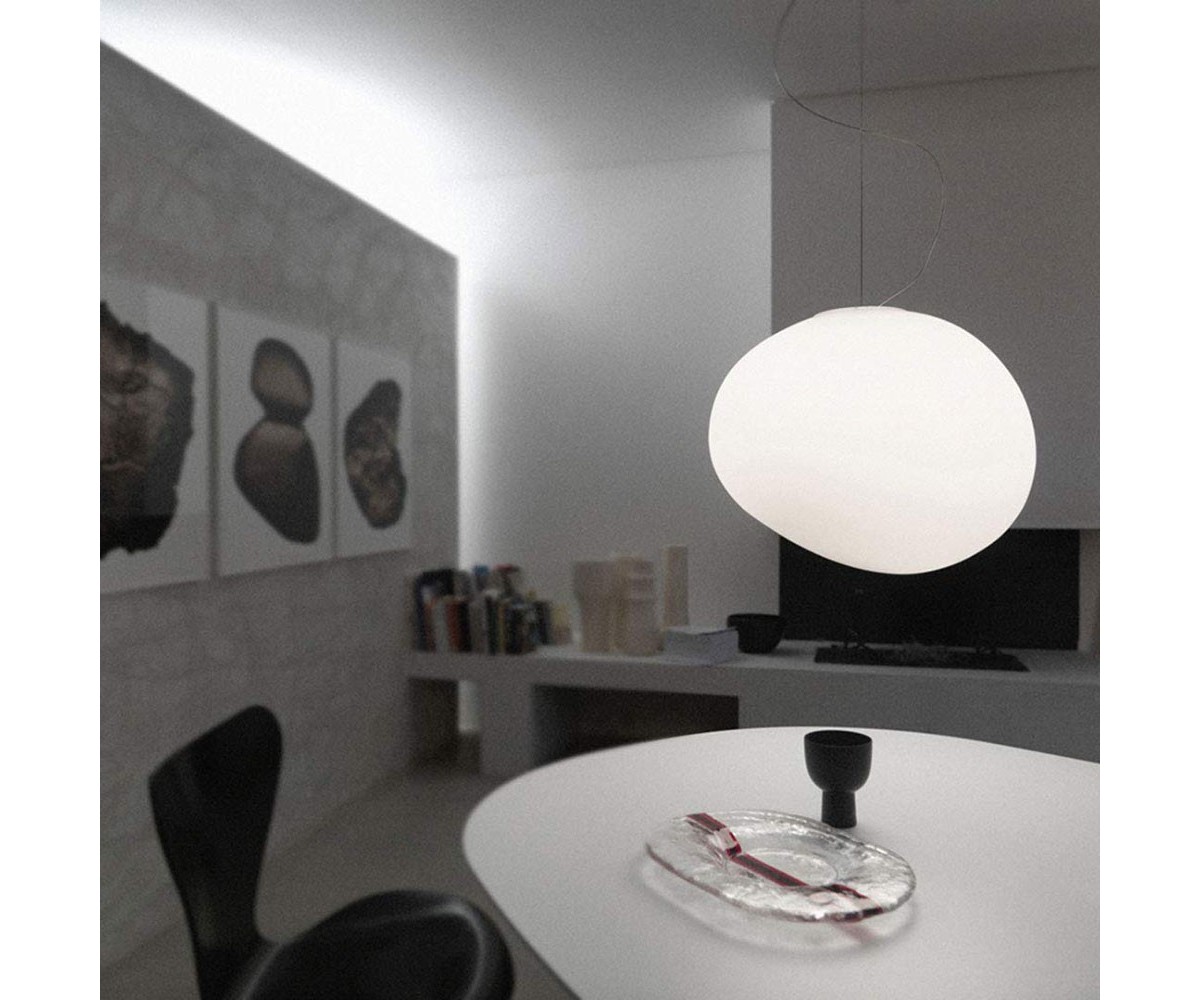 Lámpara de techo inspirada en un diseño de Ludovica e Roberto Palomba para Foscarini. Tulipa de forma orgánica en vidrio blanco soplado. Modelo de bombilla E27. Disponible en cuatro medidas. Réplica exacta con materiales originales de máxima calidad.