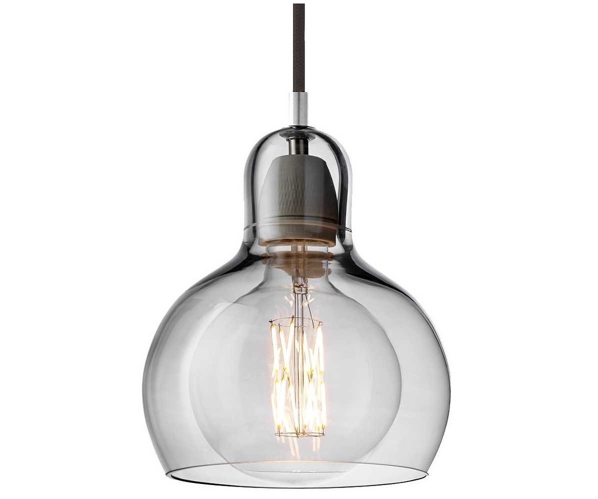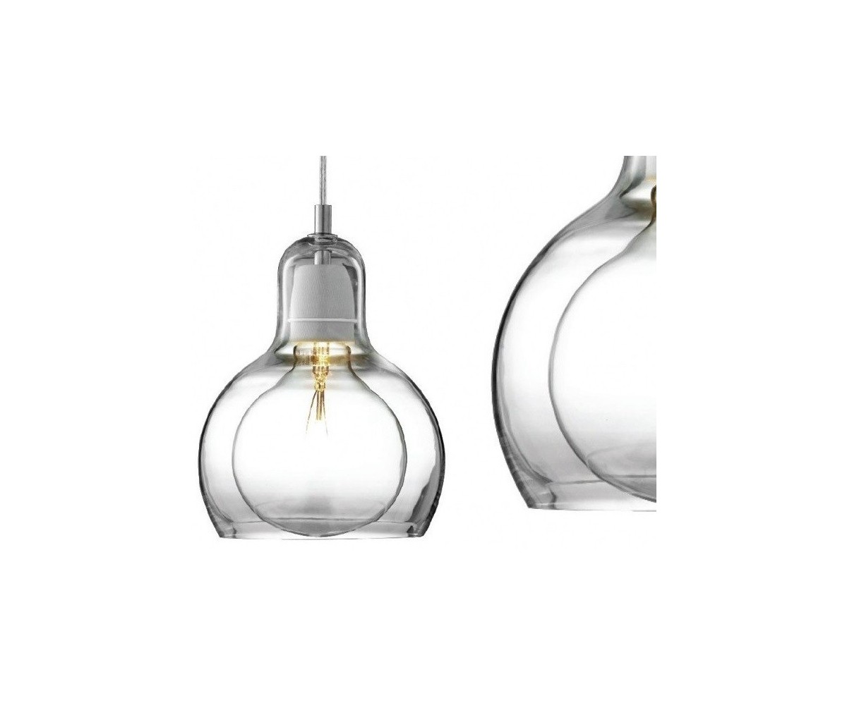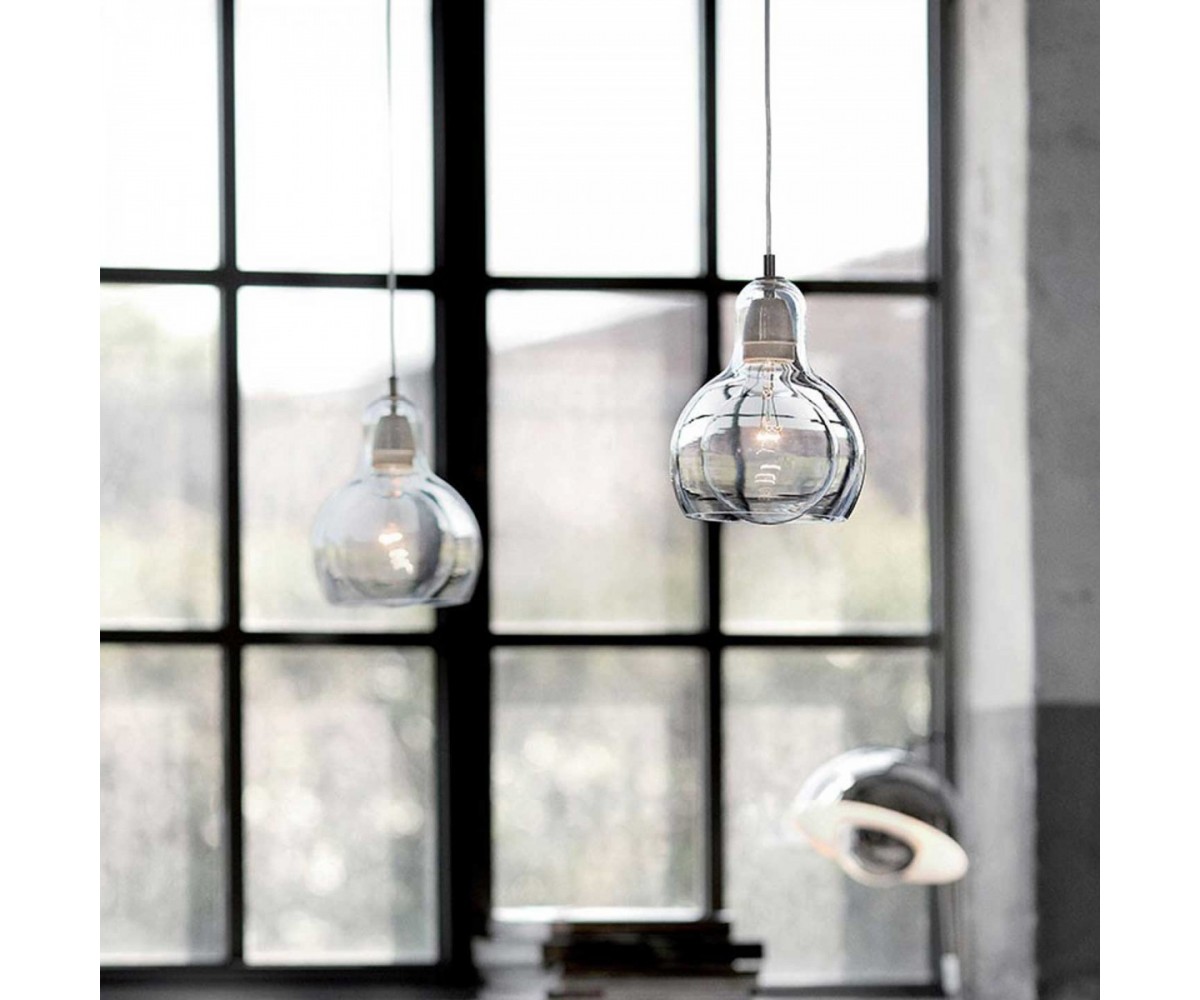 Lámpara de techo inspirada en un diseño de Sofie Refer para & Tradition. Tulipa fabricada en vidrio soplado terminación transparente con cable transparete, gris humo con cable color negro o ambar con cable blanco o transparente. Soporte tubular en acero brillo. Modelo de bombilla E27. Réplica exacta con materiales originales de máxima calidad.
