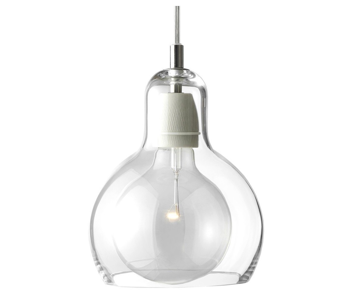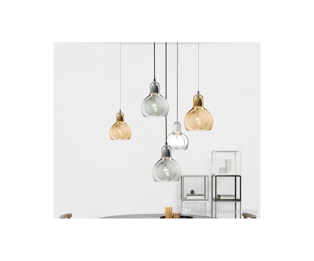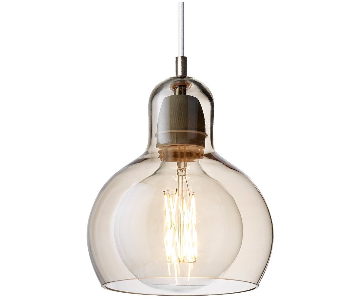 Lámpara de techo inspirada en un diseño de Sofie Refer para & Tradition. Tulipa fabricada en vidrio soplado terminación transparente con cable transparete, gris humo con cable color negro o ambar con cable blanco o transparente. Soporte tubular en acero brillo. Modelo de bombilla E27. Réplica exacta con materiales originales de máxima calidad.