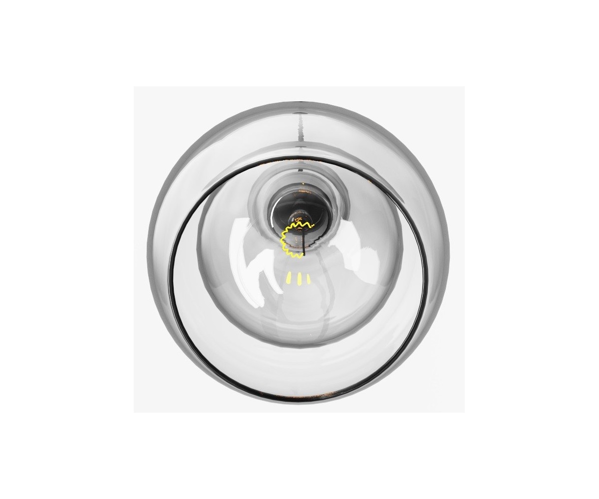 Lámpara de techo inspirada en un diseño de Sofie Refer para & Tradition. Tulipa fabricada en vidrio soplado terminación transparente con cable transparete, gris humo con cable color negro o ambar con cable blanco o transparente. Soporte tubular en acero brillo. Modelo de bombilla E27. Réplica exacta con materiales originales de máxima calidad.