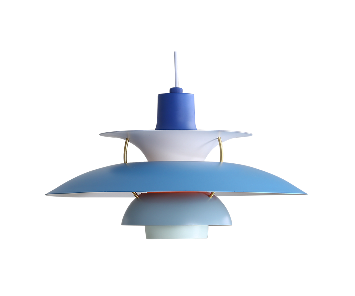 Lámpara suspendida, inspirada en un diseño de Poul Henningsen. Fabricada en aluminio de aleación, color disponible rosa, negro, rojo, celeste, pistacho, planco, amarillo, morado, gris, verde azul y naranja, terminación brillo satinado. Modelo bombilla E27 LED, no incluida. Largo del cable 130cm. También disponible en lámpara de suelo y sobremesa. Réplica exacta con materiales originales de máxima calidad.
