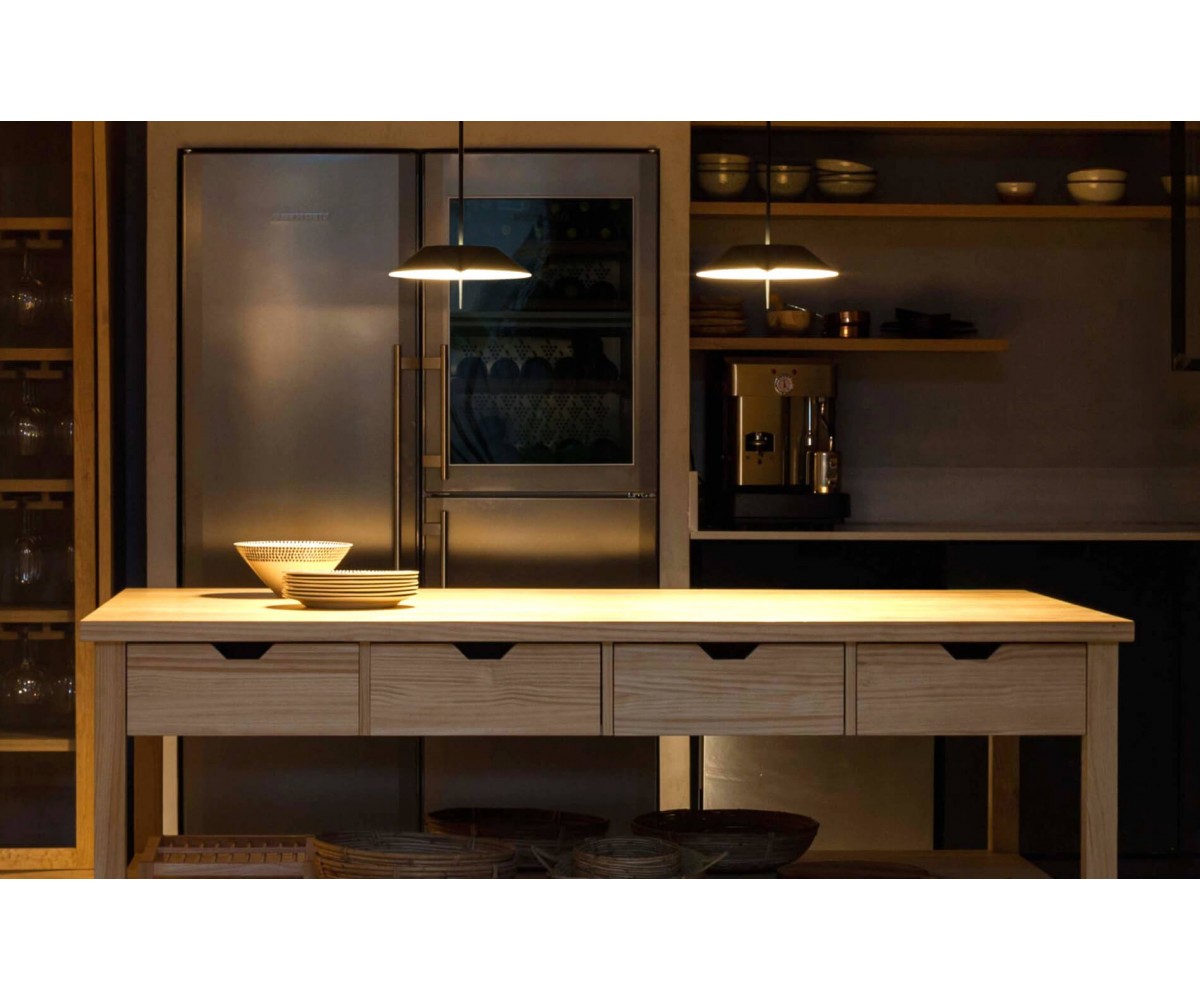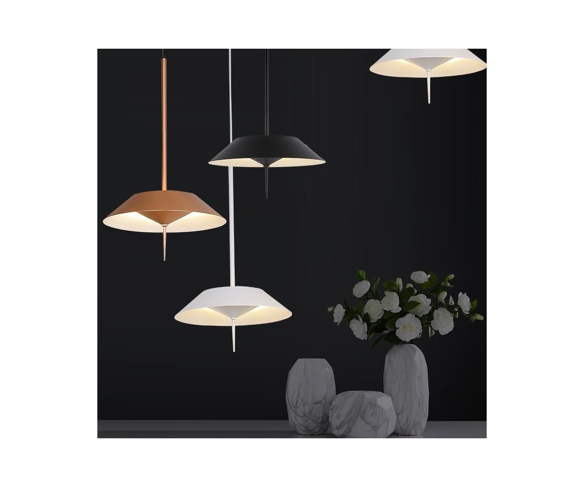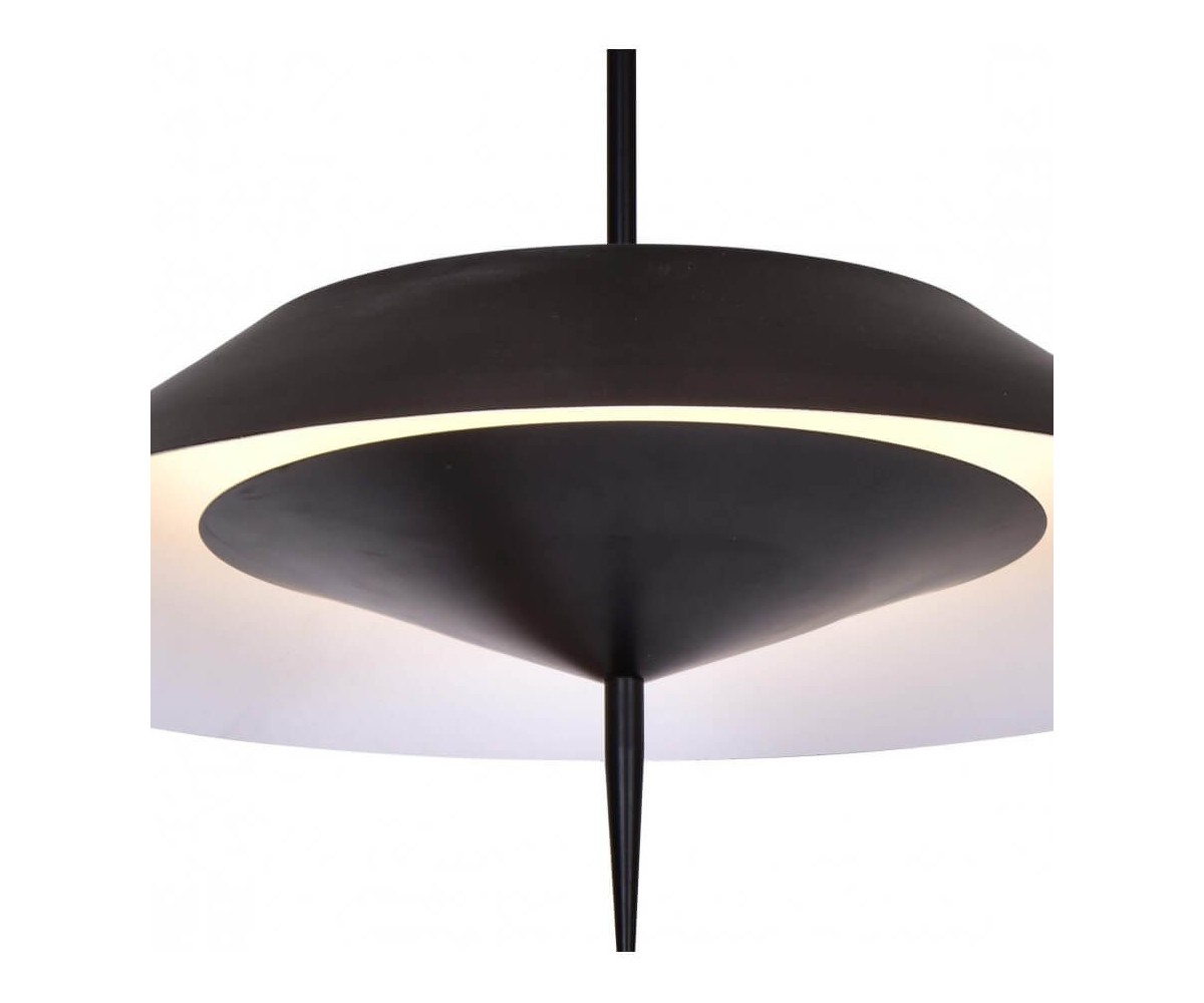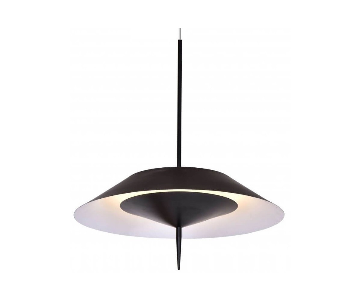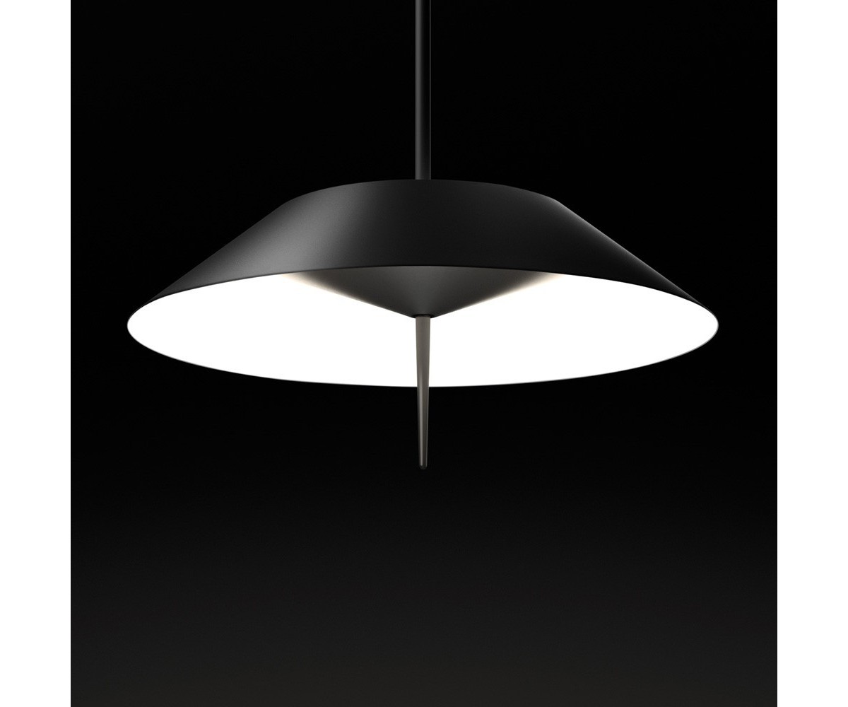 Lámpara de techo inspirada en un diseño de Diego Fortunato. Fabricada en acero con triple lacado terminación mate negro, interior en cristal. Incluye bombilla led. El cable se puede regular en altura. Réplica con materiales originales de máxima calidad.