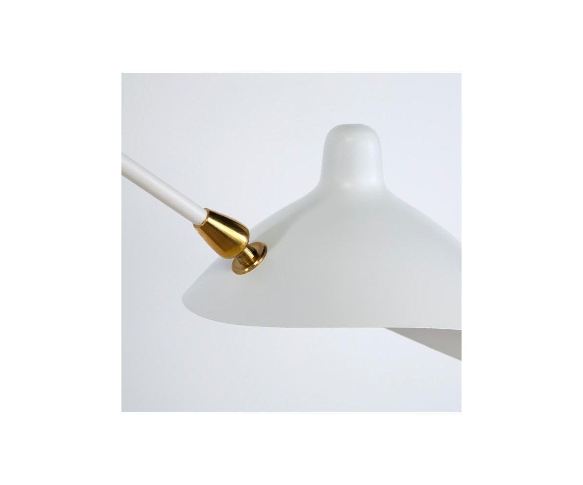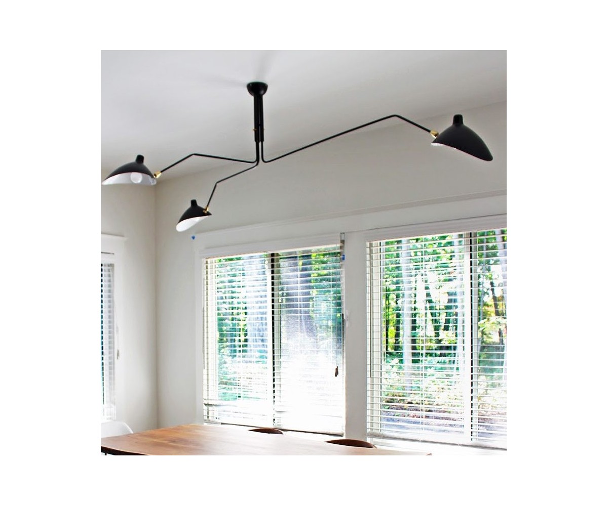 Lámpara de techo inspirada en un diseño de Serge Mouille. Fabricada en acero y cobre, TRIPLE LACADO en color negro o blanco. Difusor orientable. Modelo de bombilla E27. Medidas Brazos: 1- 135cm. 2- 115cm. 3- 85cm. Réplica exacta con materiales originales de máxima calidad.