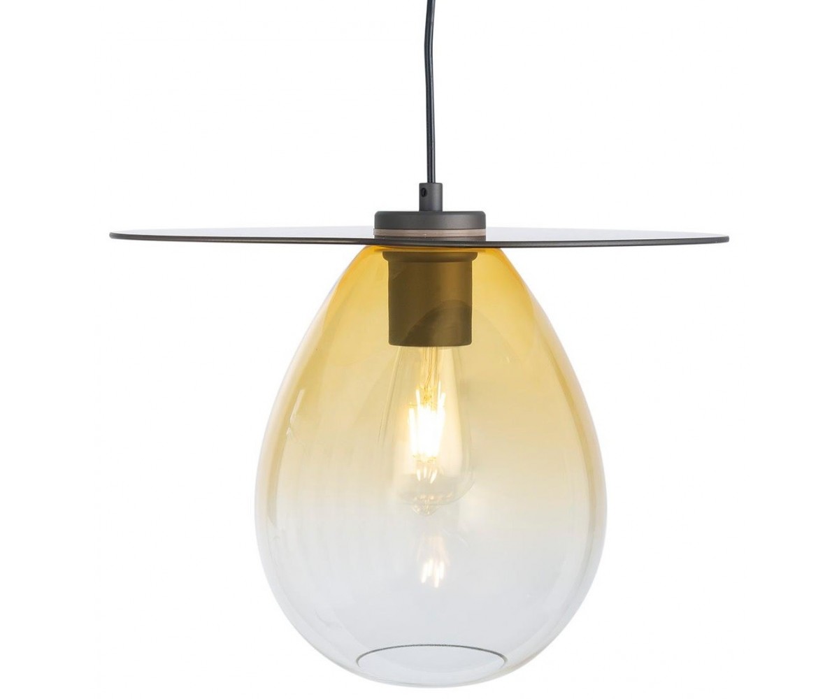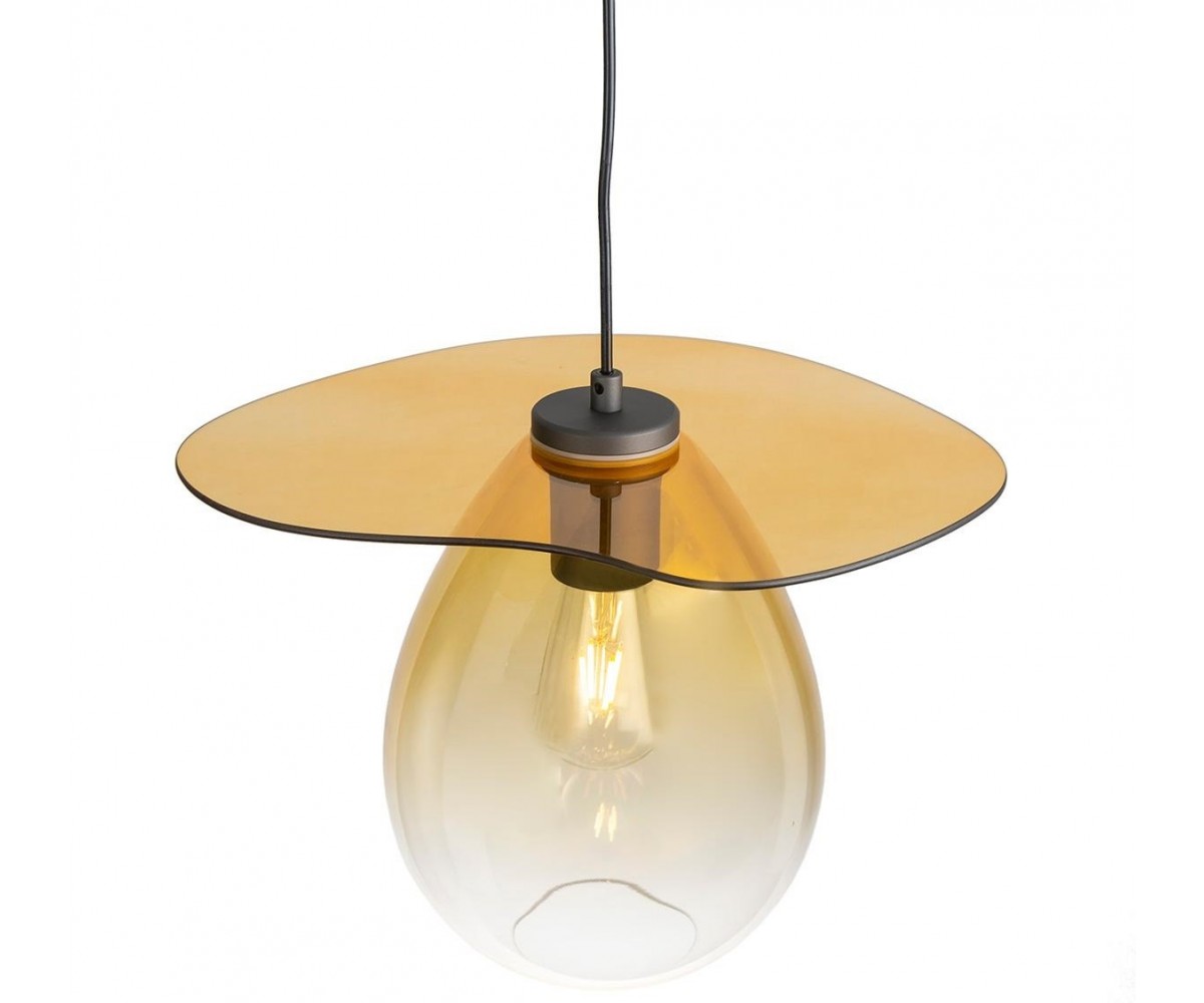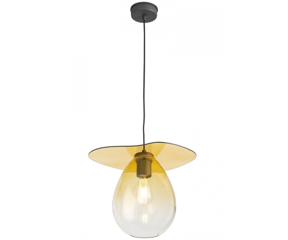 Lámpara suspendida inspirado en un diseño de Wilhelm Wagenfeld. Tulipa en cristal soplado color ambar o azul, carcasa en acero lacado al horno en color negro. También disponible en lámpara de suelo. Casquillo para bombilla E27 Led, no incluida. Réplica con materiales originales de máxima calidad