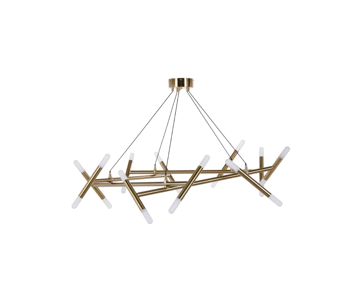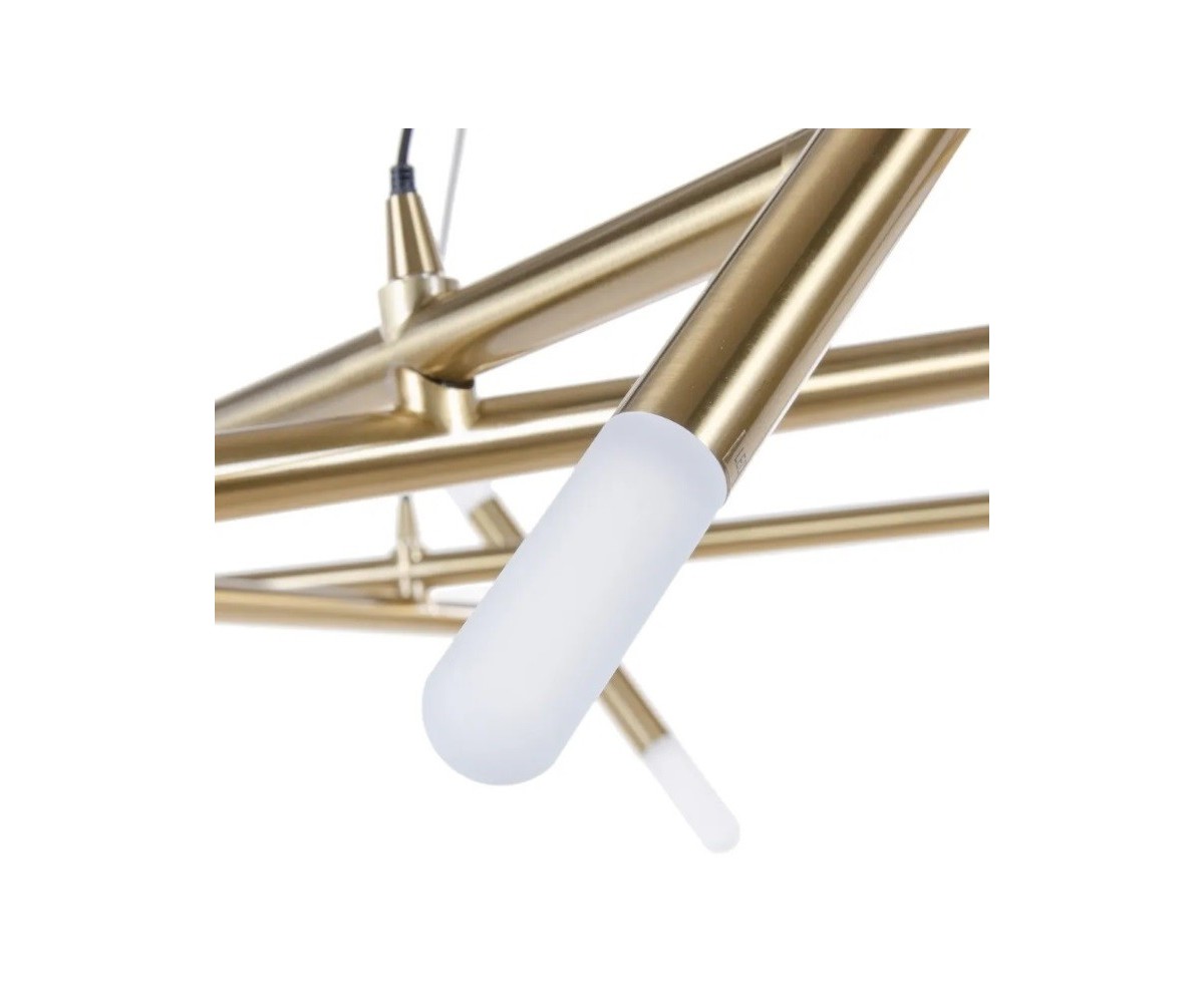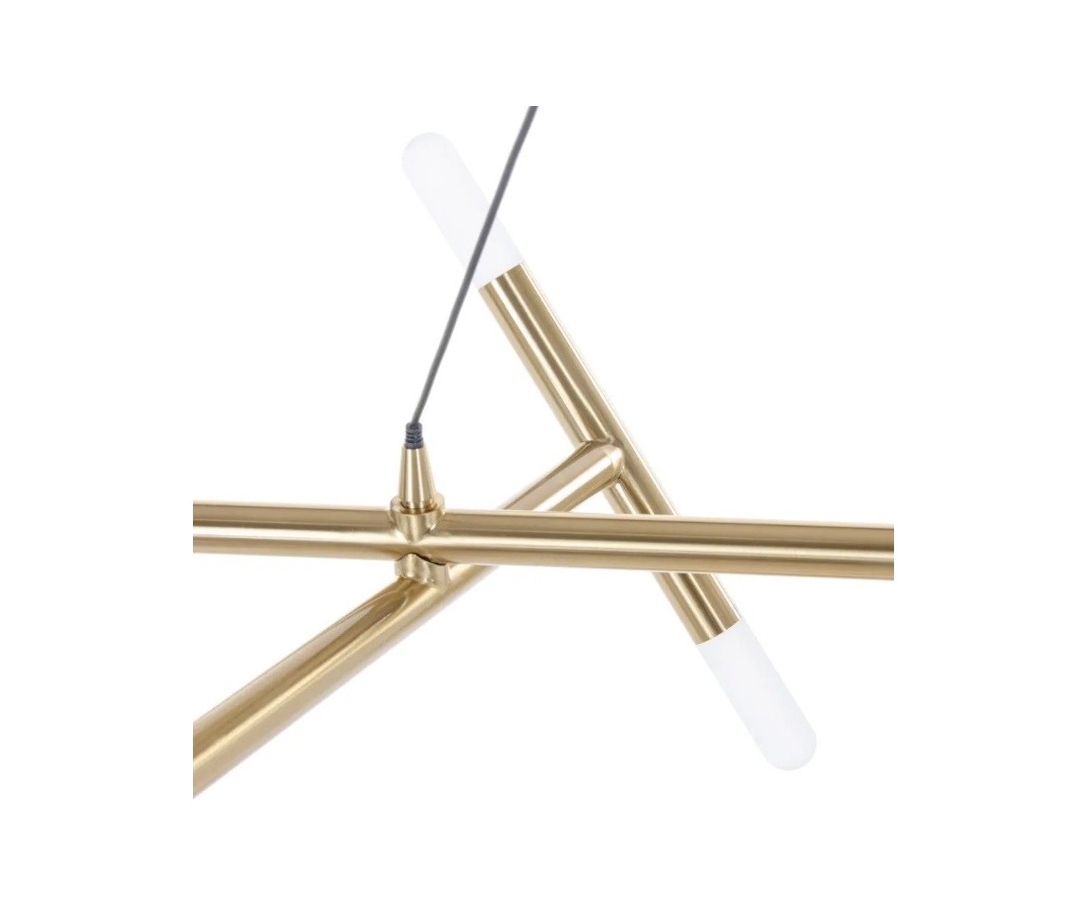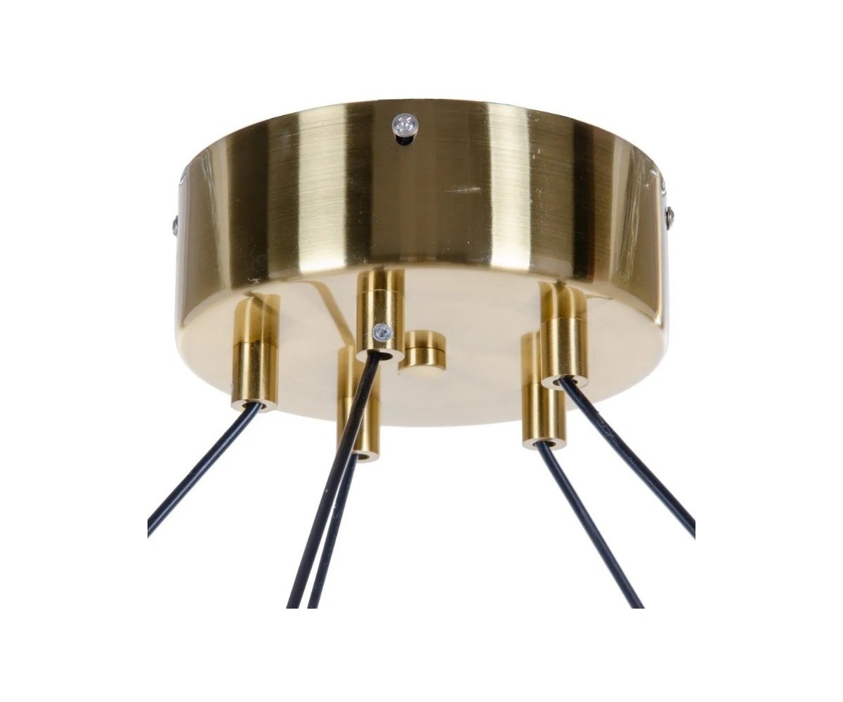 Lámpara de techo candelabro inspirado en un diseño de Kelly Wearstler. Fabricado en acero tubular terminación dorado brillo y acrílico blanco. Voltaje: 220V -240V 50Hz. Casquillo: LED Bombillas: 20x 1W Max. Bombilla incluida. Tulipa aluminio oro satinado. Medida tulipas: diámetro 3 cm.Altura 39 cm. Embellecedor metálico: diámetro 15 cm. Réplica con materiales originales de máxima calidad.