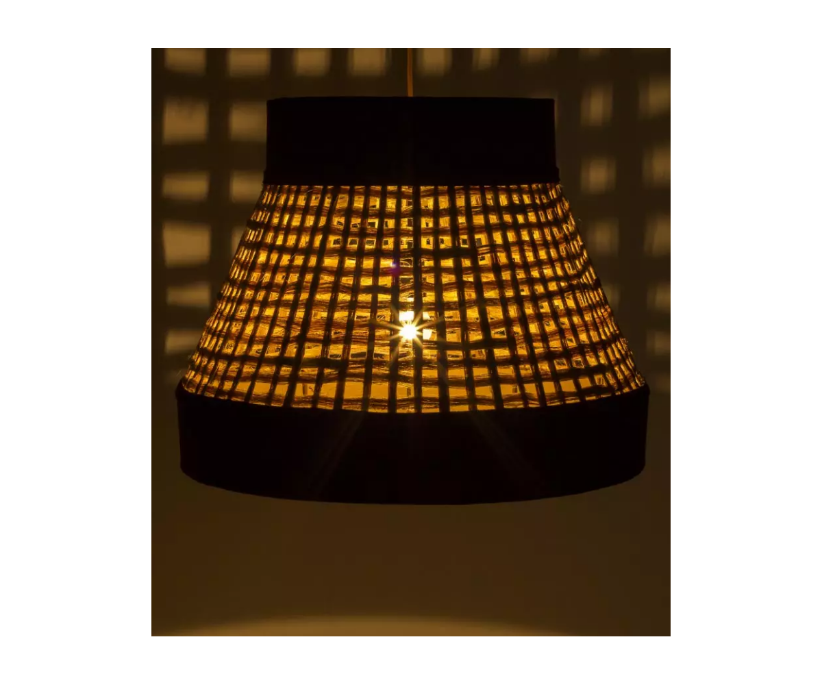 Lámpara de techo inspirada en un diseño de Gebrüder Thonet. Pantalla de diseño cónico, tejida en cannage de caña natural con remate en terciopelo. Fabricación manualmente con técnicas artesanales. Disponible en natural y negro. Transmite una luz difusa, suave y muy confortable. Casquillo E27 Max. 40W 220-240V. Réplica con materiales originales de máxima calidad.