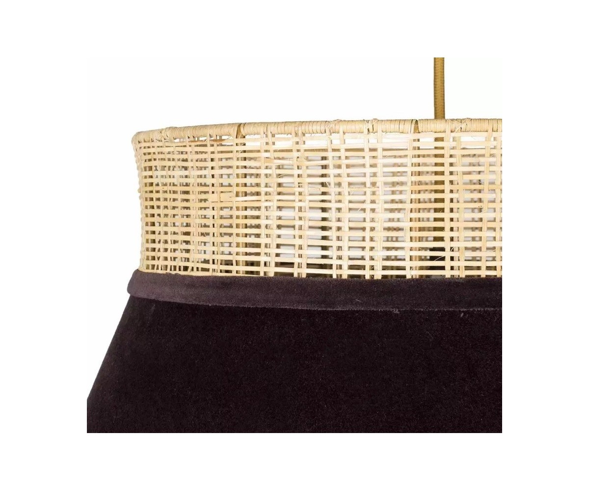 Lámpara de techo inspirada en un diseño de Gebrüder Thonet. Pantalla de diseño cónico, tejida en cannage de caña natural con remate en terciopelo. Fabricación manualmente con técnicas artesanales. Disponible en natural y negro. Transmite una luz difusa, suave y muy confortable. Casquillo E27 Max. 40W 220-240V. Réplica con materiales originales de máxima calidad.