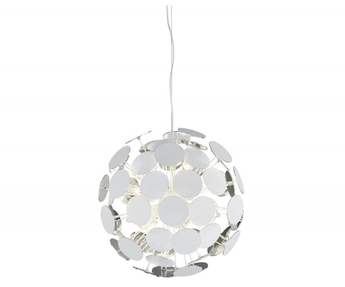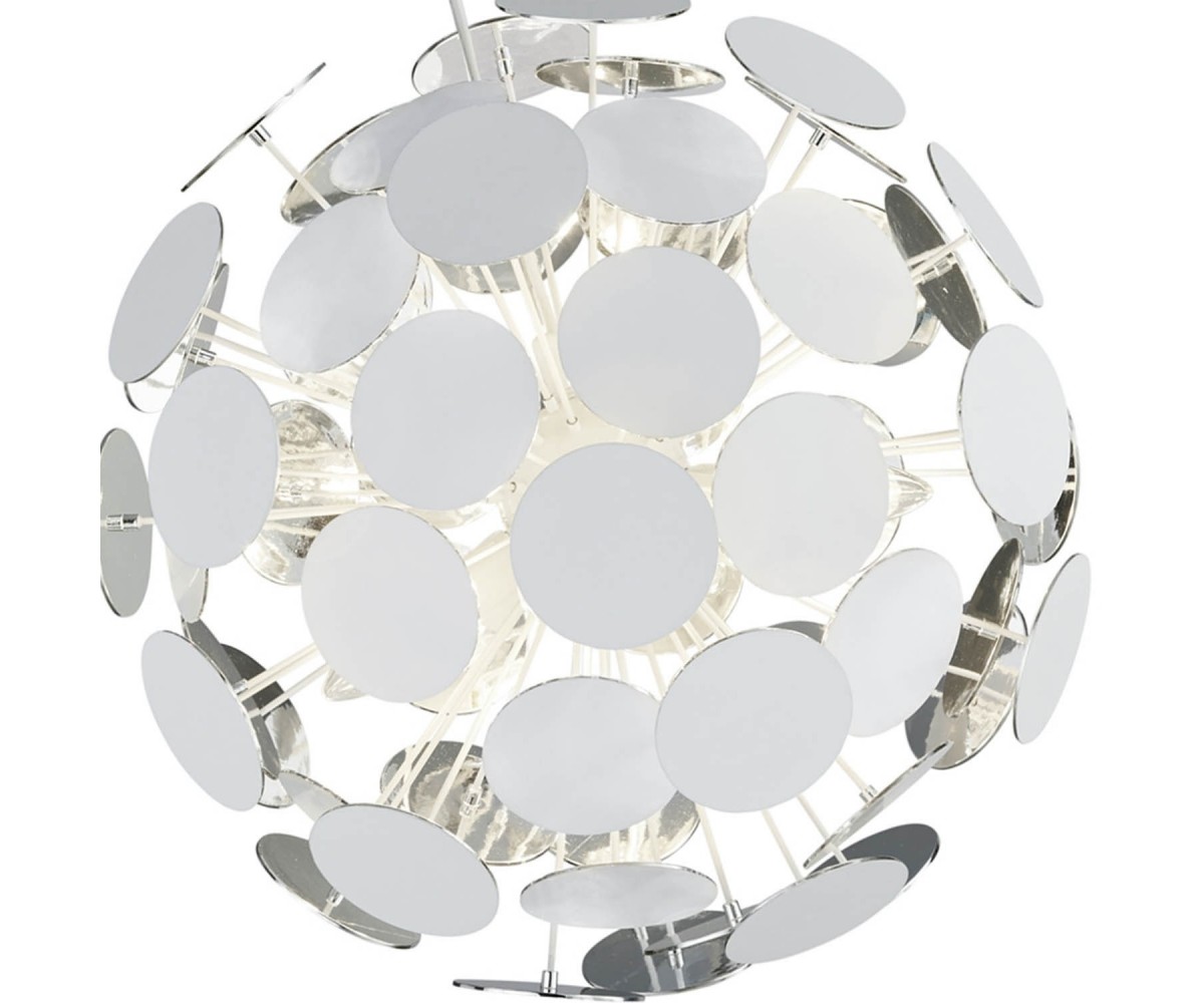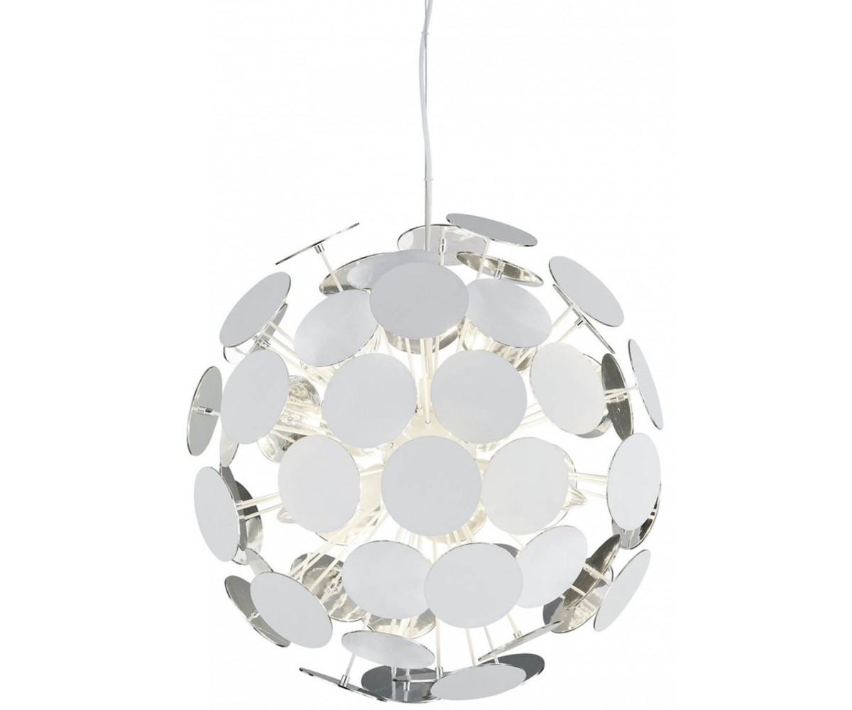 Lámpara de techo colgante inspirada en un diseño de Rydéns. Fabricada por círculos de acero exterior lacado en color negro, interior oro o exterior blanco con interior plata, formando la imagen de un sistema solar. Las placas circulares van unidas con varillas de metal cortas y largas para completar la lámpara entera. Voltaje Alta tensión 220V/230V. Casquillo para bombilla E14, necesita 6 unidades, no incluidas. Réplica con materiales originales de máxima calidad.