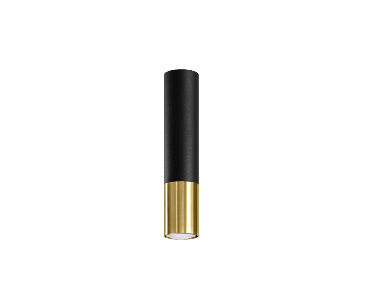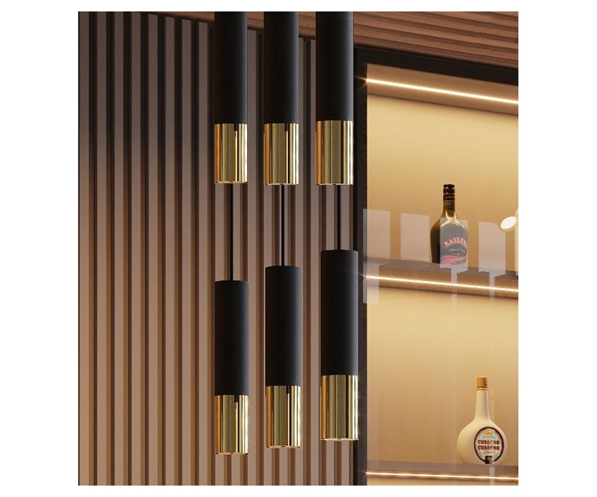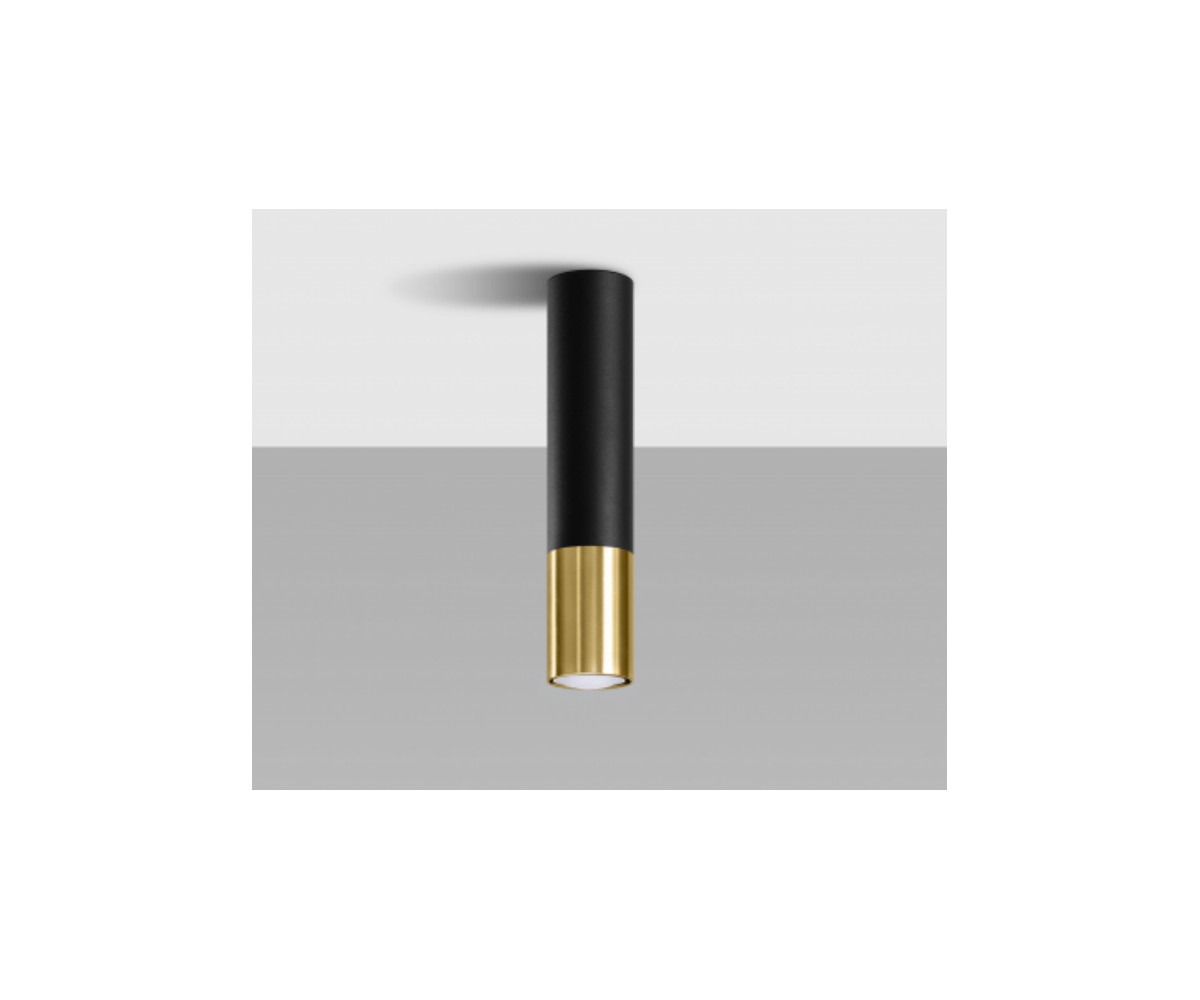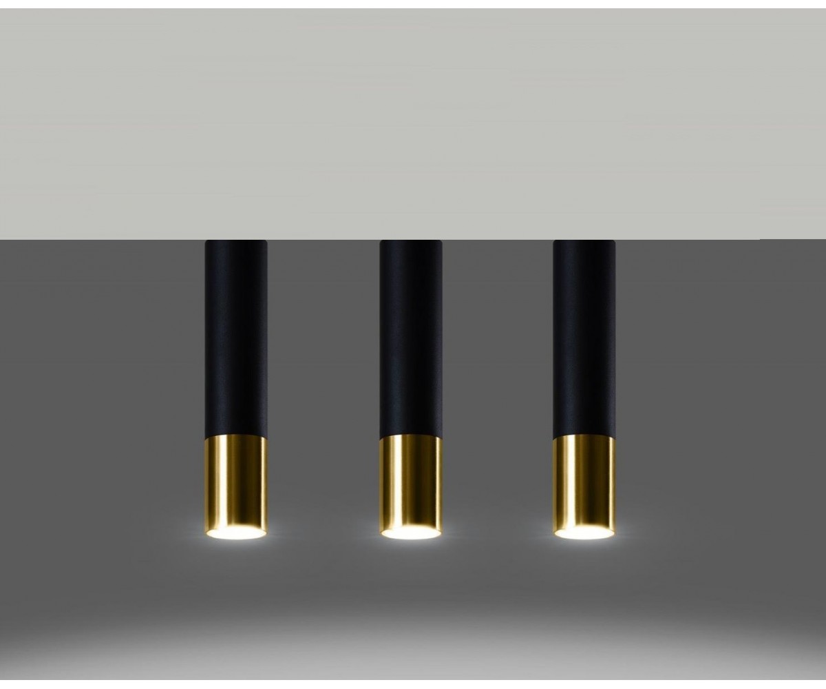 Lámpara de techo inspirado en un diseño de DelightFULL. Fabricada en acero bicolor de alta calidad, combinación negro satinado con dorado, oro o bronce. No requiere montaje. Casquillo para una bombilla GU10 (no incluida). Esta serie está disponible en lámpara de techo Chandelier de 13 luces, aplique pared, lámpara suspendida de 2 focos y lámpara suspendida de 3 focos. Réplica exacta con materiales originales de máxima calidad.