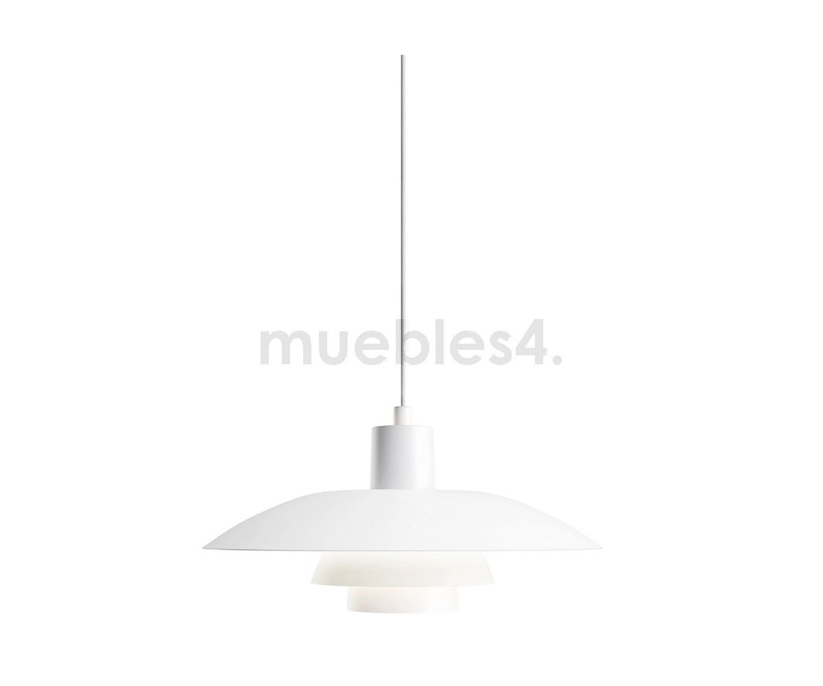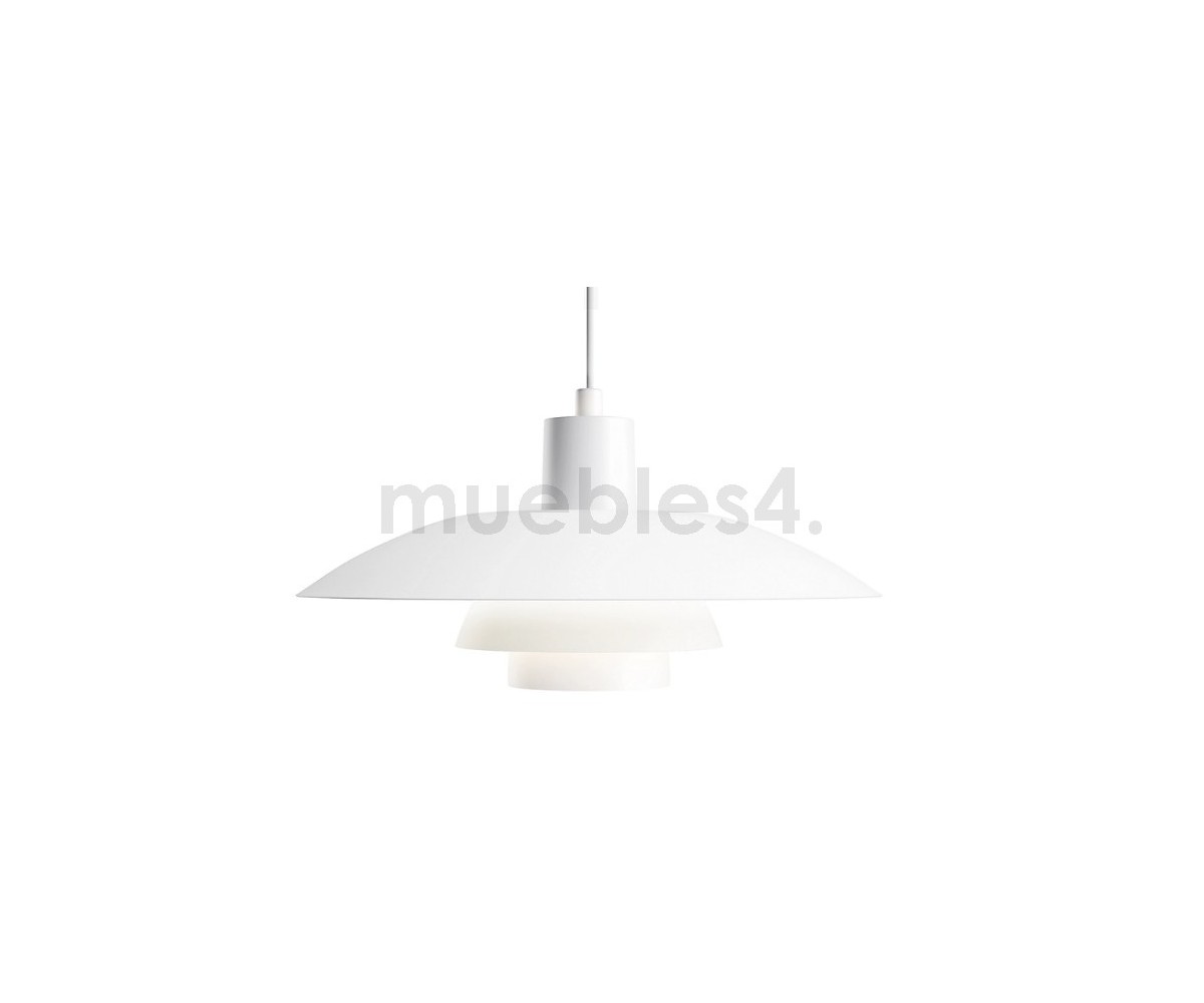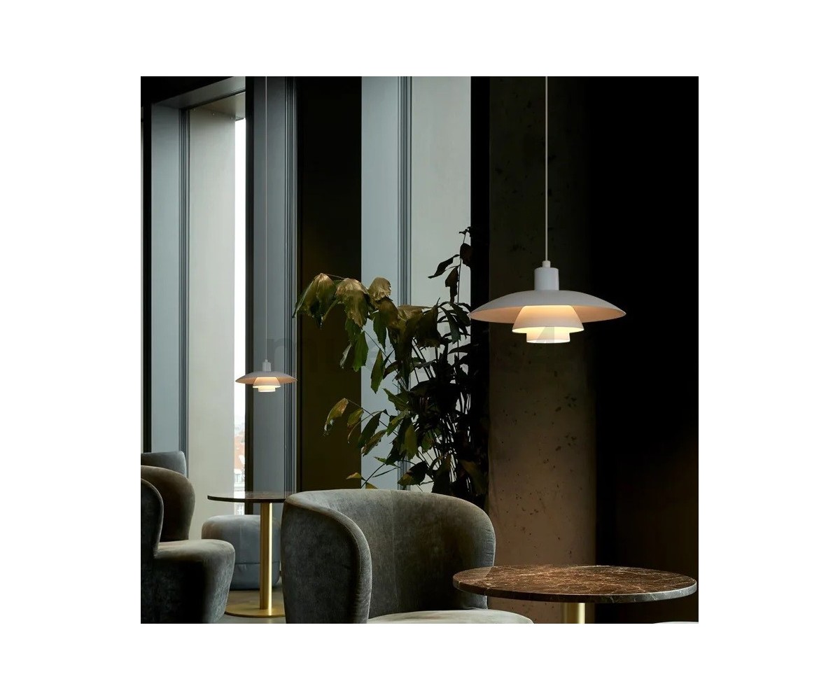 Lámpara colgante modelo inspirada en un diseño de Poul Henningsen para Louis Poulsen. En 1971, el diseñador danés sigue la estela de su diseño más icónico simplificando el sistema de pantallas de la PH5. Proporciona una iluminación cómoda sin deslumbramiento gracias al sistema reflector de sus tres pantallas principales dirigiendo la mayor parte de la luz hacia abajo.