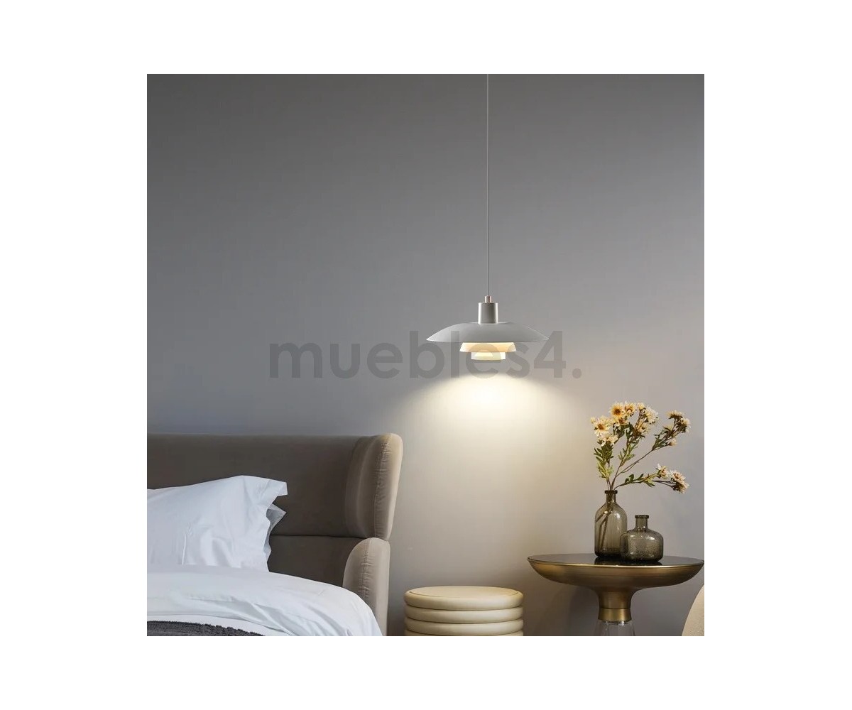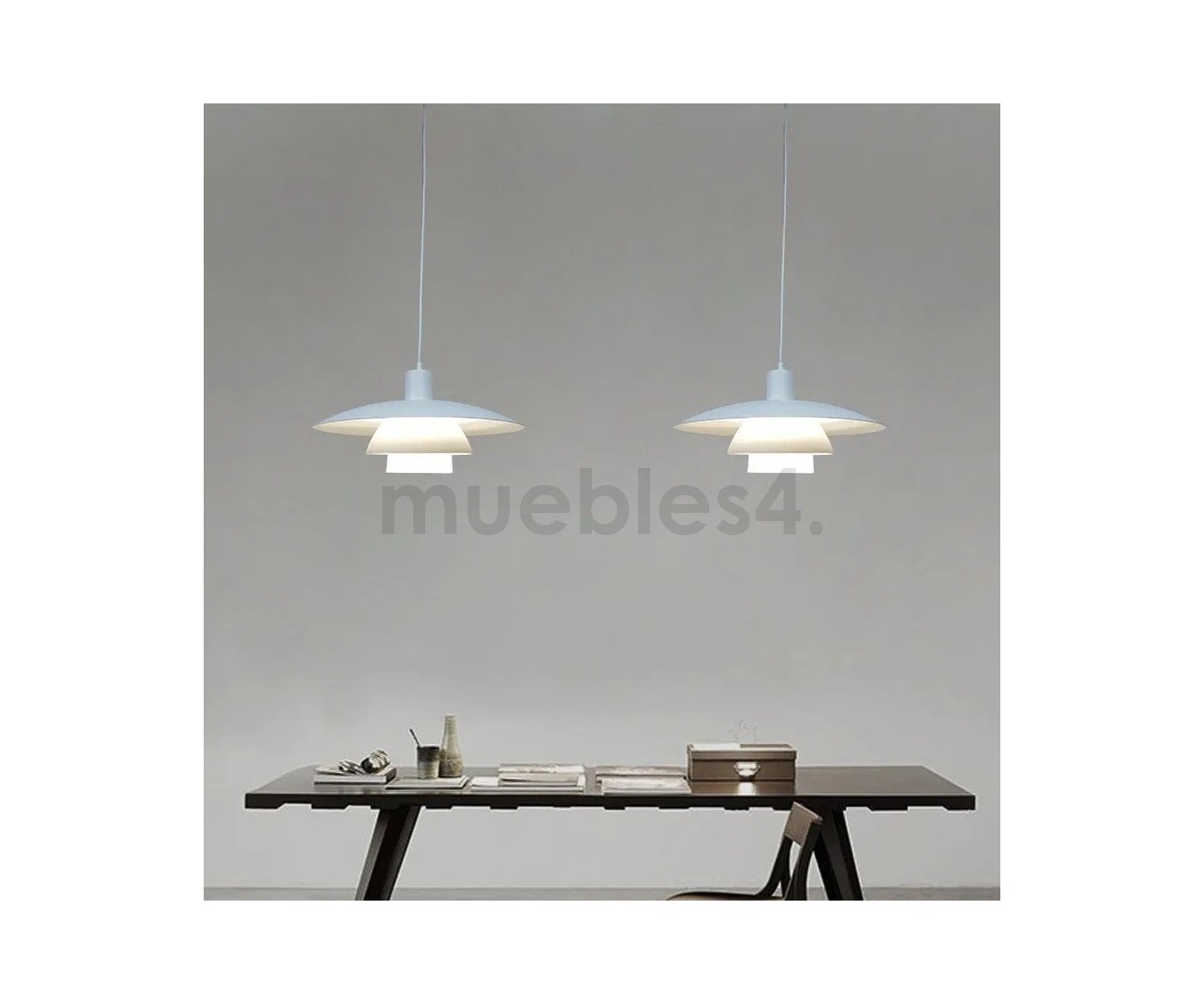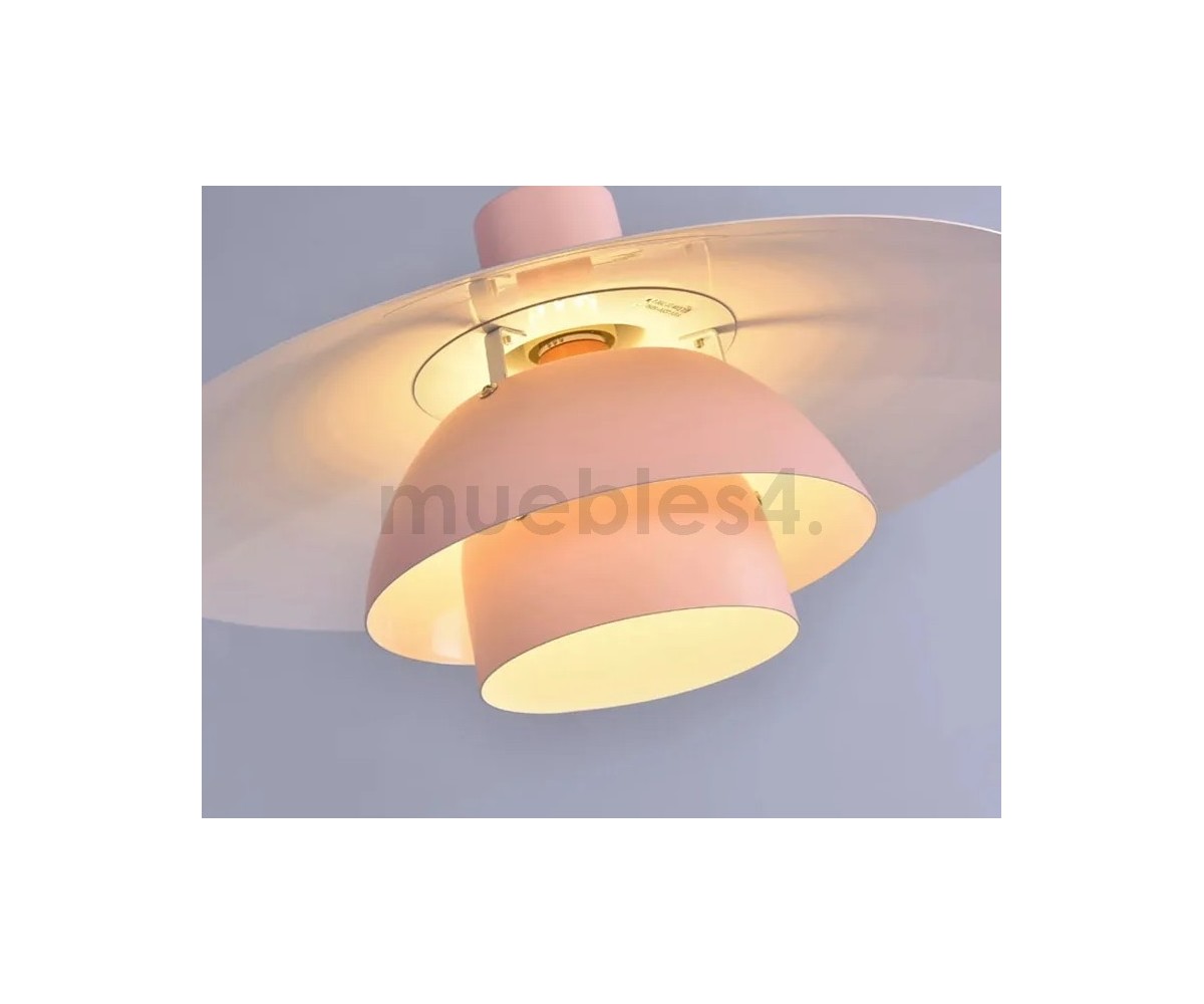 Lámpara colgante modelo inspirada en un diseño de Poul Henningsen para Louis Poulsen. En 1971, el diseñador danés sigue la estela de su diseño más icónico simplificando el sistema de pantallas de la PH5. Proporciona una iluminación cómoda sin deslumbramiento gracias al sistema reflector de sus tres pantallas principales dirigiendo la mayor parte de la luz hacia abajo.