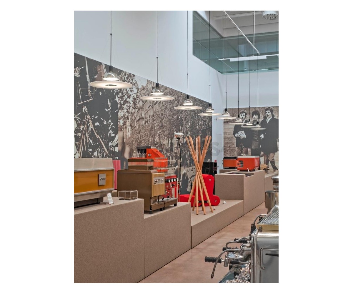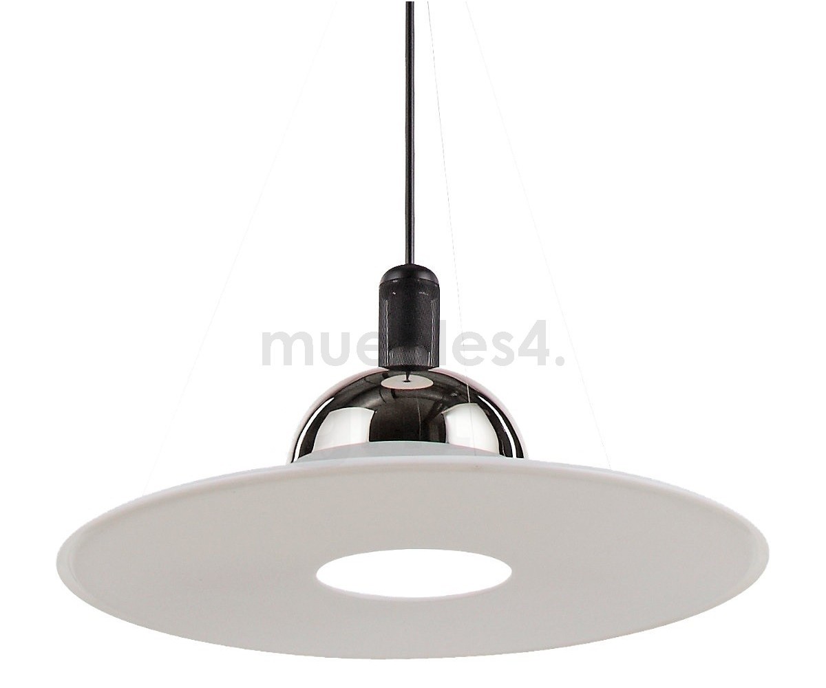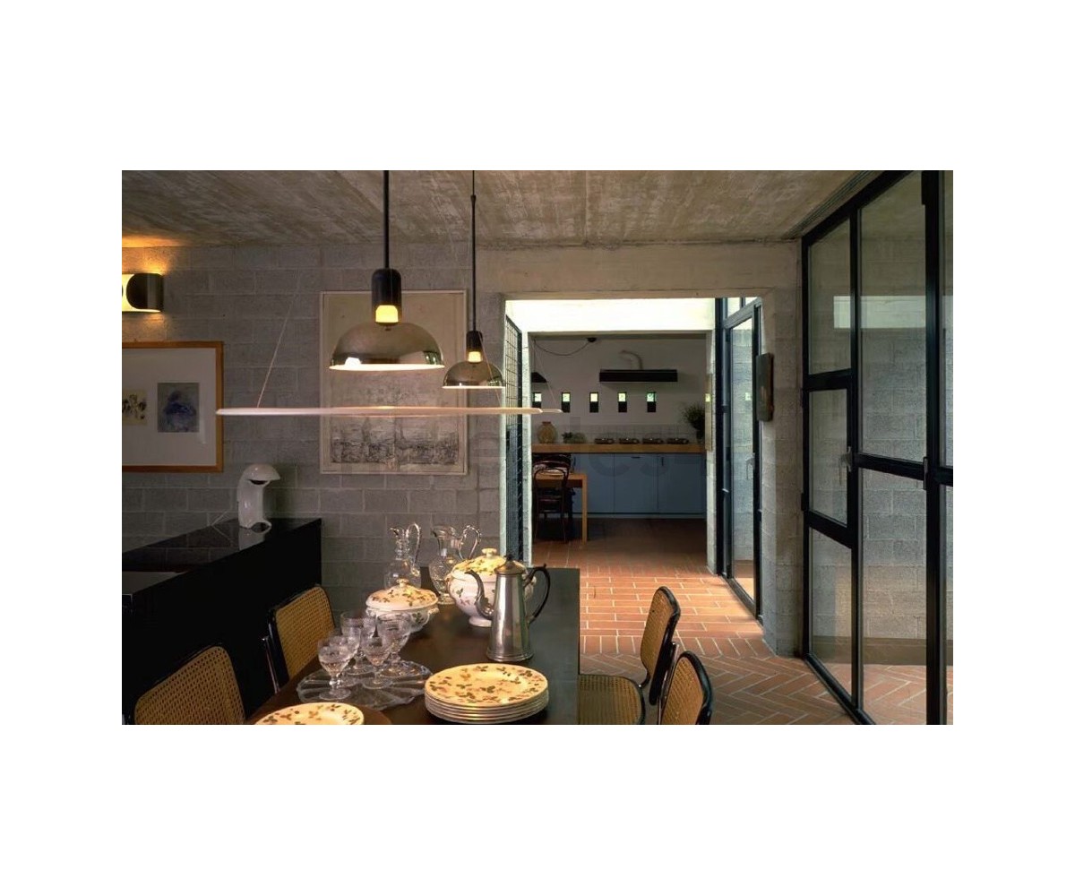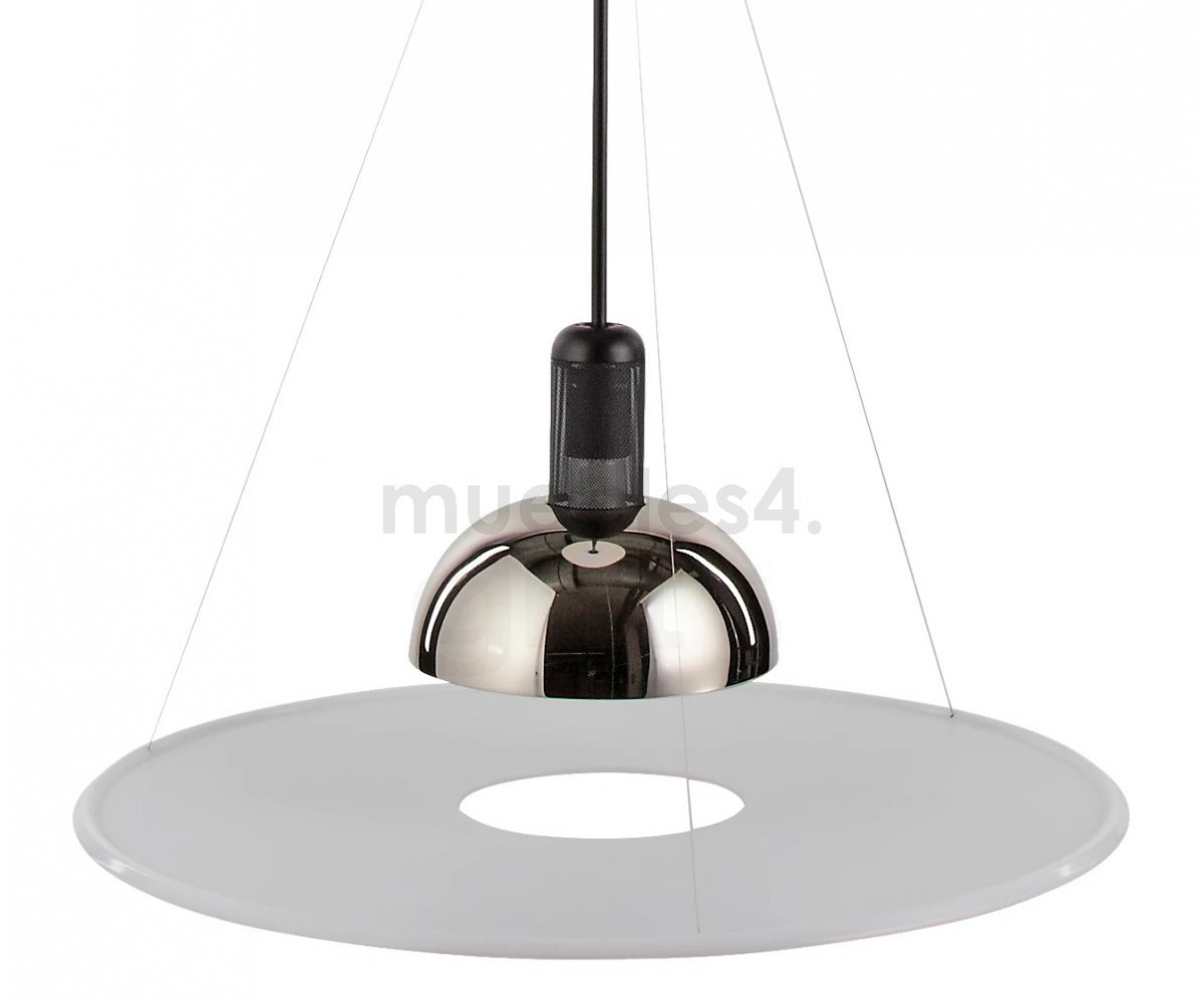 Lámpara de techo inspirada en un diseño de Achille Castiglioni. Luz directa/indirecta y difusa, esta lámpara es ideal para ambientar interiores. Su difusor está sostenido por tres cables finos en acero armónico, dando la ilusión de que está flotando, como un auténtico frisbee.