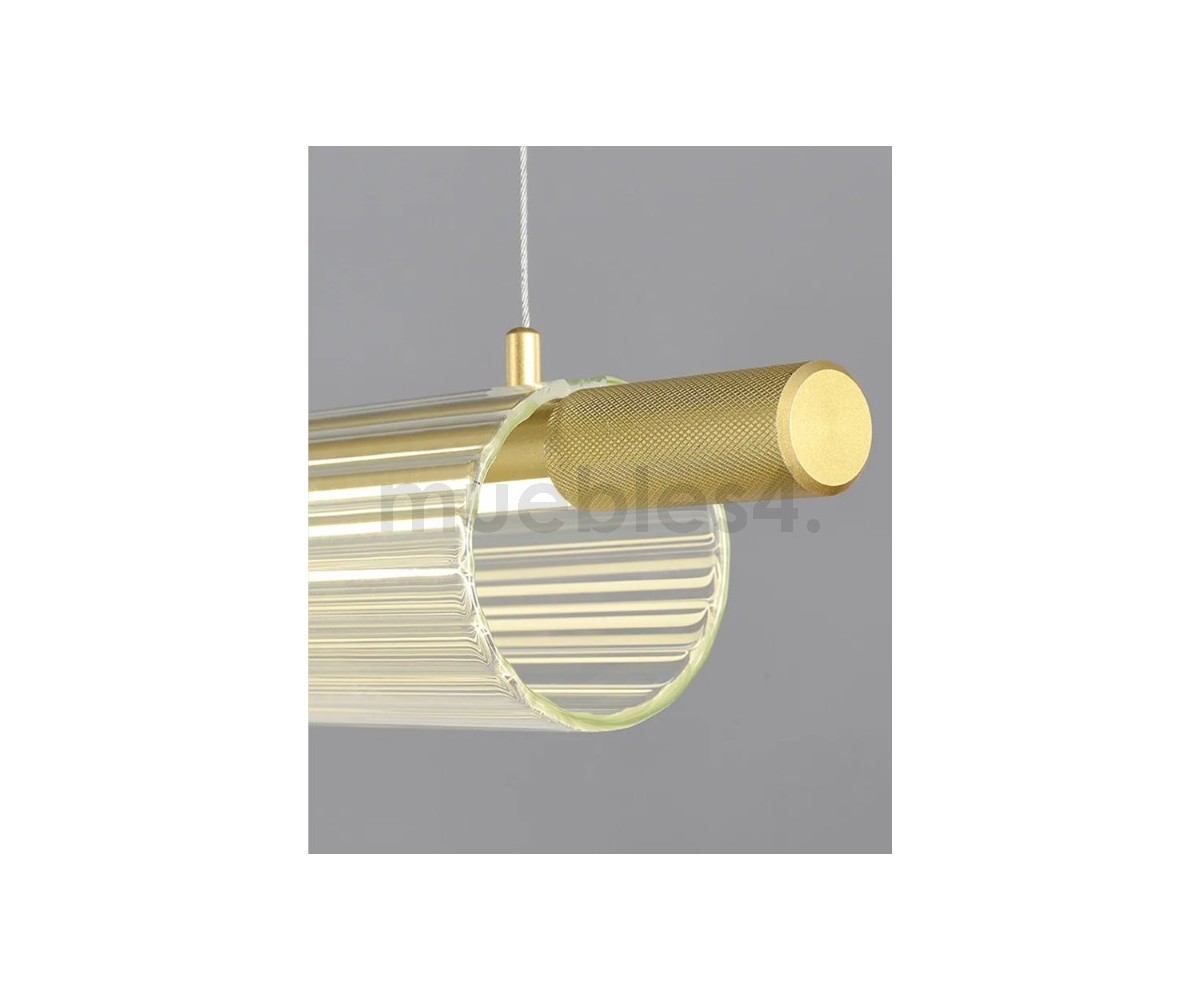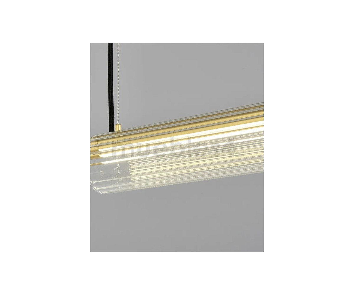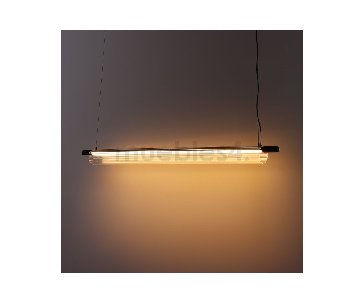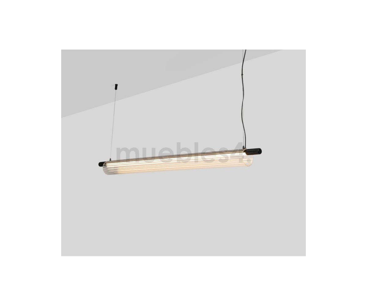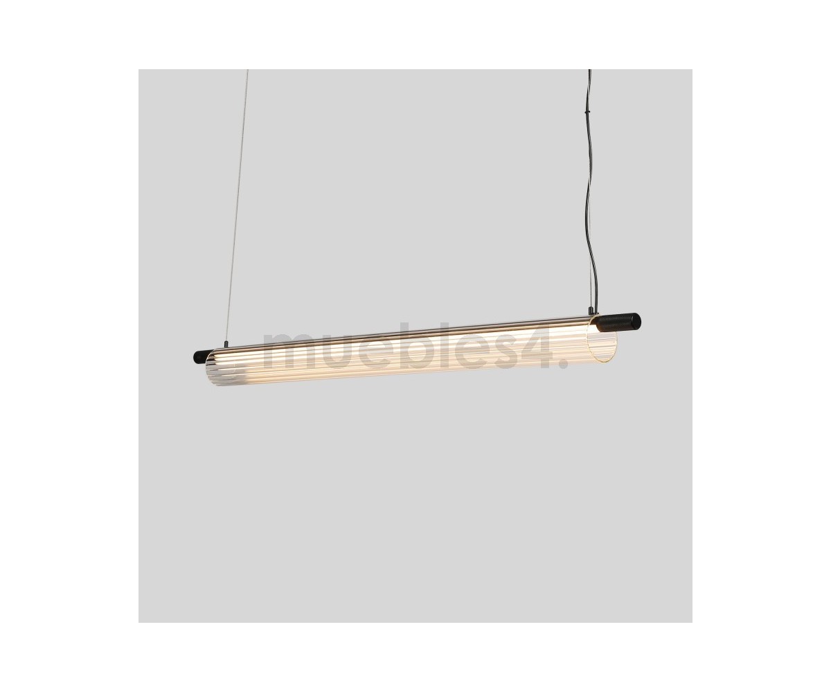 Lámpara colgante inspirada en un diseño de Riley Sanders. Se recrea en los detalles de las antiguas columnas romanas. Gracias al exclusivo proceso de extrusión de vidrio toma un diseño circular, crean una forma cilíndrica perfectamente ranurada.