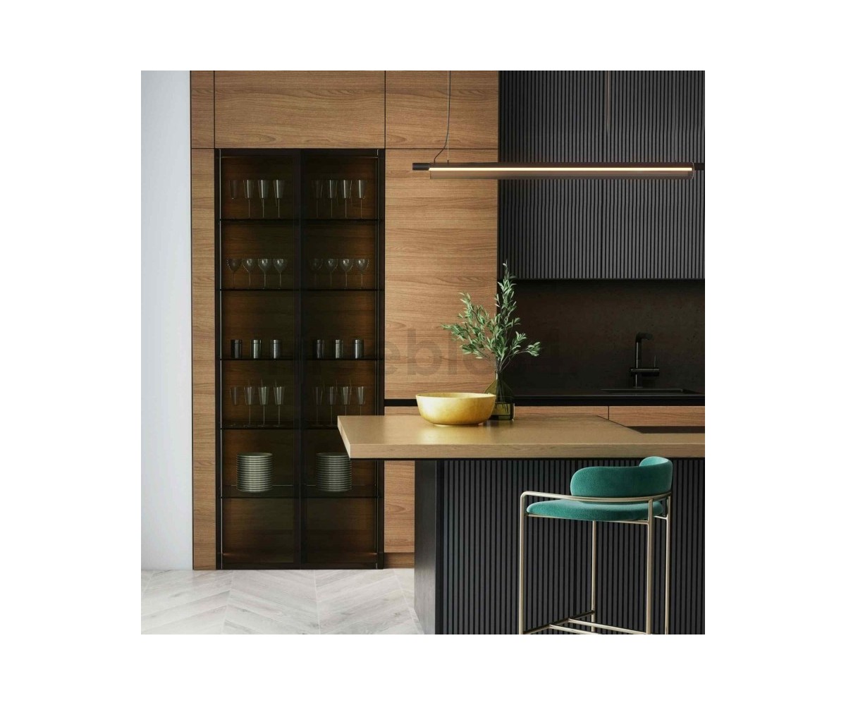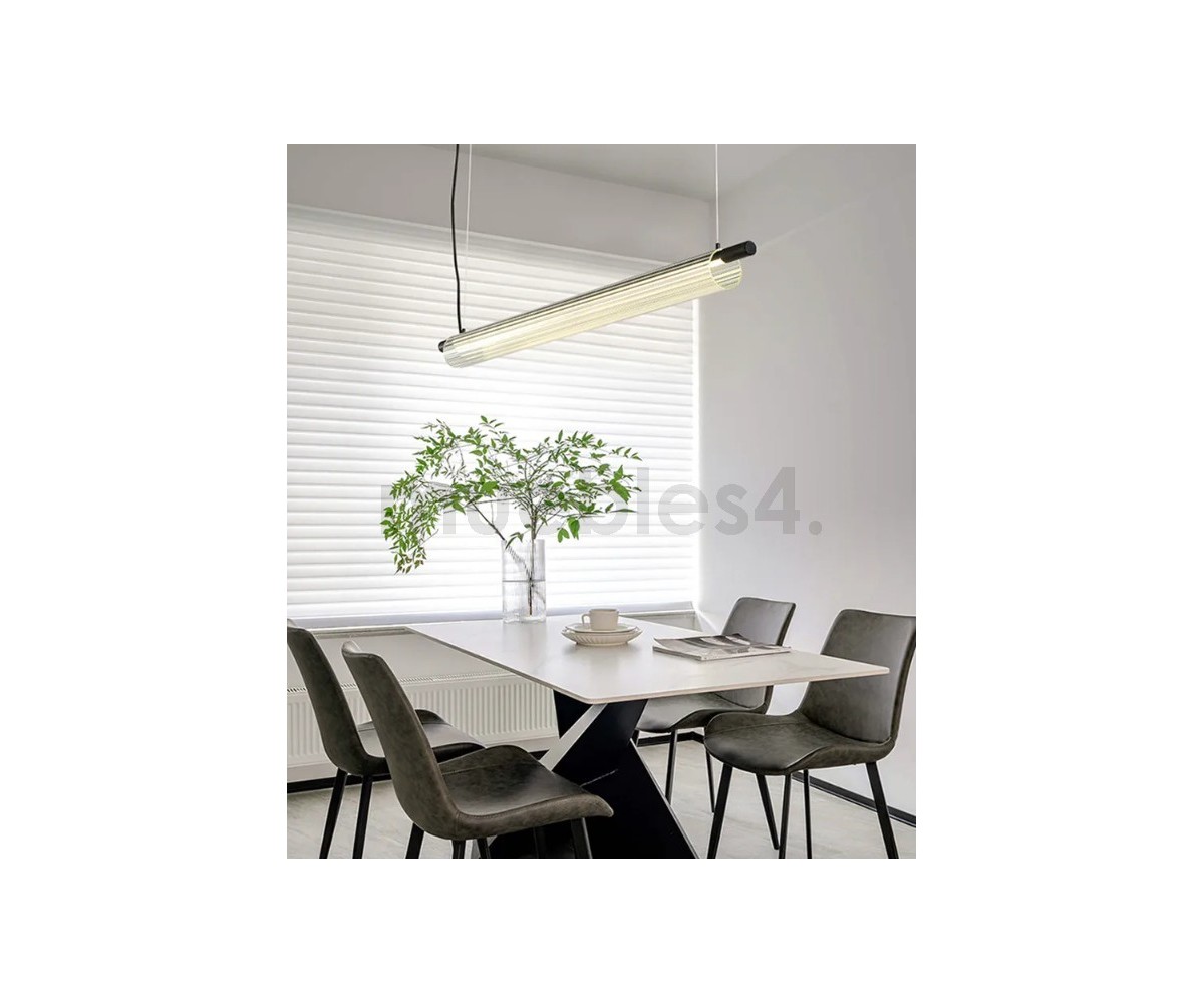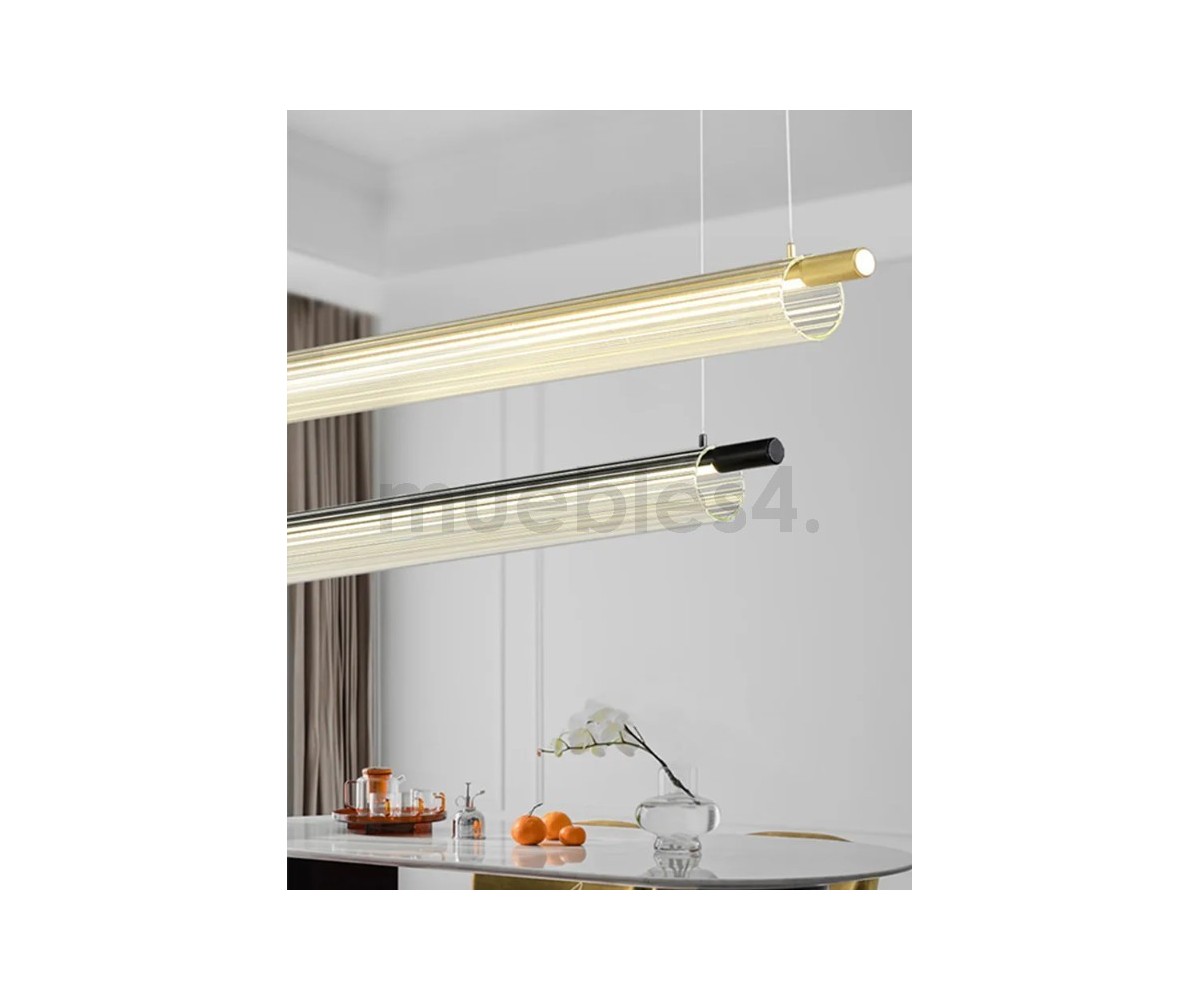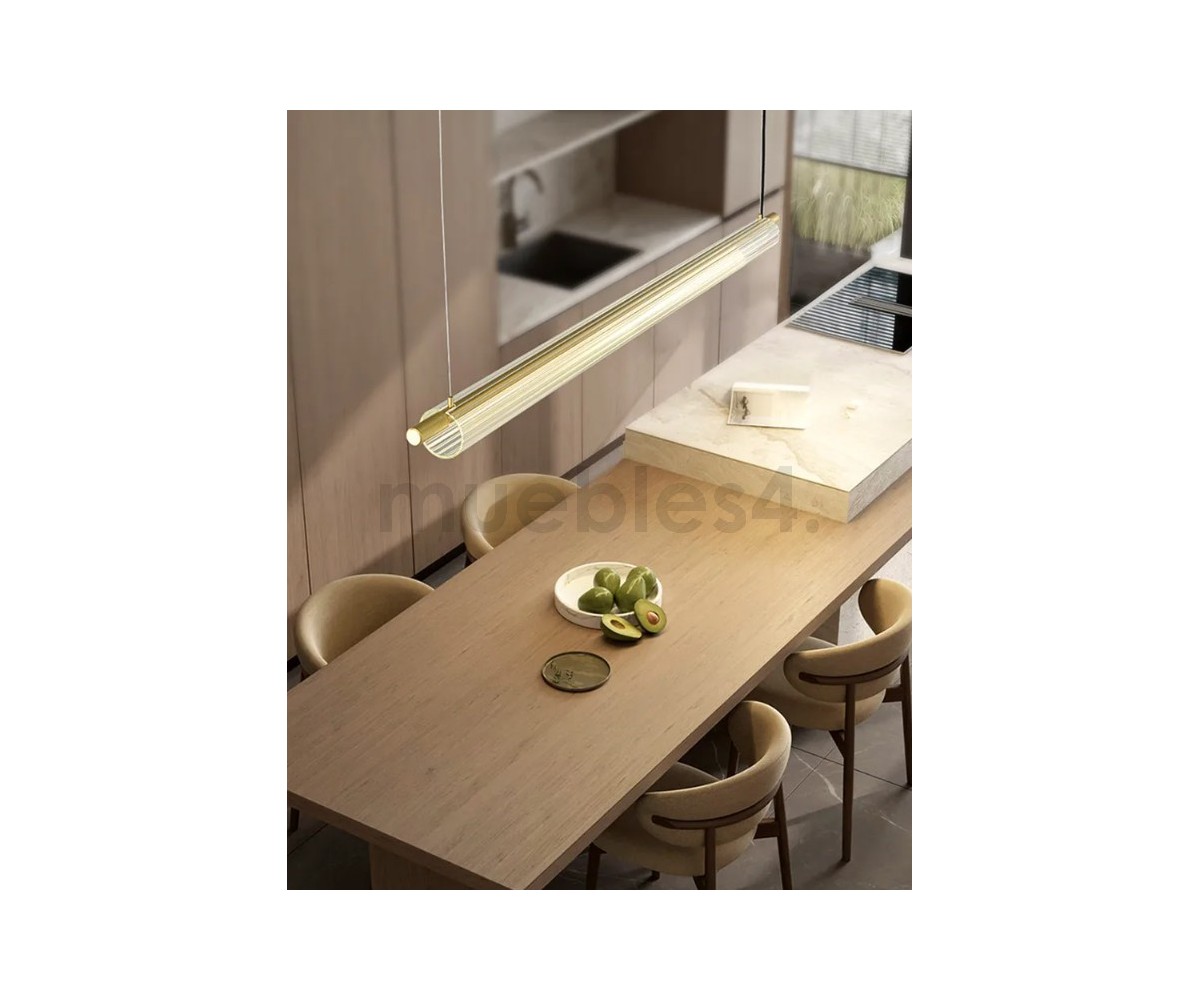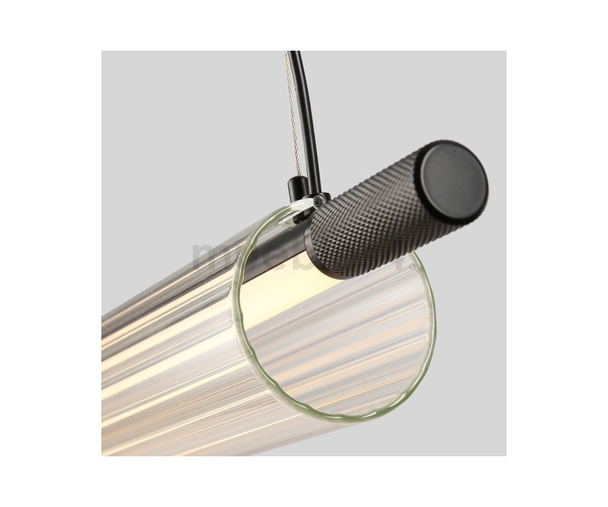 Lámpara colgante inspirada en un diseño de Riley Sanders. Se recrea en los detalles de las antiguas columnas romanas. Gracias al exclusivo proceso de extrusión de vidrio toma un diseño circular, crean una forma cilíndrica perfectamente ranurada.