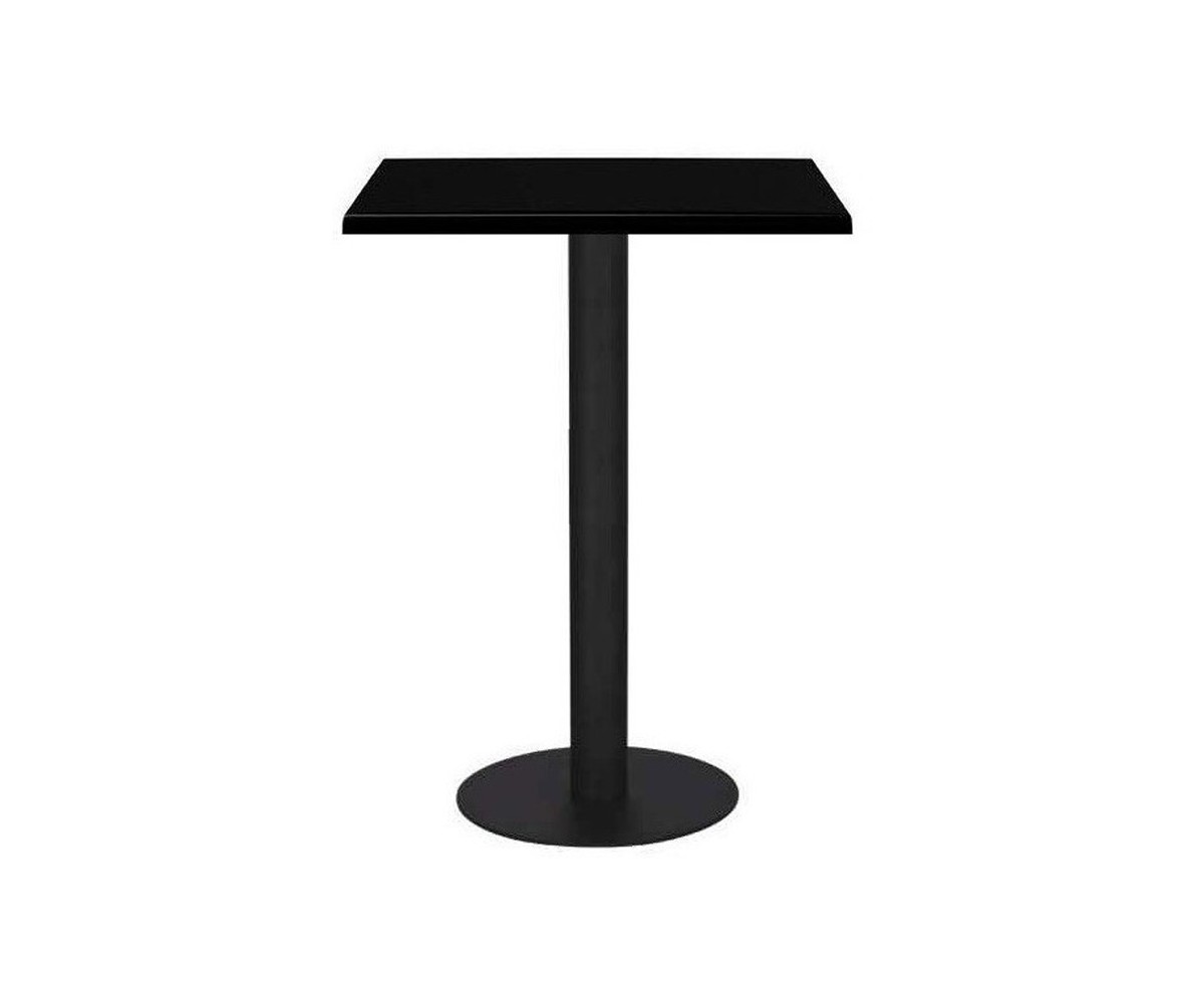 Mesa de bar, inspirada en un diseño de Norm Architects. Base en acero con triple lacado color negro satinado. Tapa werzalit en blanco, negro, wengué, haya, roble antiguo, ponderosa, marrón óxido y findus. El WERZALIT es un derivado de la madera, DIN ISO 9001, una garantía de alta calidad que no sufre alteraciones. Réplica exacta con materiales originales de máxima calidad.