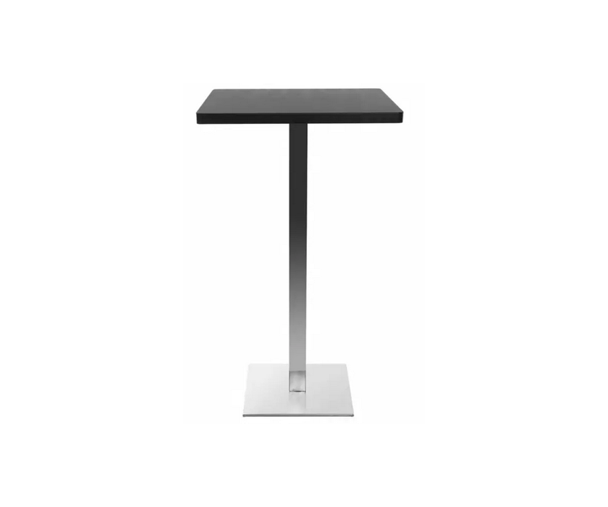 Mesa de bar, inspirada en un diseño de Matthew Hilton. Base en acero inoxidable pulido, acabado satinado. EN BRILLO CONSULTAR. Tapa werzalit en blanco, negro, wengué, haya, roble antiguo, ponderosa, marrón óxido y findus. El WERZALIT es un derivado de la madera, DIN ISO 9001, una garantía de alta calidad que no sufre alteraciones. Réplica exacta con materiales originales de máxima calidad.