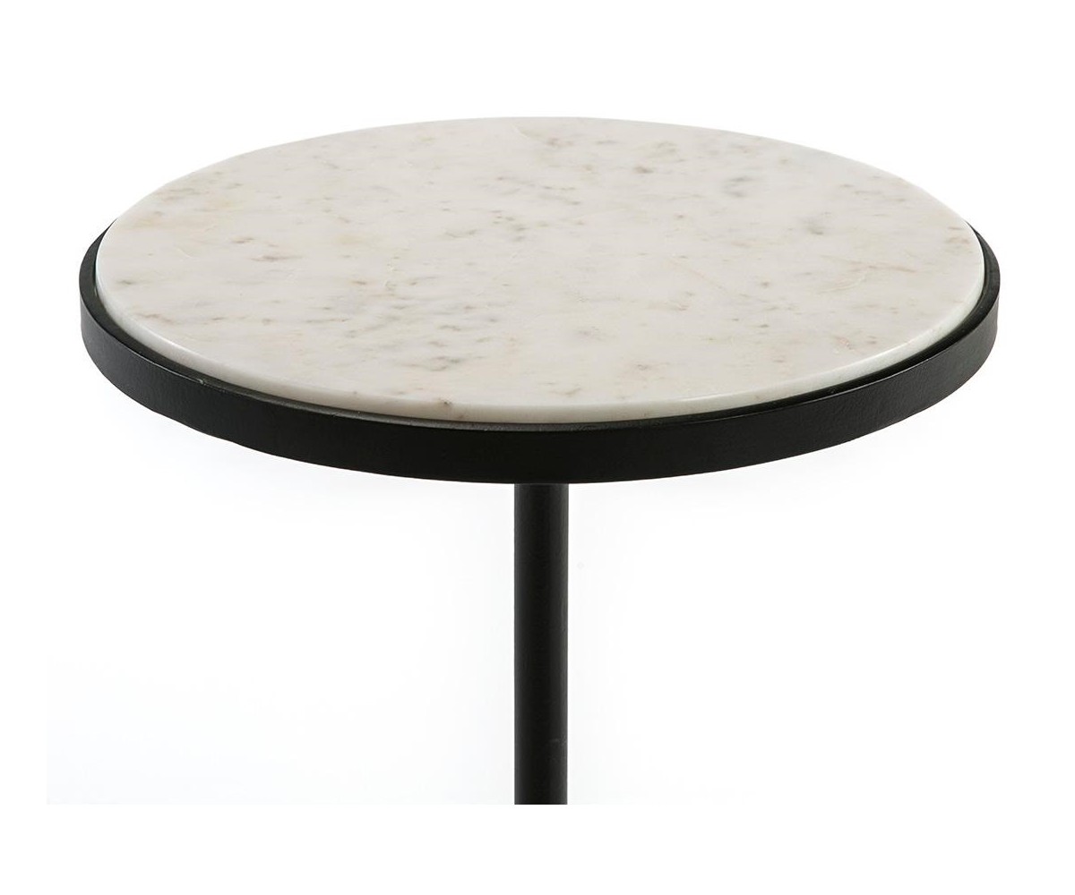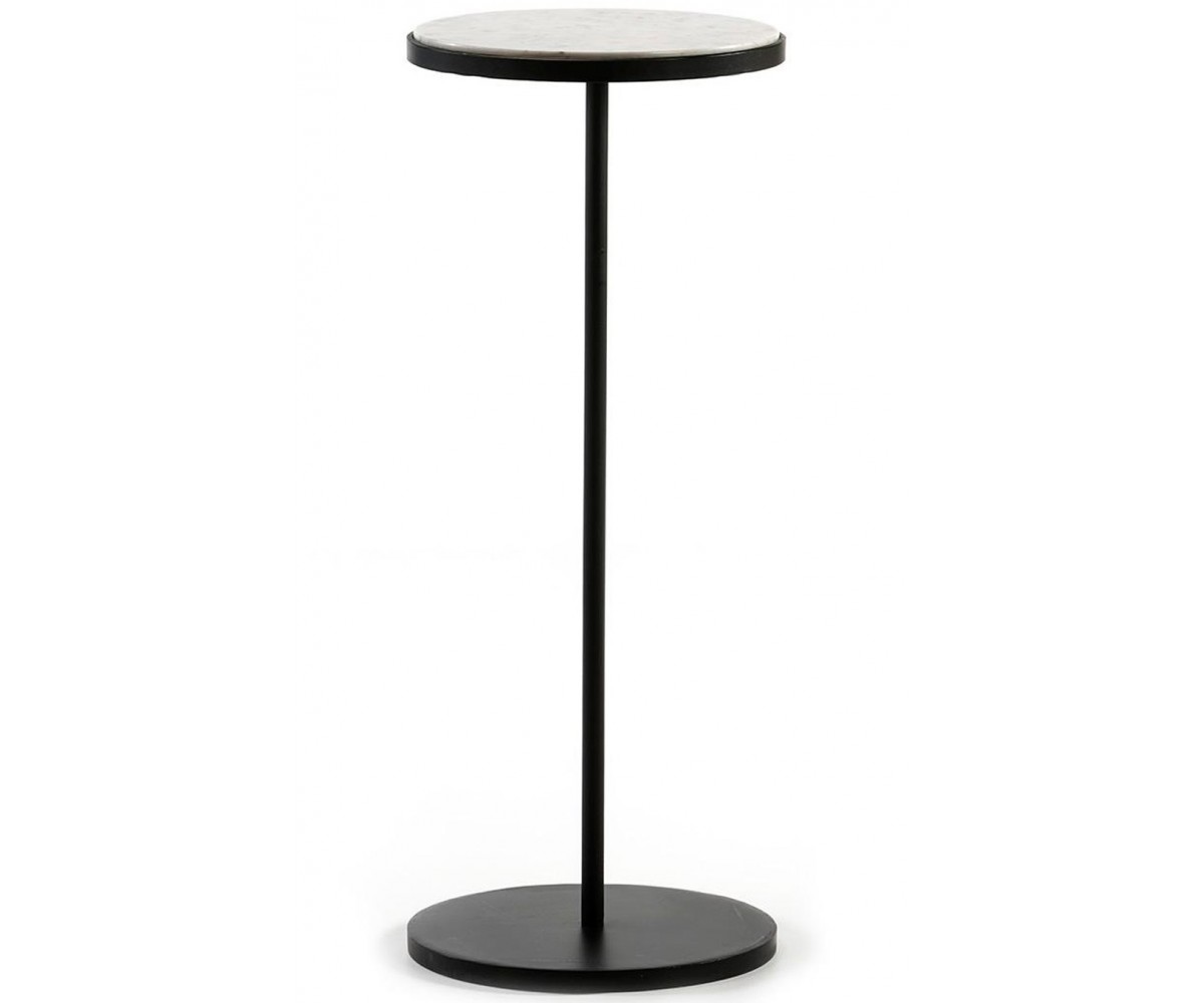 Mesa alta de bar, inspirada en un diseño de Gubi. Armazón en acero con triple lacado color negro, compuesto por una plancha circular con pata tubular, sobre redondo en mármol de carrara. El mármol al tratarse de un material natural, puede presenta ligera variación tanto en tono como en dibujo. Réplica exacta con materiales originales de máxima calidad.
