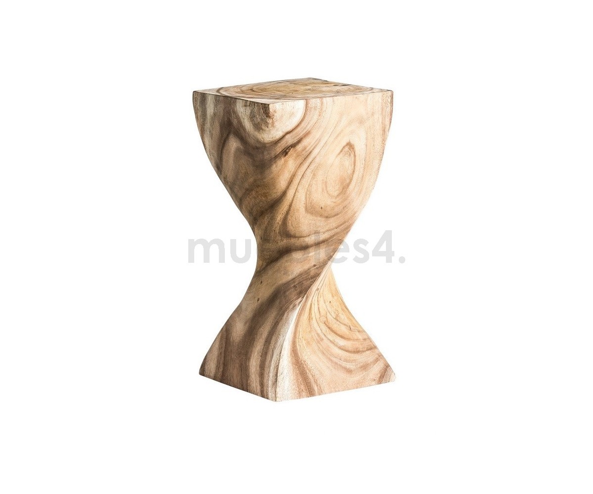 Mesa auxiliar inspirado en un diseño de Carol Egan. Mesa escultural retorcida y trenzada tallada a mano de una sola pieza, forma parte de una línea de muebles contemporáneos diseñados mediante la combinación de tecnología digital con artesanía tradicional de calidad. Se puede usar como mesa auxiliar y taburete bajo. Cada pieza, con sus variaciones artesanales, cuenta una historia propia, añadiendo carácter y autenticidad.